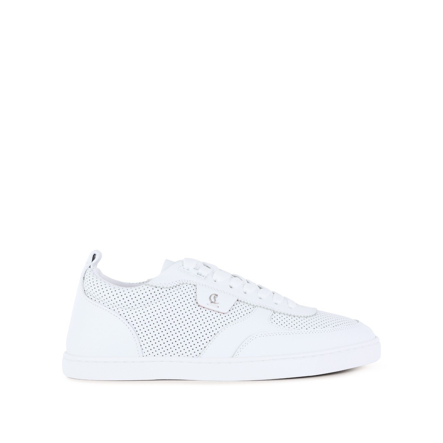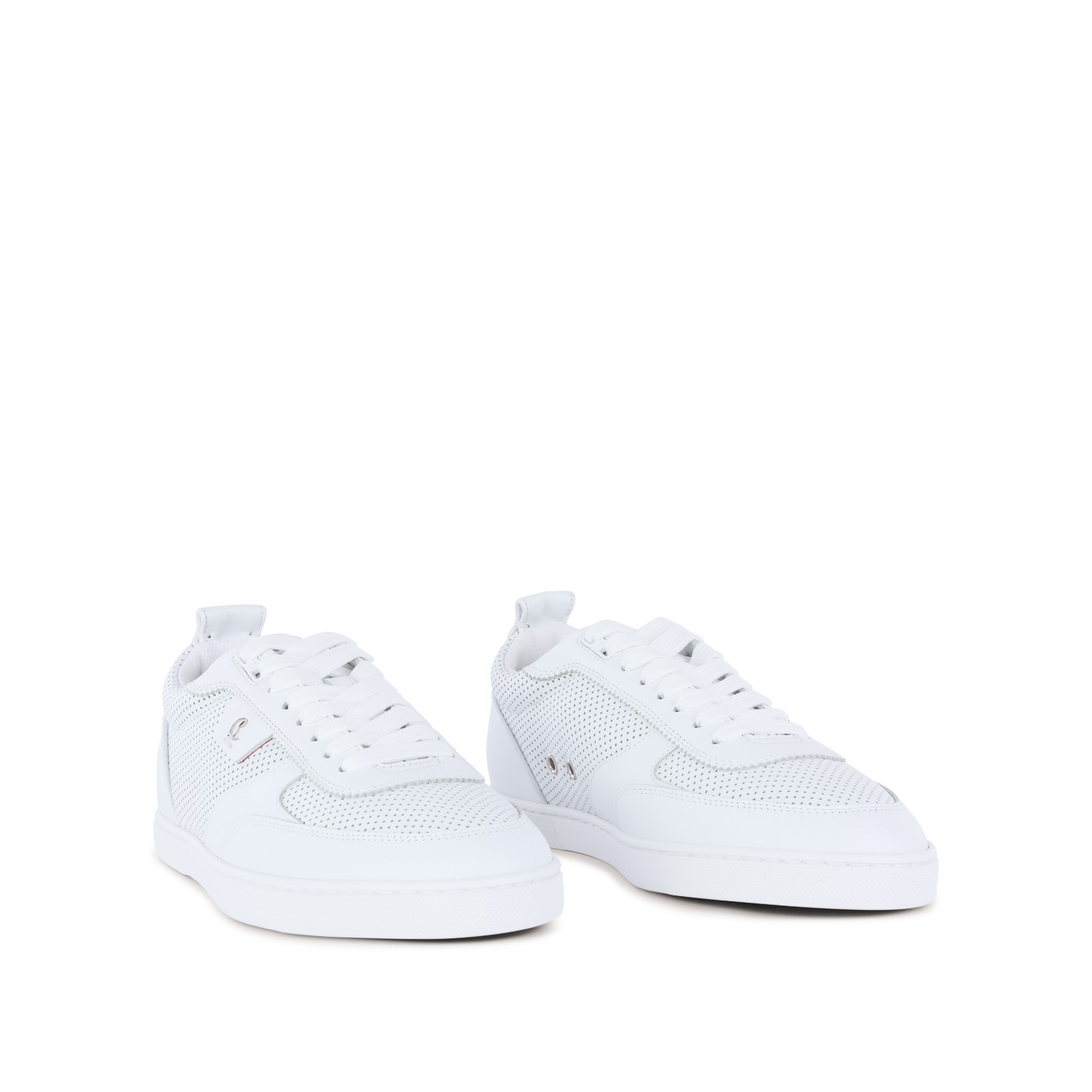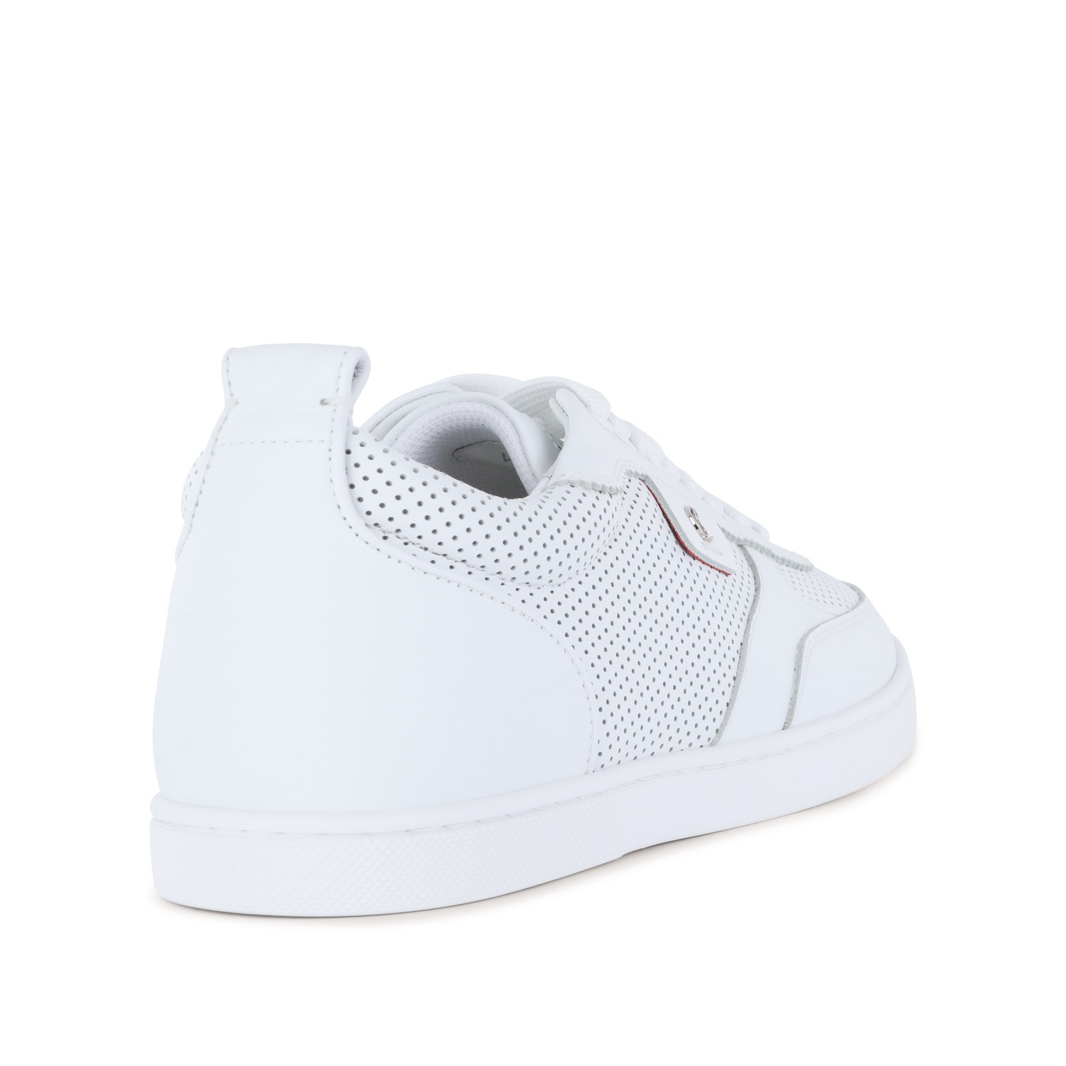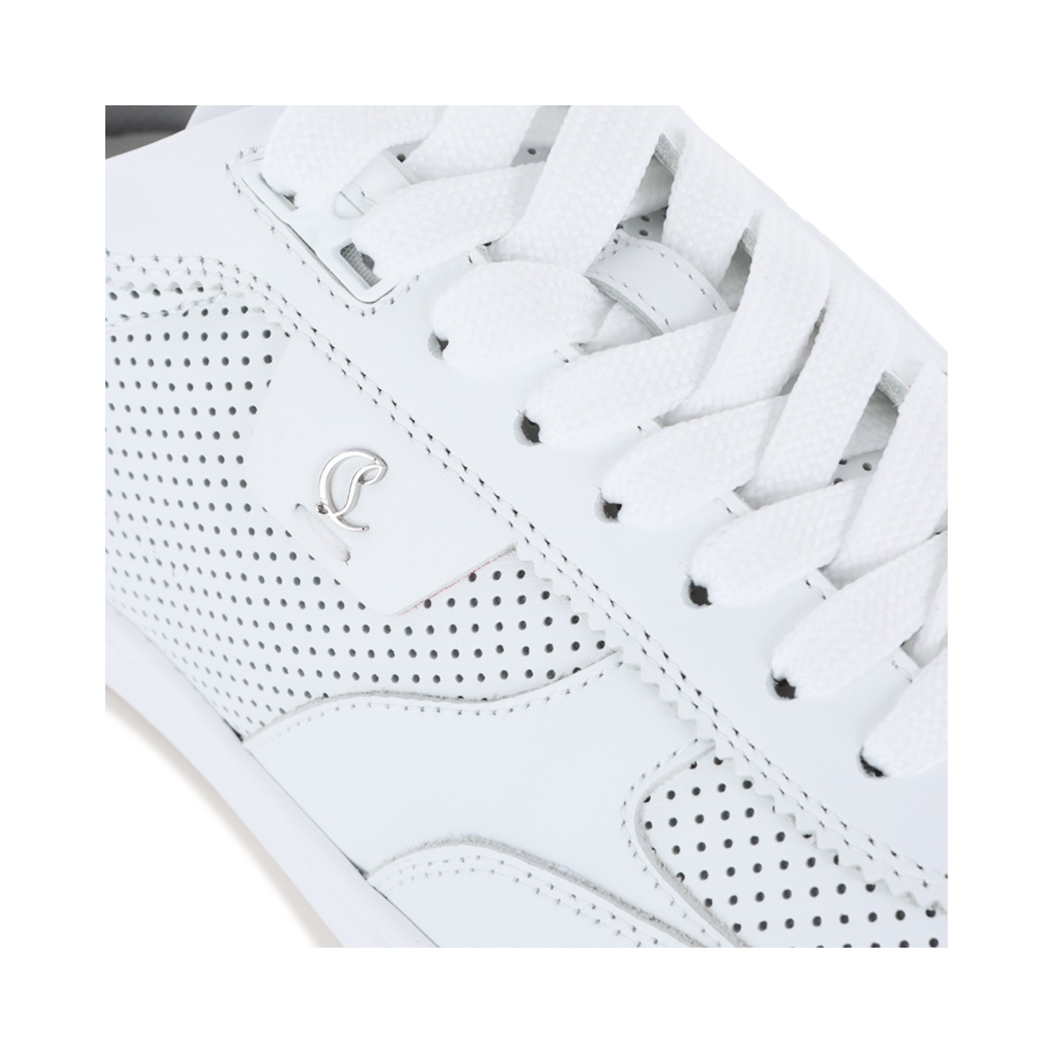 White leather sneakers from Christian Louboutin featuring round toe, lace up fastening, all over details and leather sole.