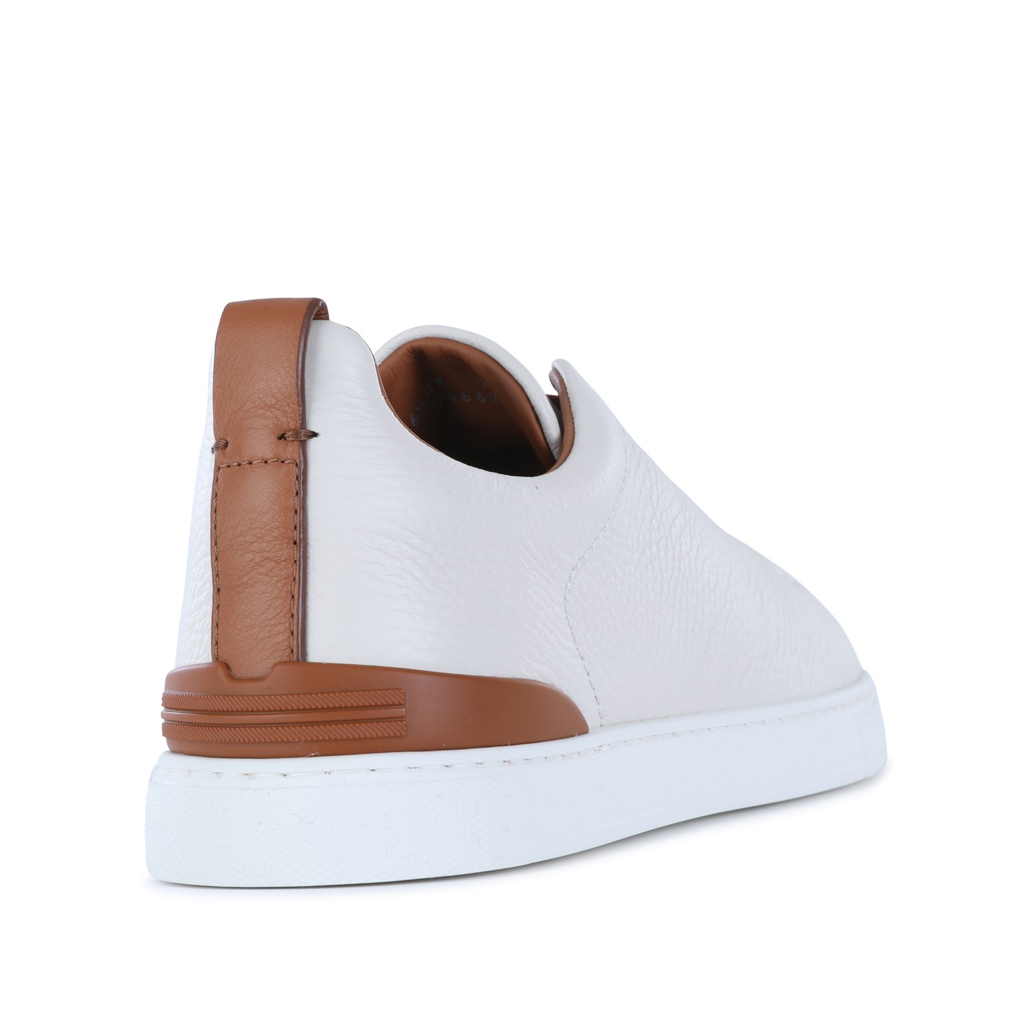 White leather sneakers from Zegna featuring round toe, leather sole and details.