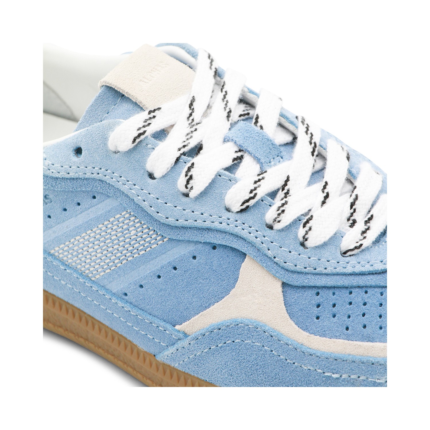 Light blue leather sneakers from Alohas featuring round toe, lace-up fastening, all-over details and rubber sole.