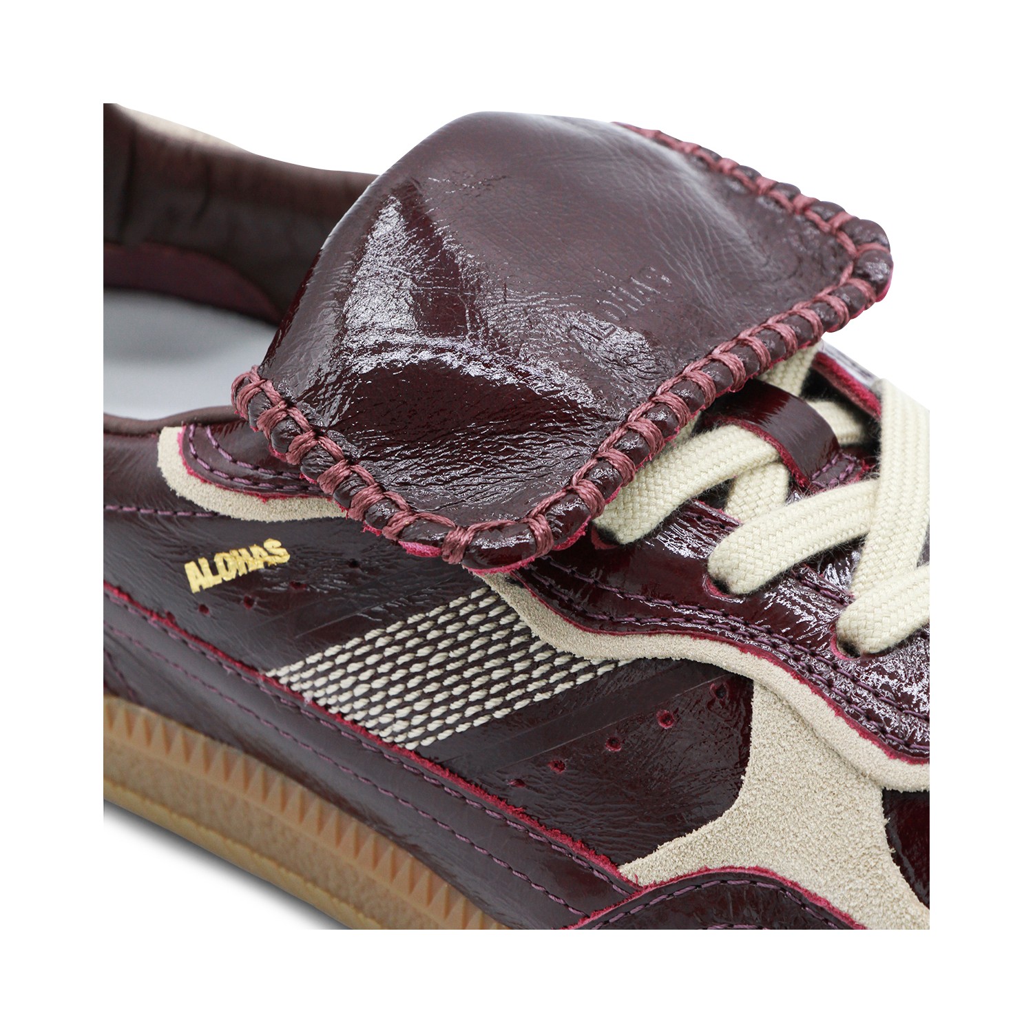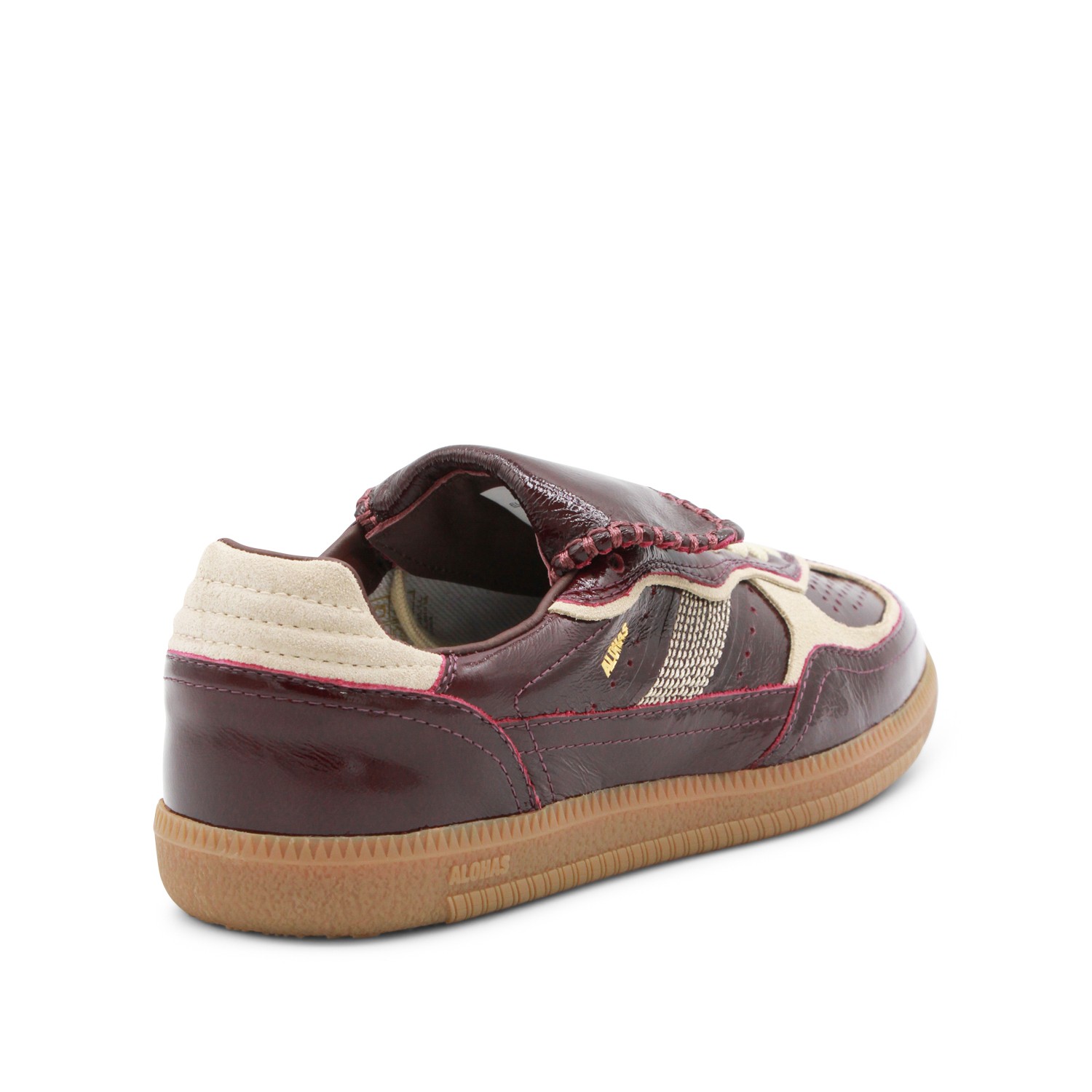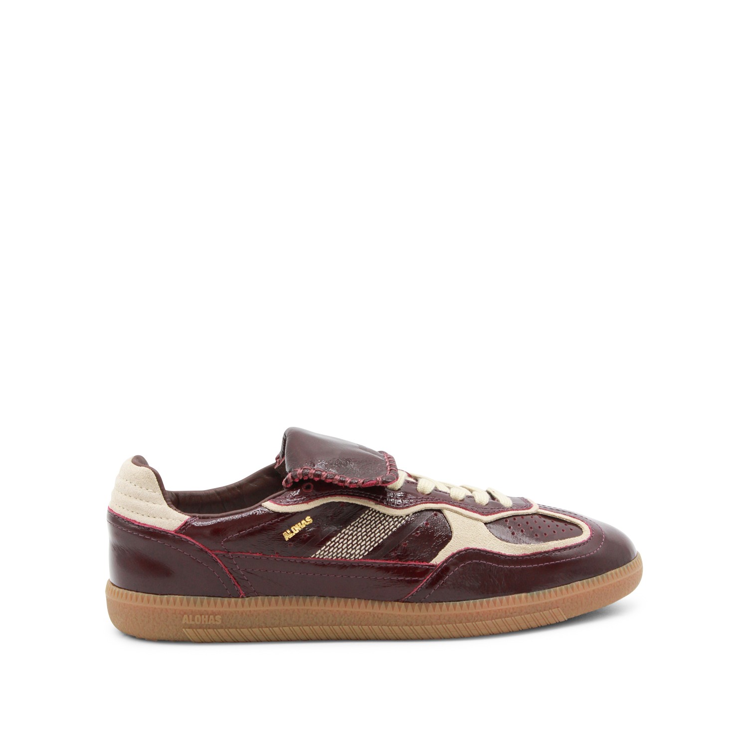 Onix deep burgundy leather sneakers from Alohas featuring round toe, laces up fastening, lace cover tab, contrasting details and rubber sole.