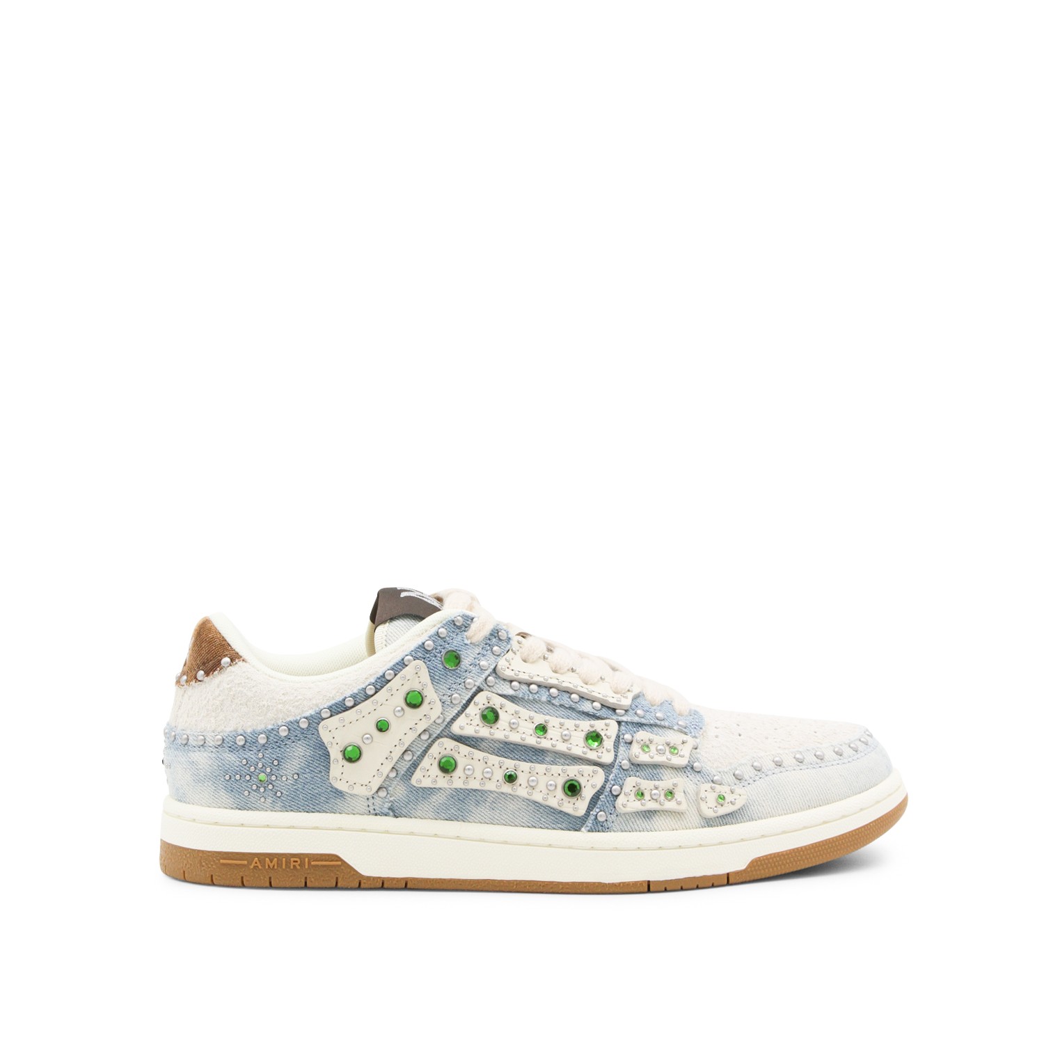 Light blue Skel top low sneakers from Amiri featuring round toe, leather sole, laces fastening and hardware details.