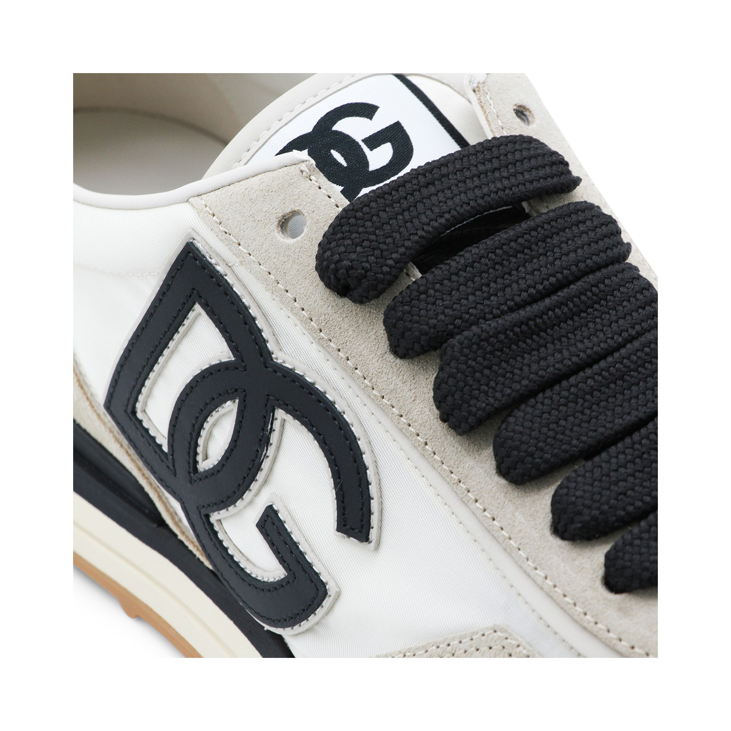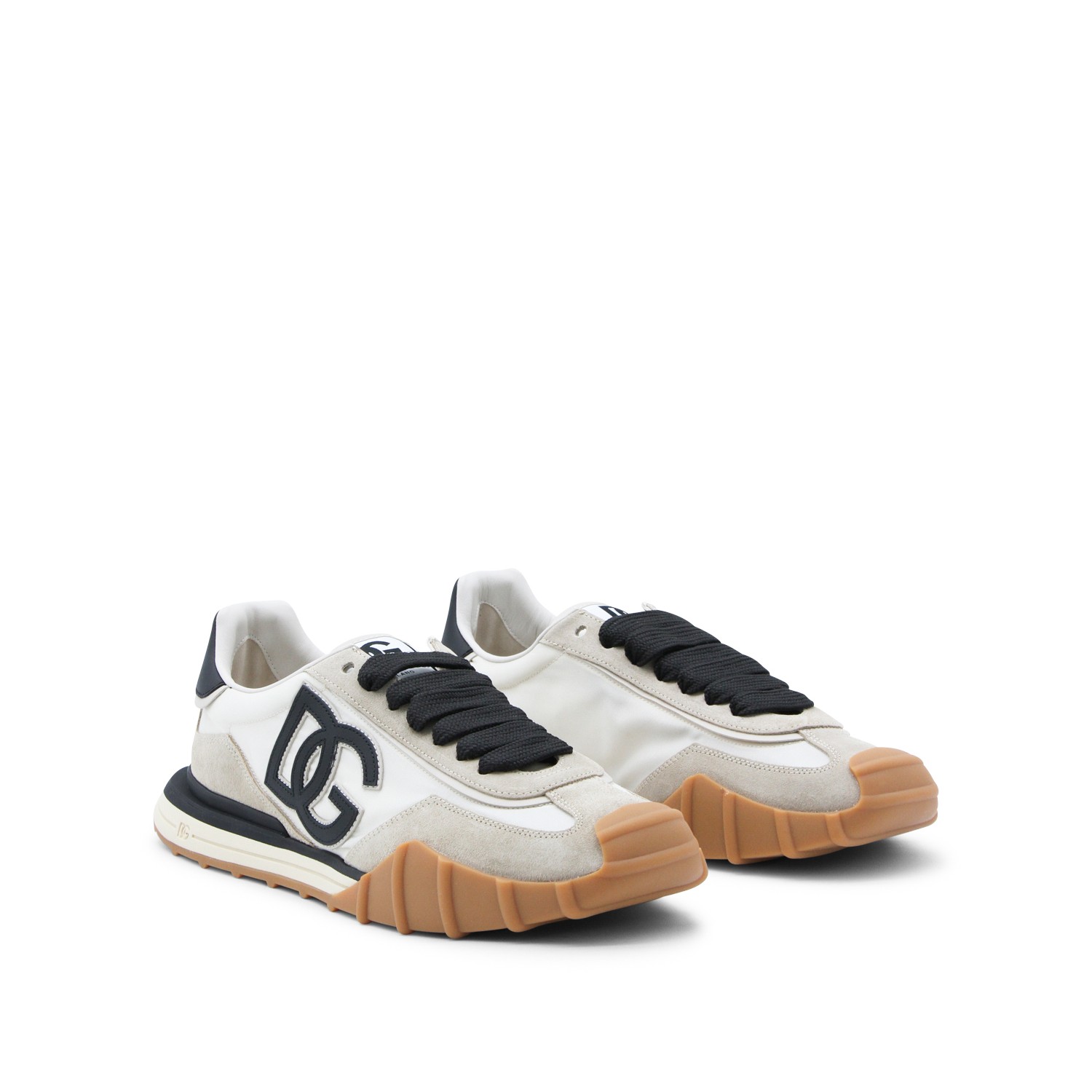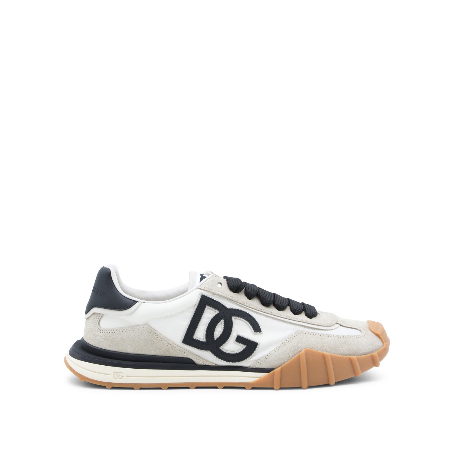 Ivory and black leather DG sneakers from Dolce & Gabbana featuring round toe, cotton lace-up fastening, lateral contrasting logo, contrasting details and rubber sole.