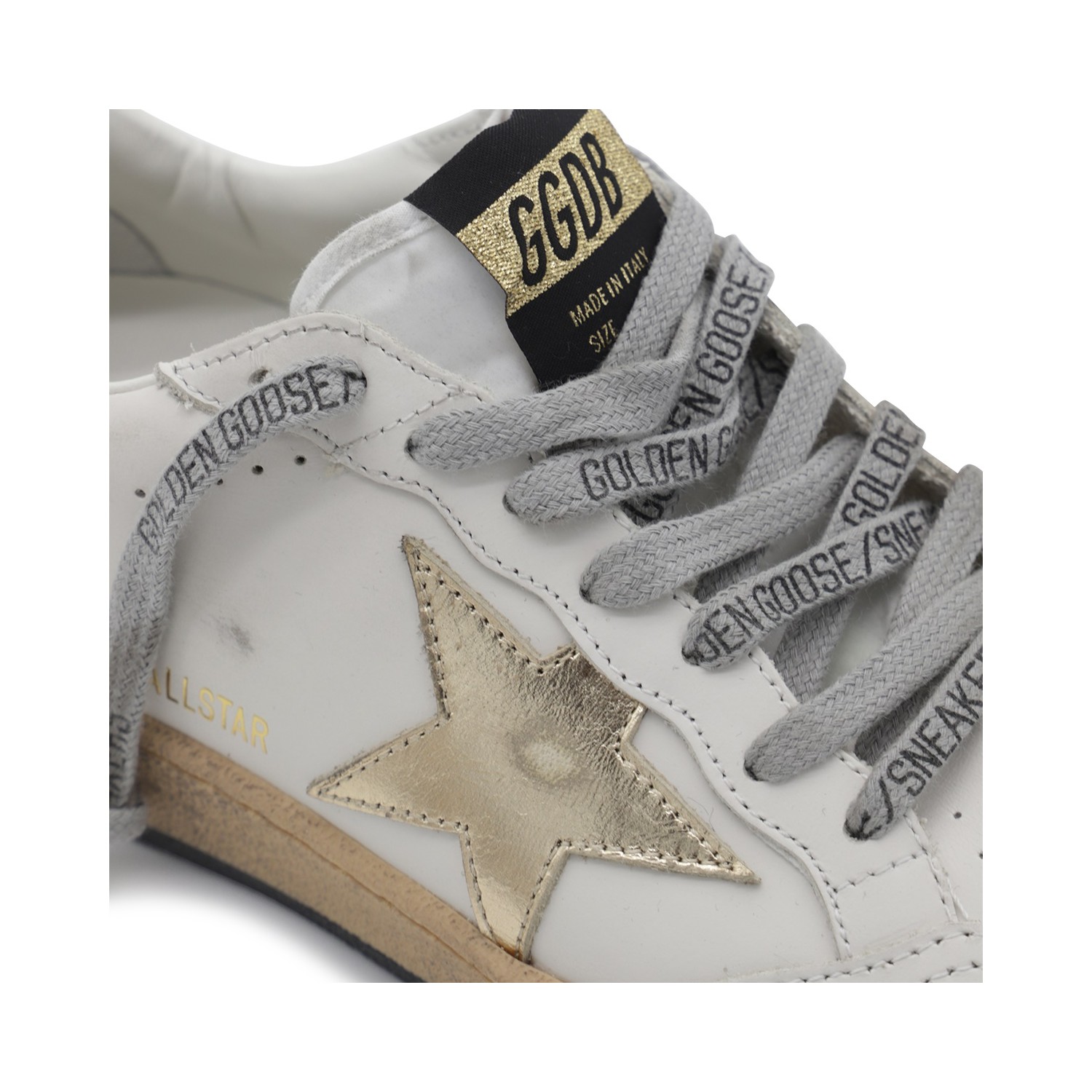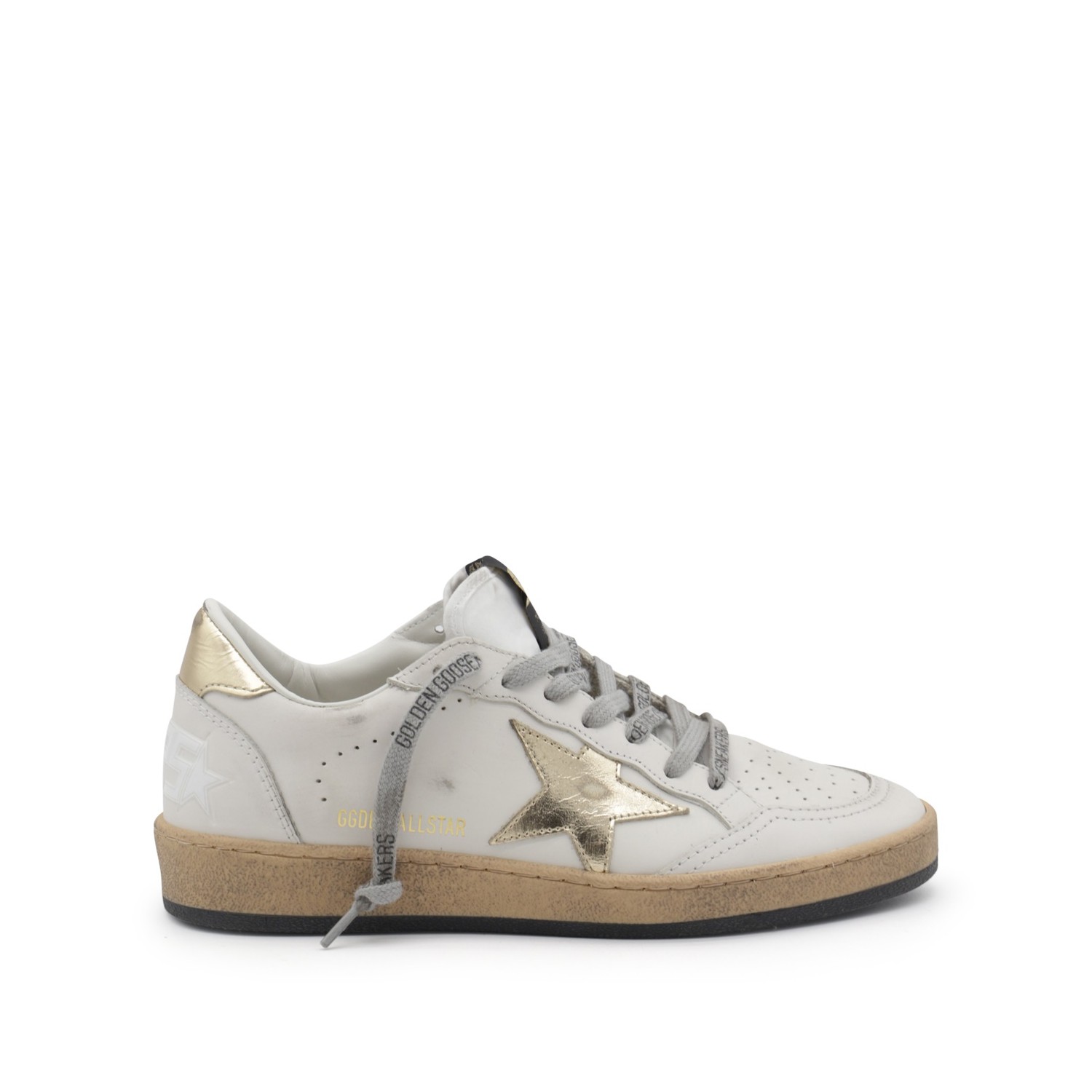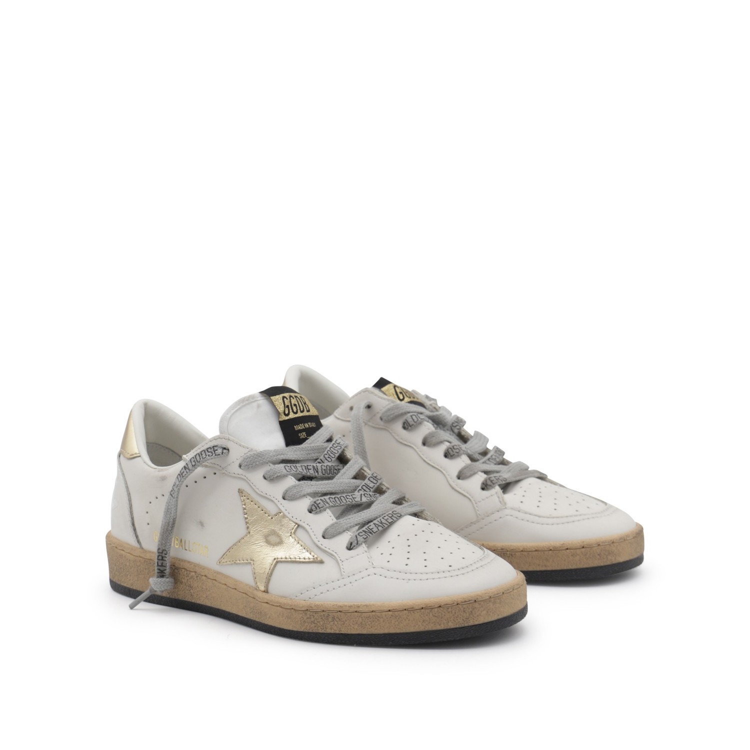 White leather sneakers from Golden Goose featuring round toe, cotton laces fastening, leather sole and lateral detail.