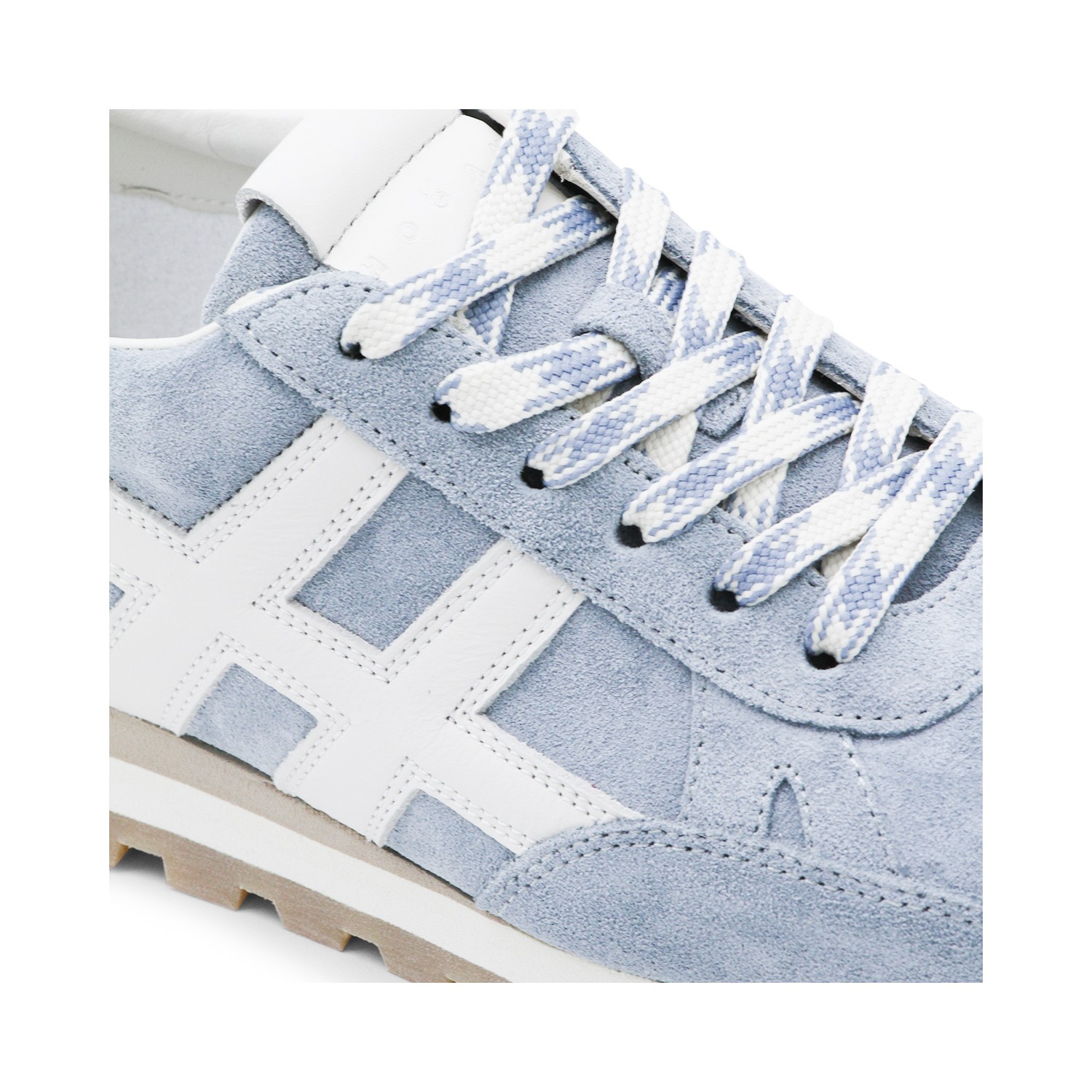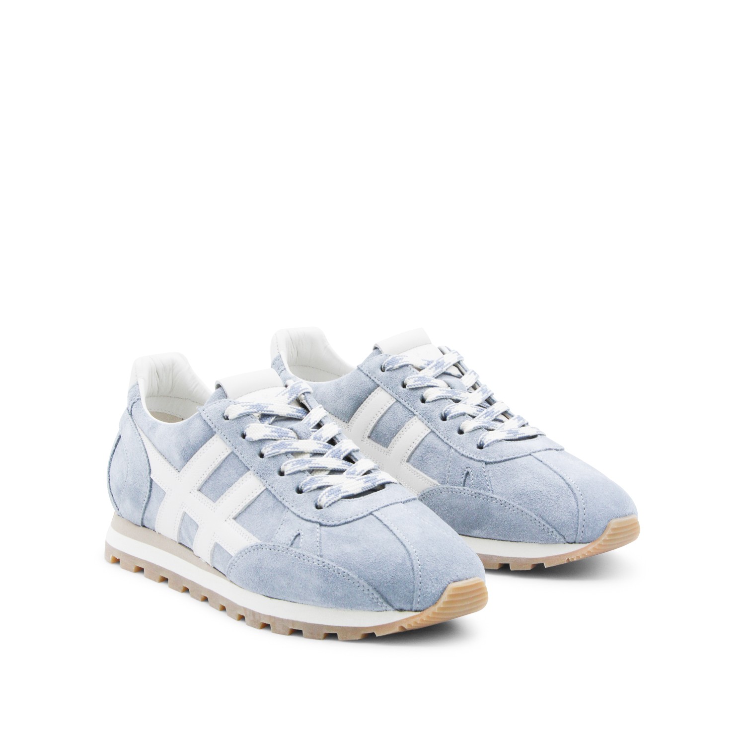 Jeans leather sneakers from Hogan featuring pointed toe, cotton lace-up fastening, suede upper, smooth leather H patch and rubber sole.