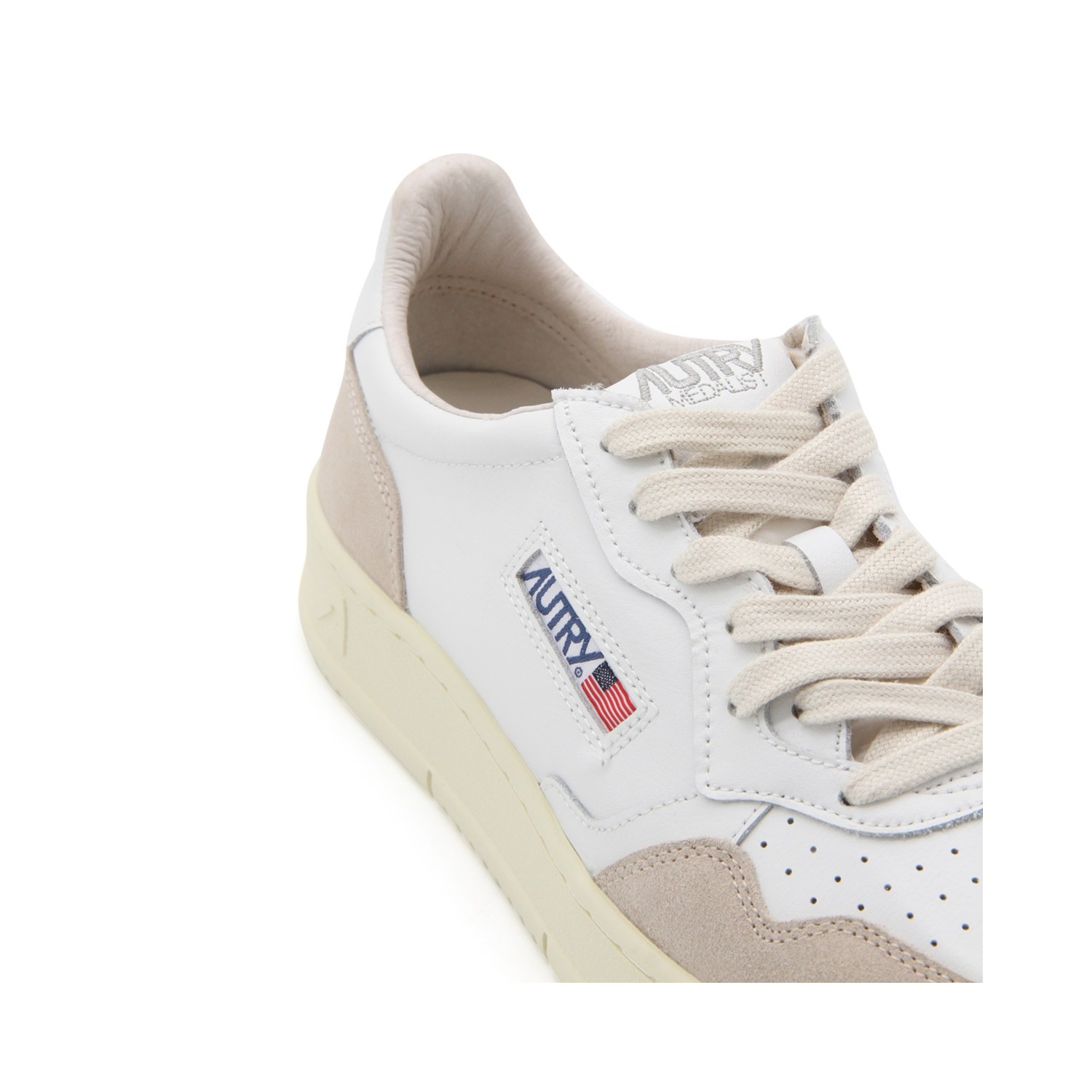 WHITE AND BEIGE LEATHER ACTION SNEAKERS
