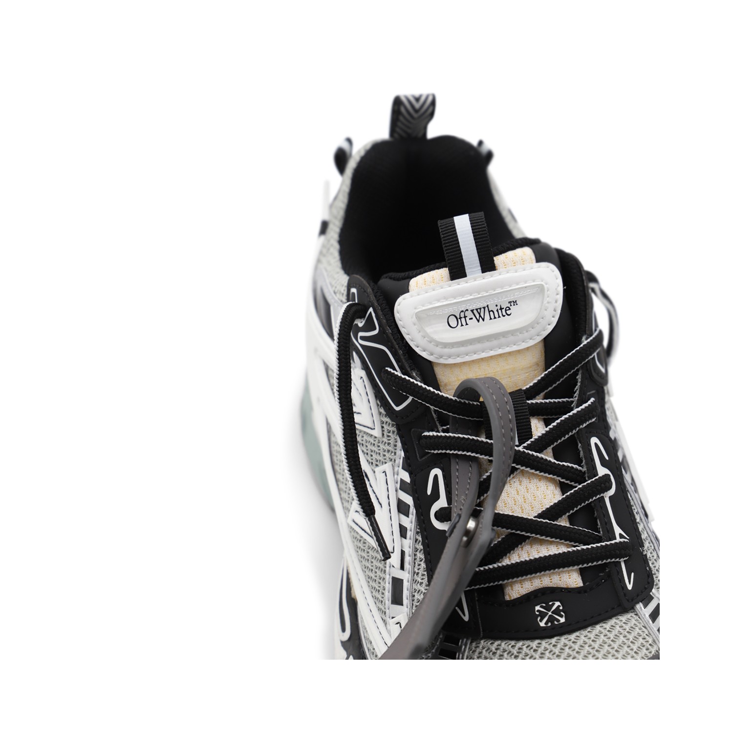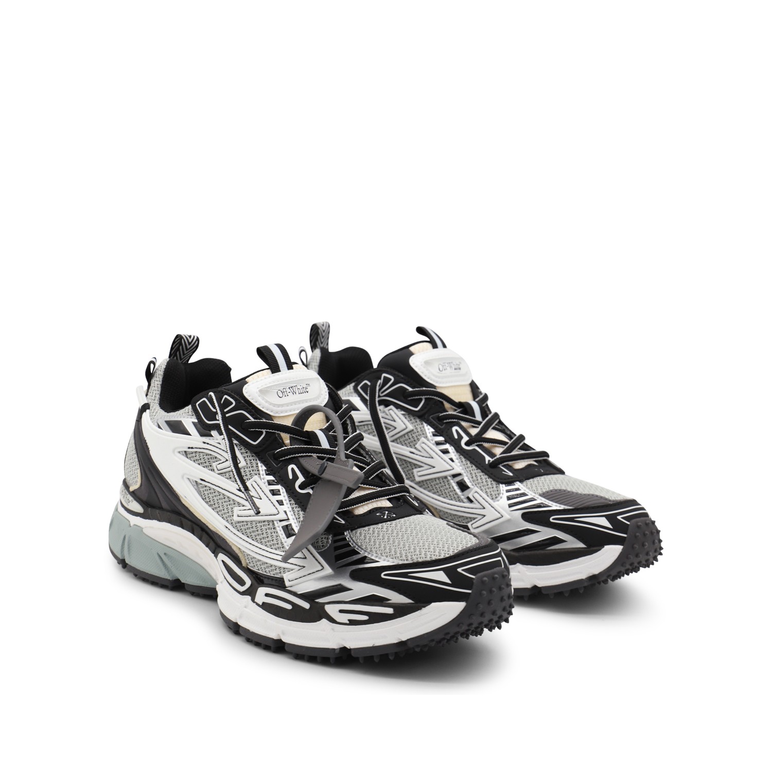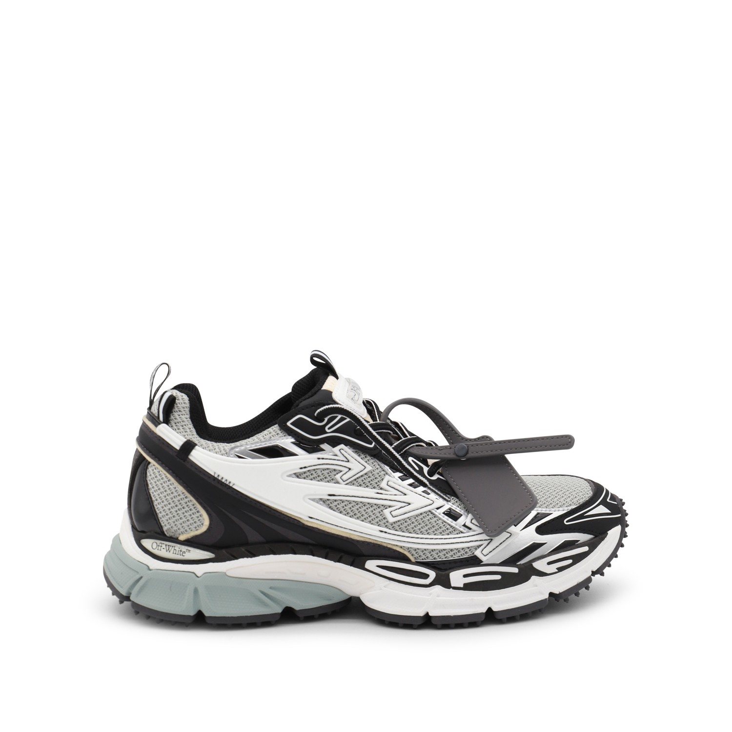 Grey and black Be Right Back sneakers from Off-White featuring round toe, laces fastening, rubber sole, details and logo.