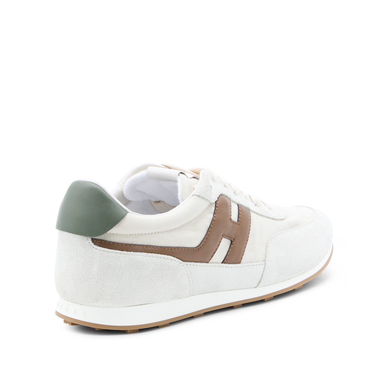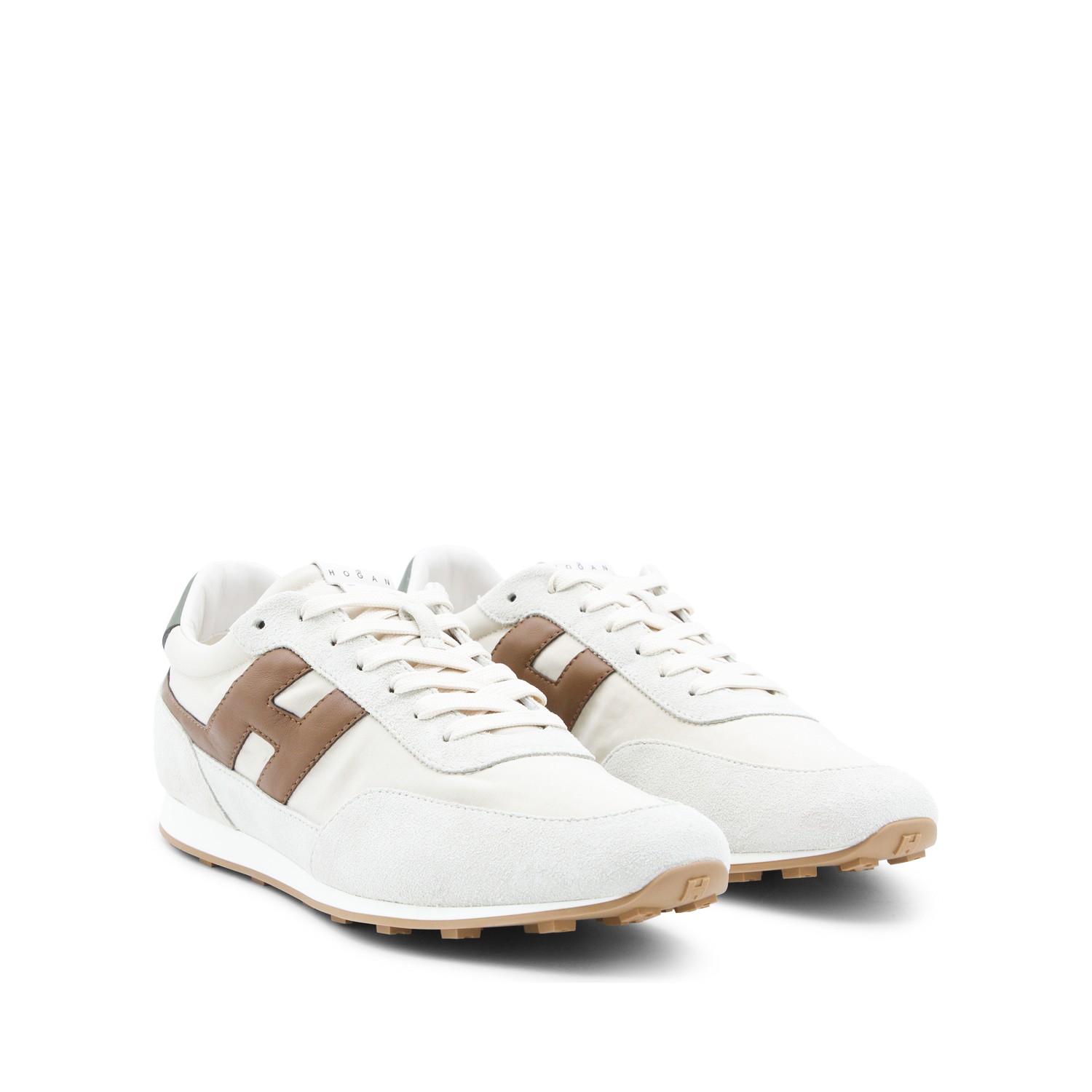 Beige leather sneakers from Hogan featuring round toe, laces fastening, suede details, monogram logo to the side, branded insole and rubber sole.