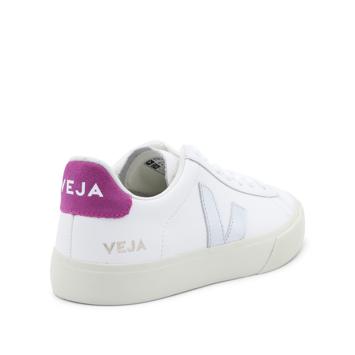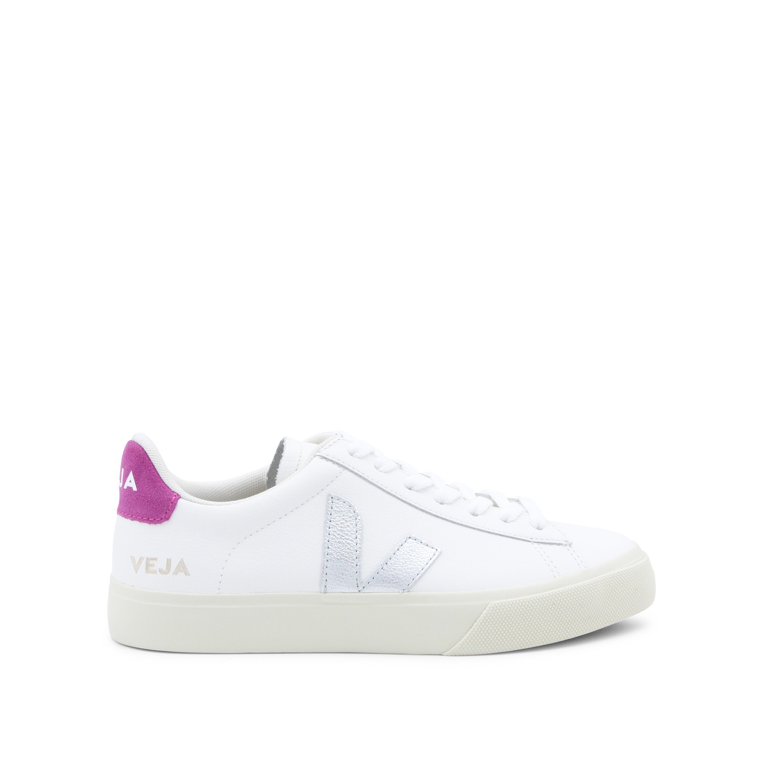 White and purple Campo sneakers from Veja featuring round toe, laces fastening, logo details and leather sole.