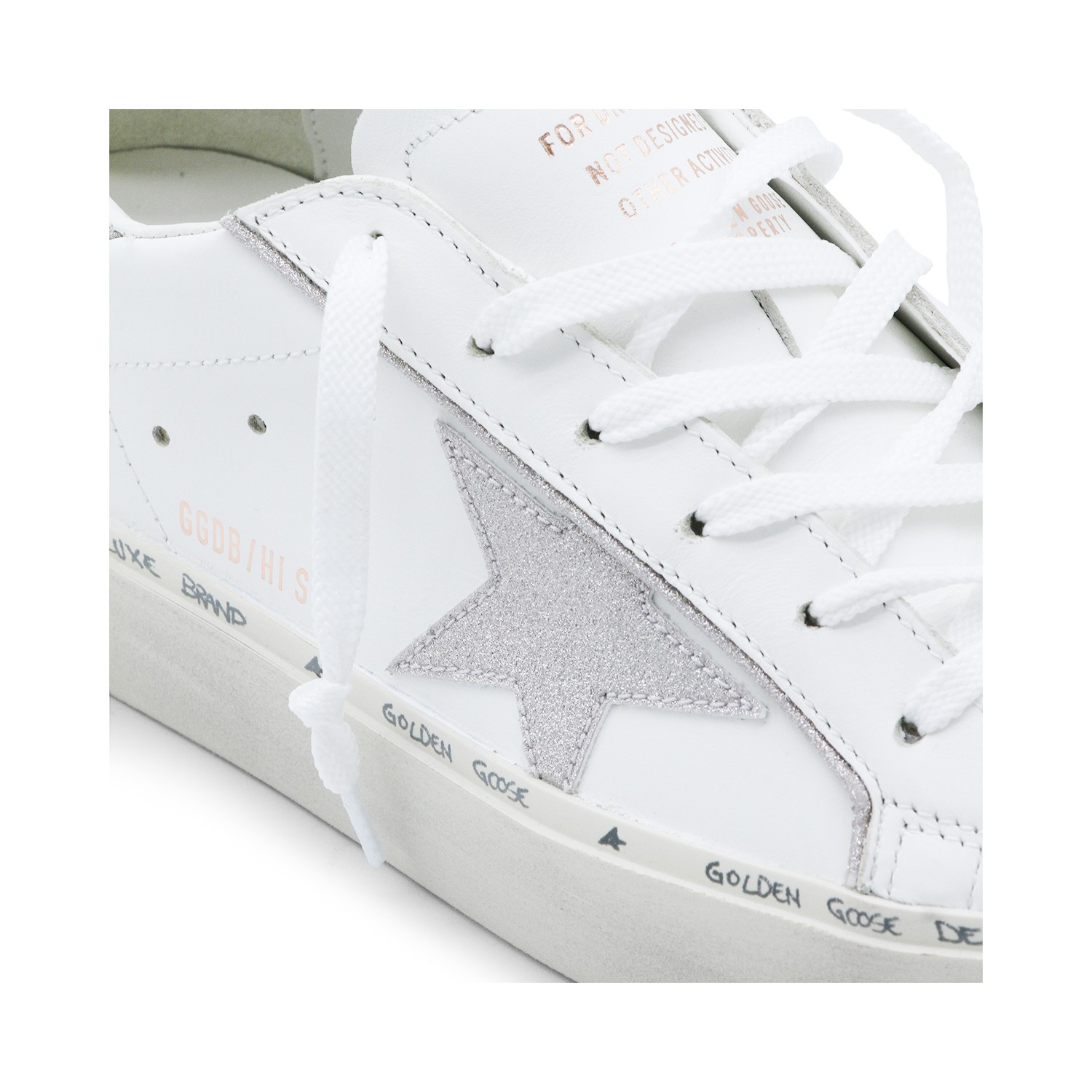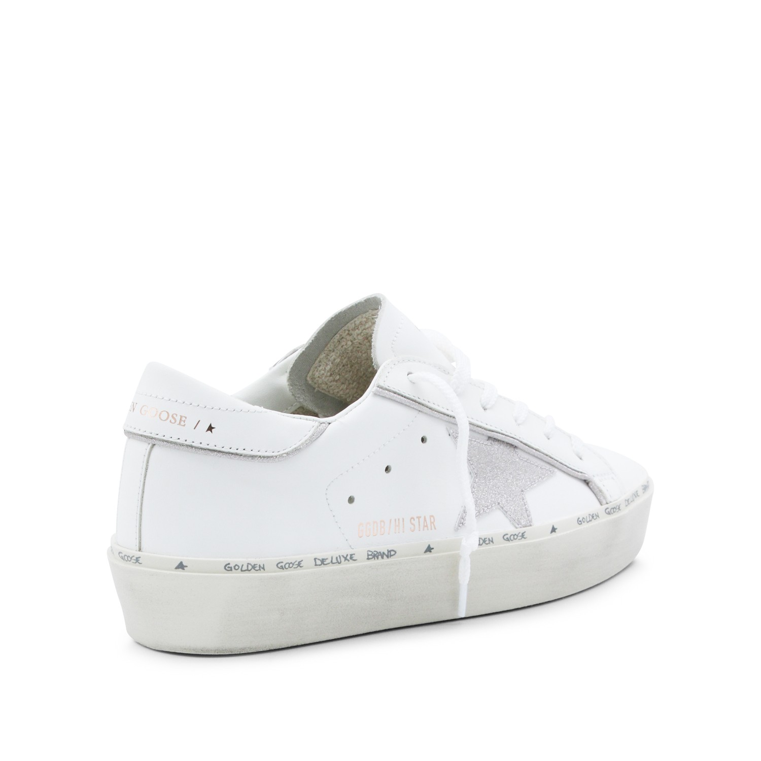 WHITE AND PLATINUM LEATHER HI STAR SNEAKERS