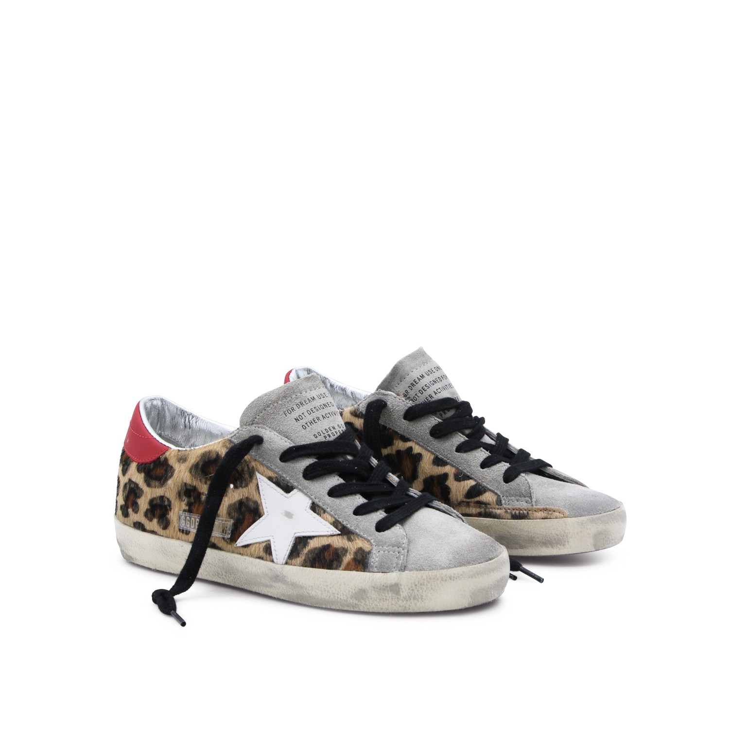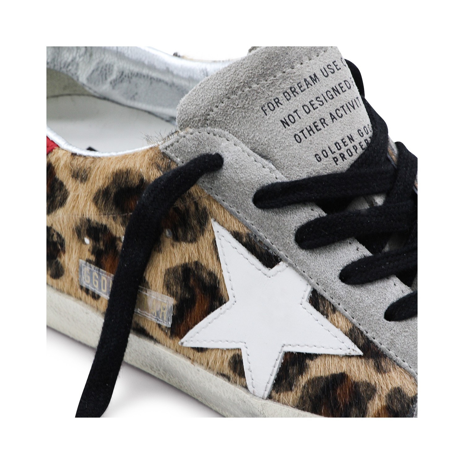 Multicolor Super Star sneakers from Golden Goose featuring round toe, laces fastening, animal print, logo patch and leather sole.