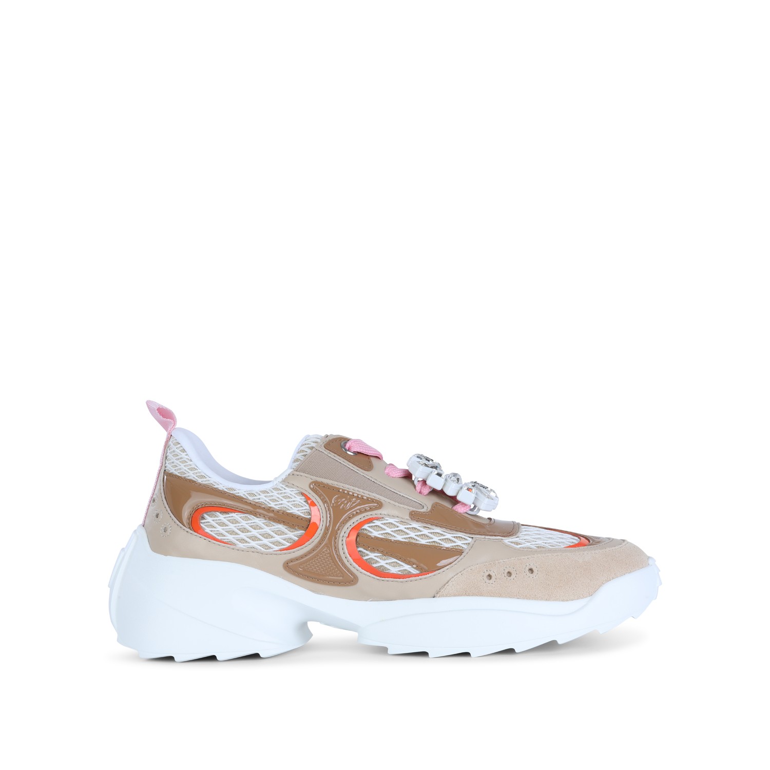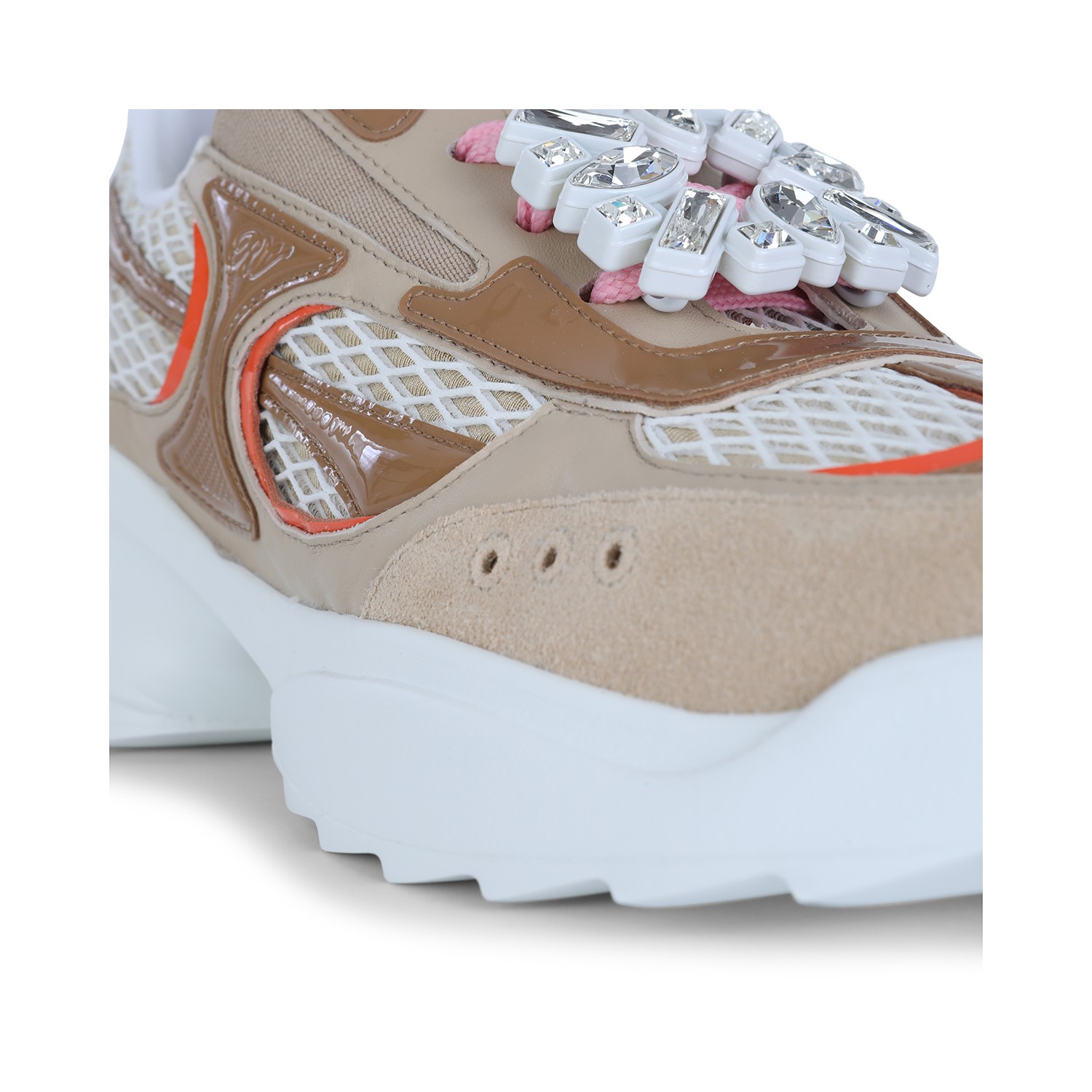 Beige and white leather Viv On The Run sneakers from Roger Vivier featuring round toe, high branded insole, details, laces fastening and regular fit.
