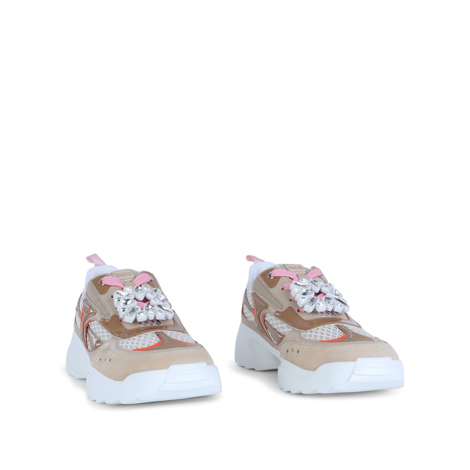 BEIGE AND WHITE LEATHER VIV ON THE RUN SNEAKERS