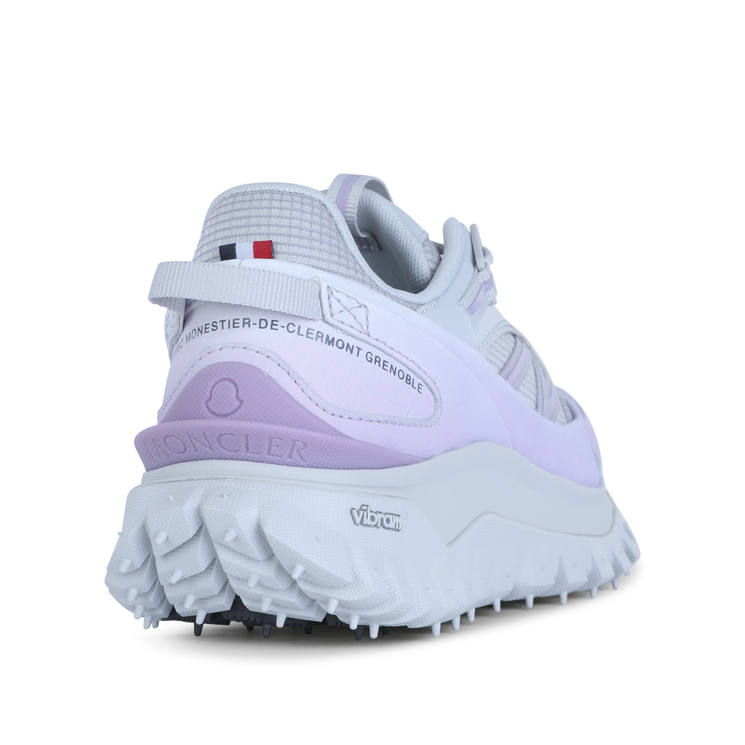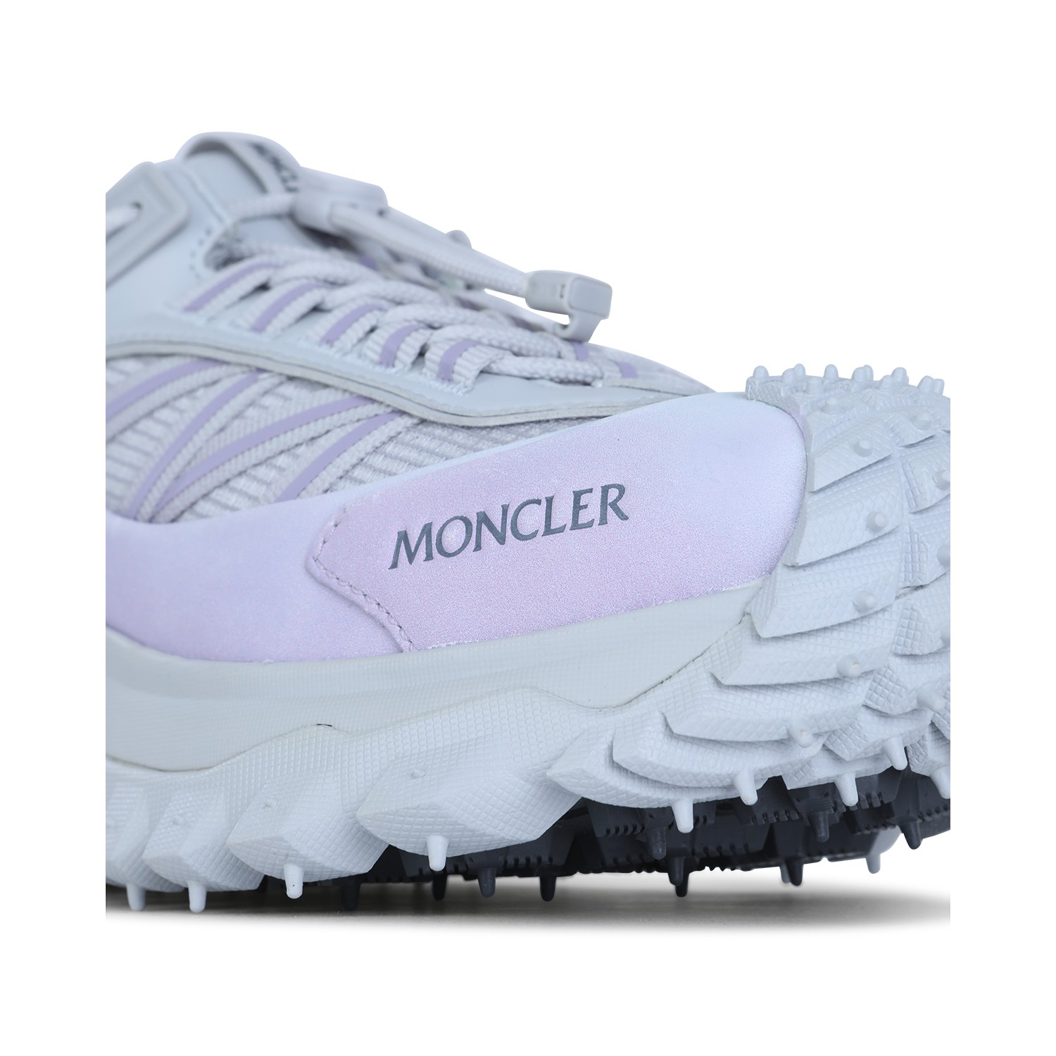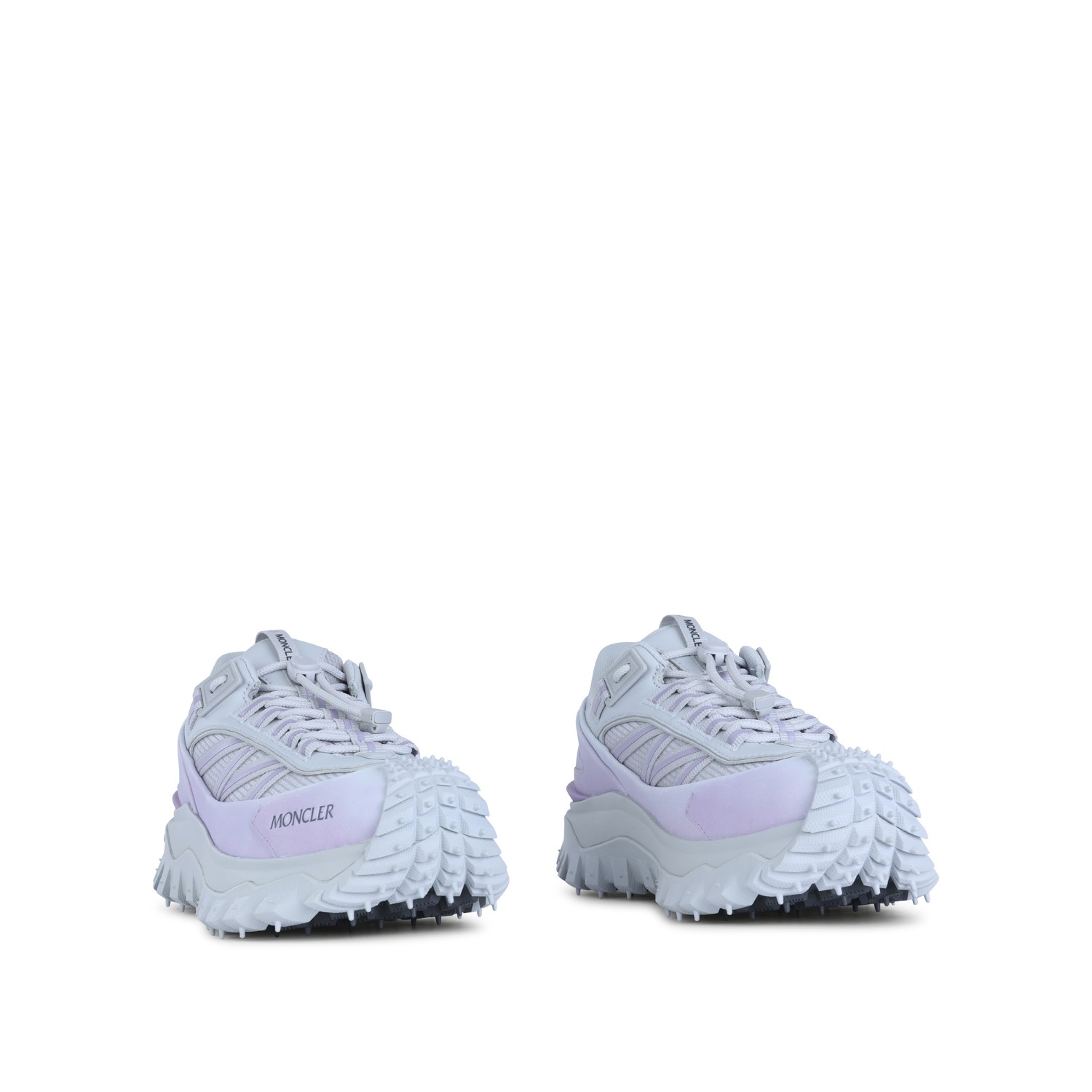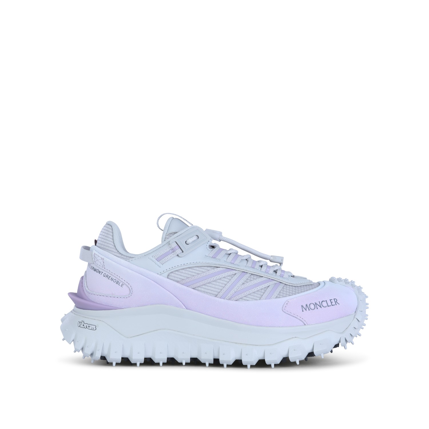 White and lilac leather Trailgrip sneakers from Moncler featuring round toe, laces fastening, drawstring, logo detail and rubber sole.