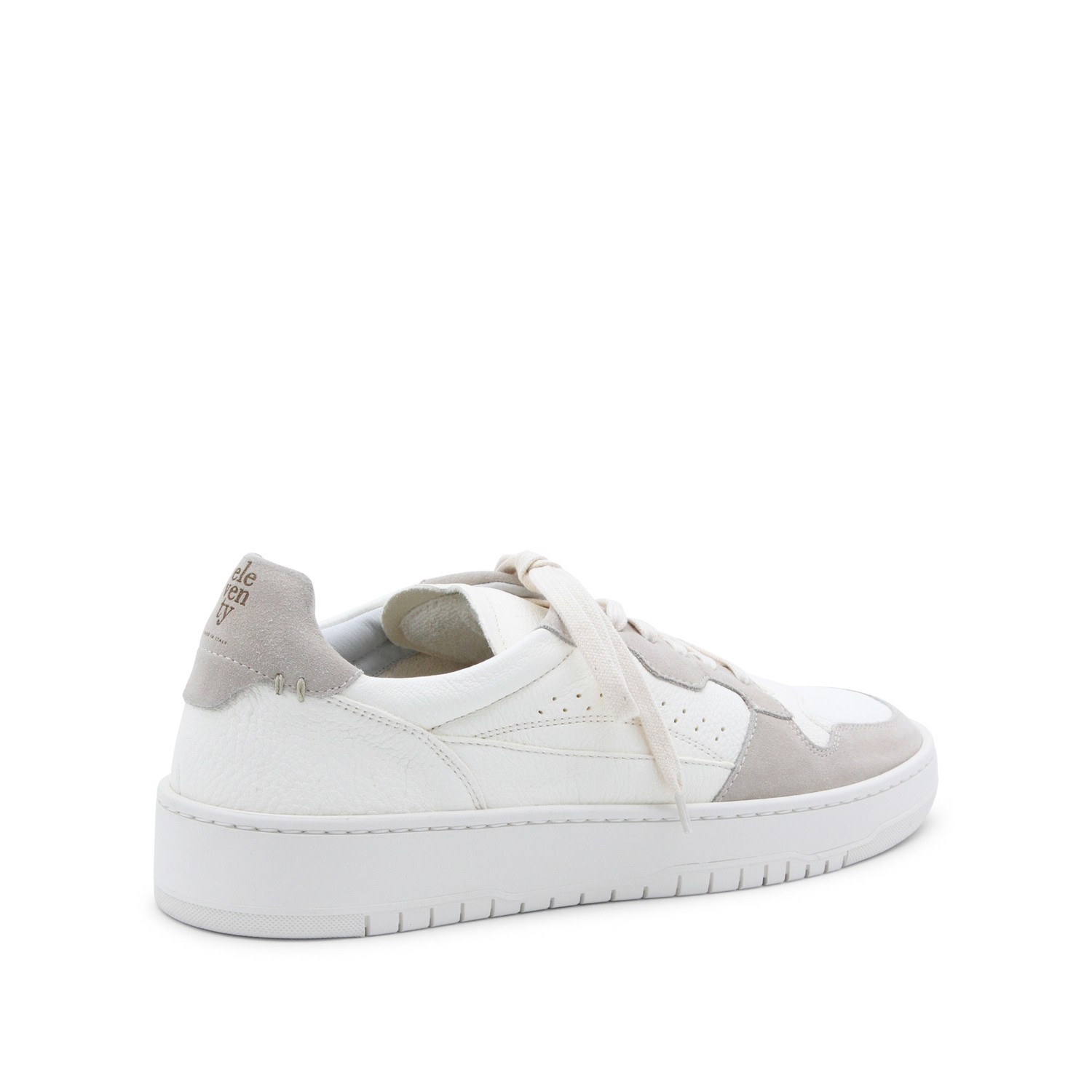 White and sand leather sneakers from Eleventy featuring round toe, details, rubber sole, branded heel, cotton laces fastening and regular fit.