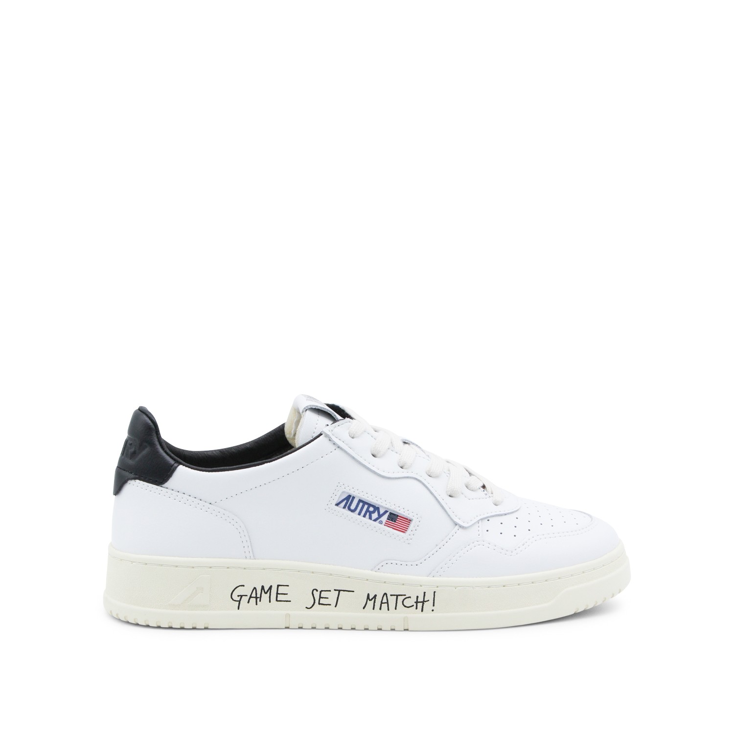 WHITE AND BLACK LEATHER MEDALIST SNEAKERS