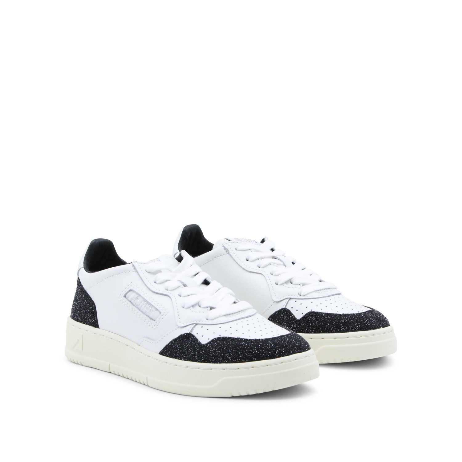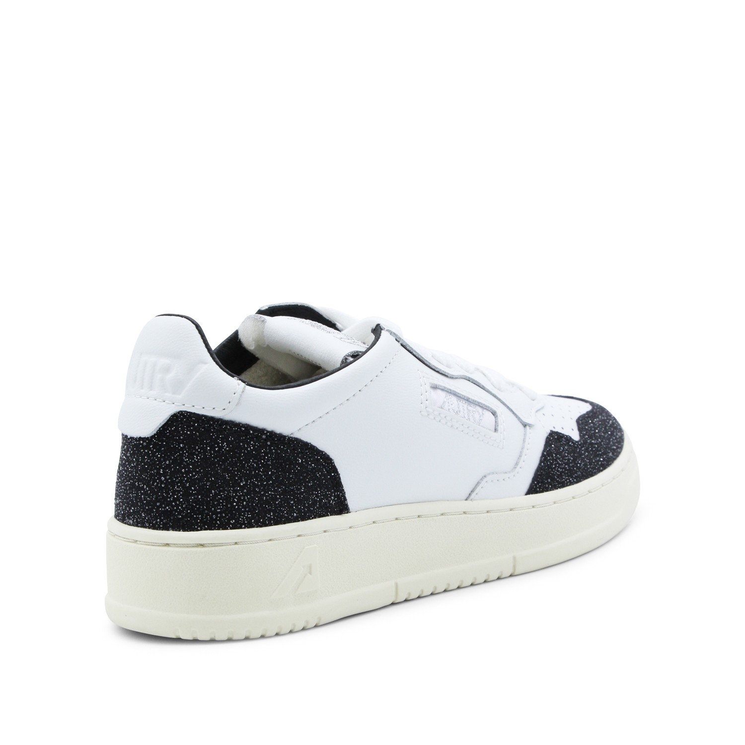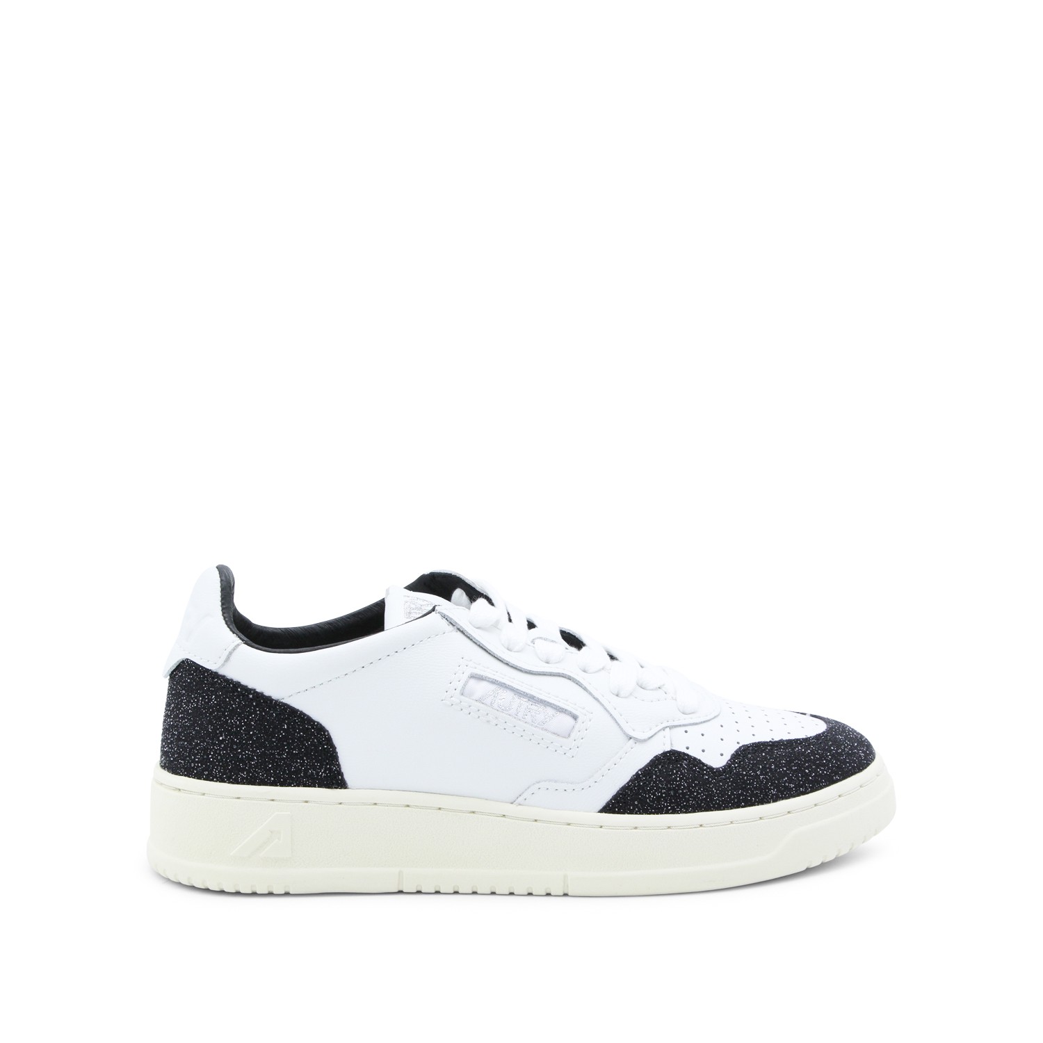 Black and white suede sneakers from Autry featuring rubber sole, round toe, cotton laces, platform line and logo label.