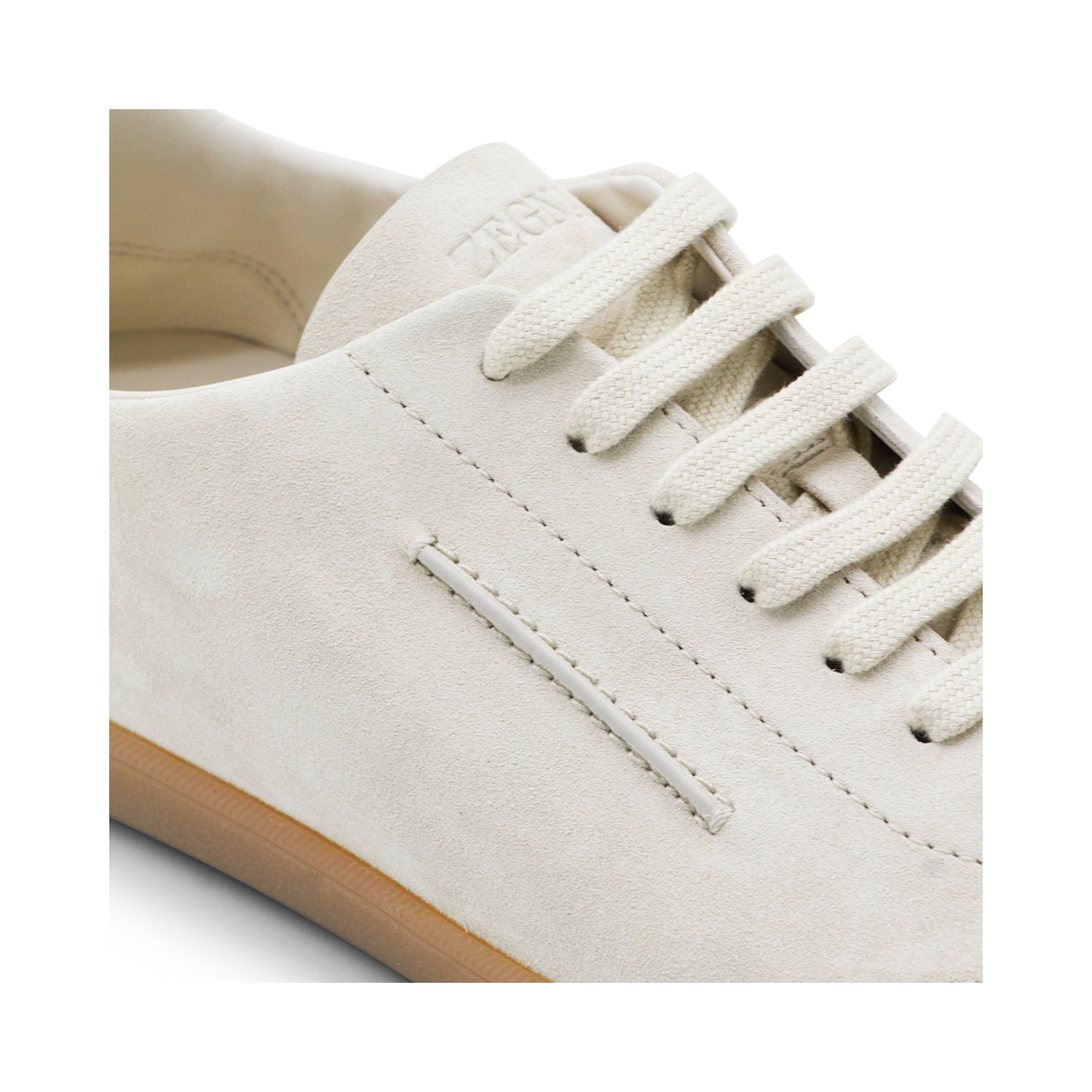Light beige leather sneakers from Zegna featuring round toe, cotton laces fastening, rubber sole, details, frontal logo and regular fit.