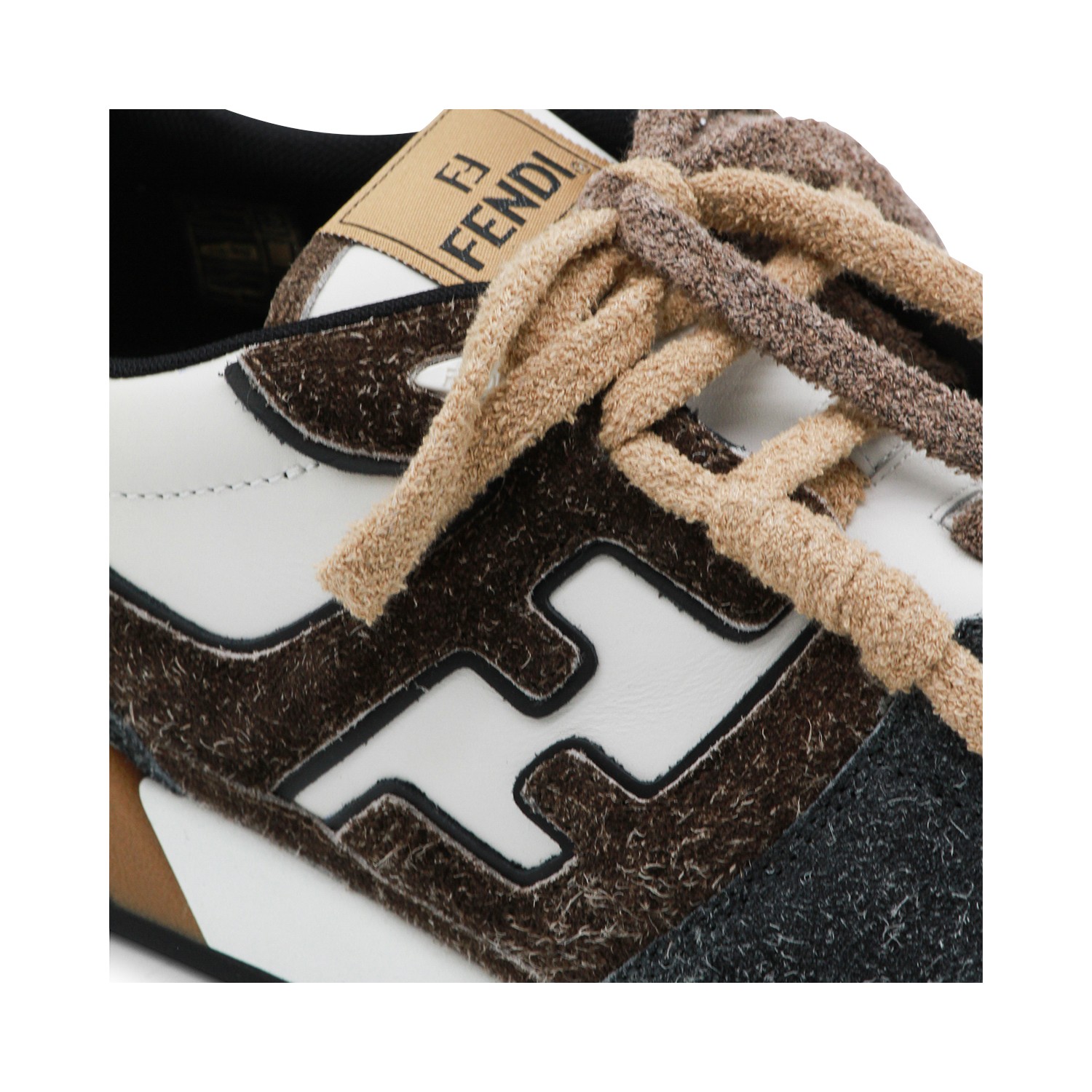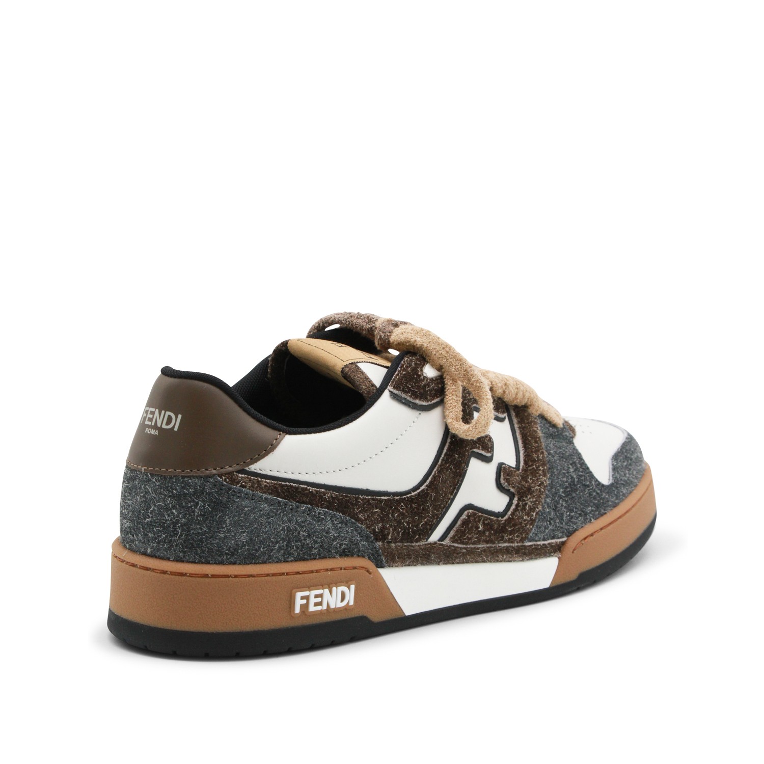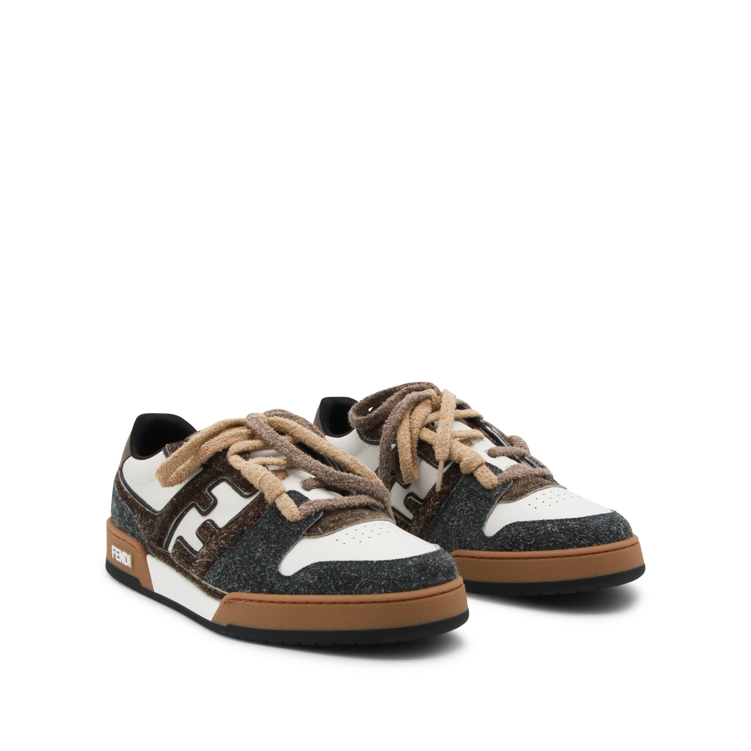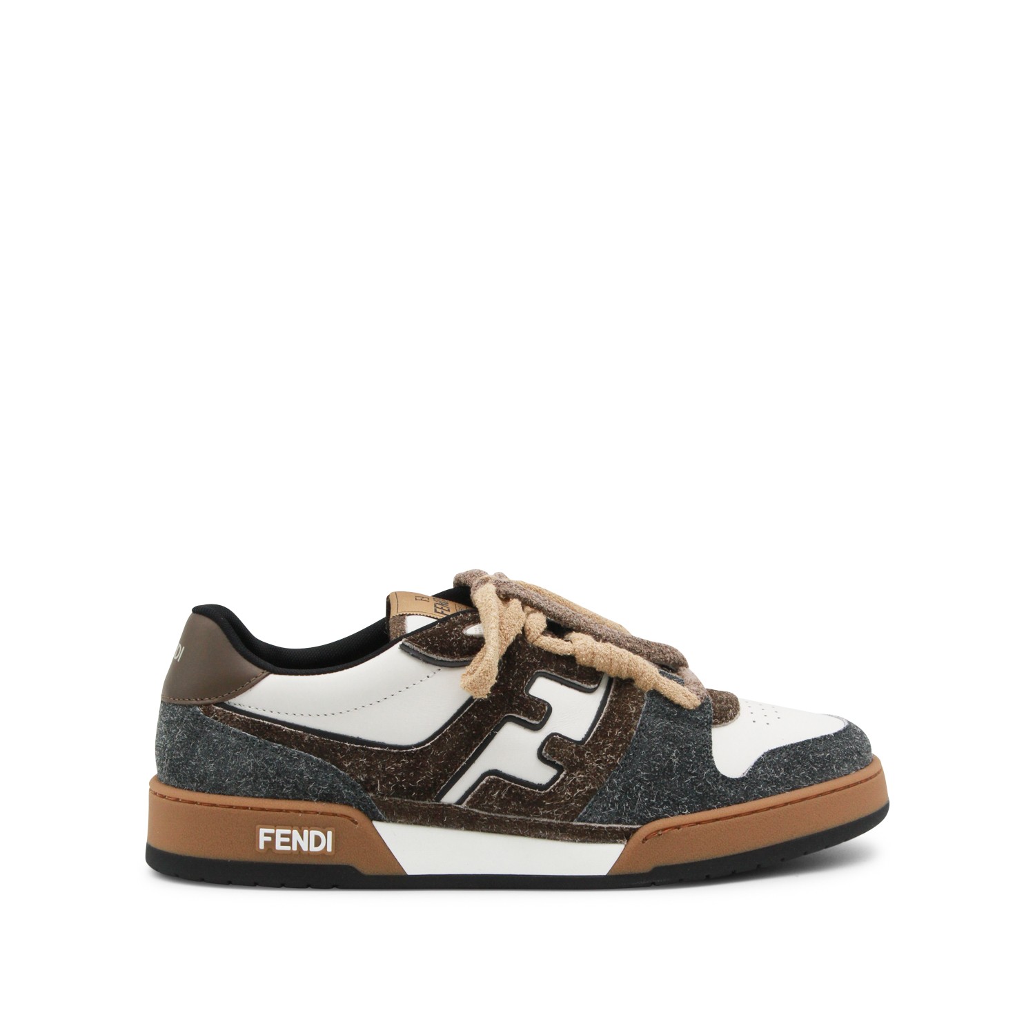 White and brown leather Match sneakers from Fendi featuring round toe, laces fastening, FF motif on the side, branded insole and rubber sole.