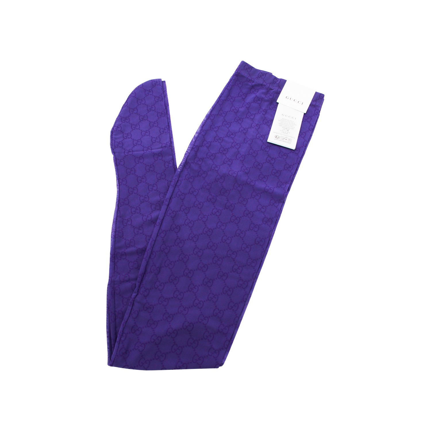 Purple collant socks from Gucci featuring elasticizated waist and all over logo pattern.