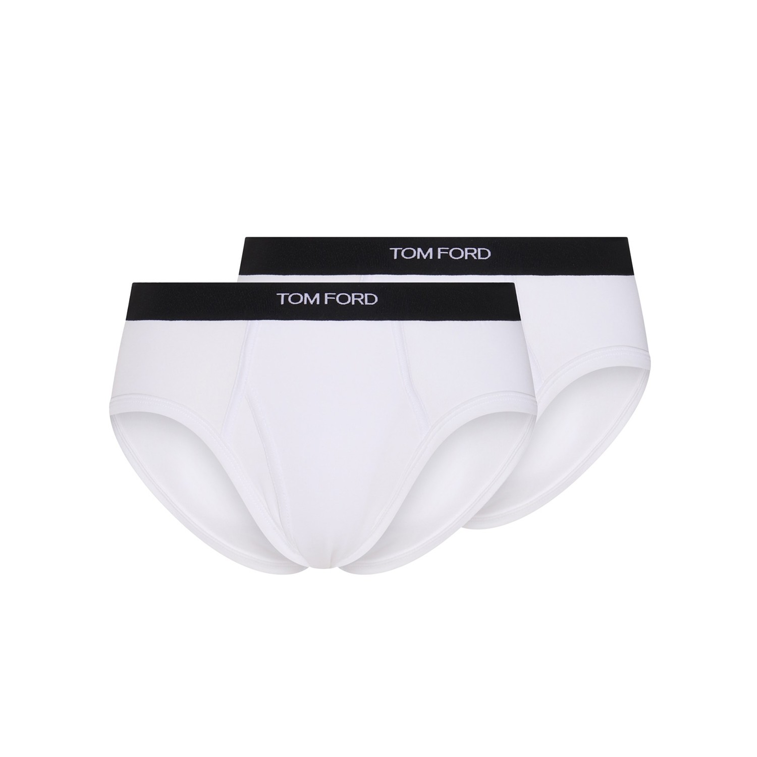 White cotton two-pack briefs from Tom Ford featuring logo waistband, stretch-design and pull-on style.
