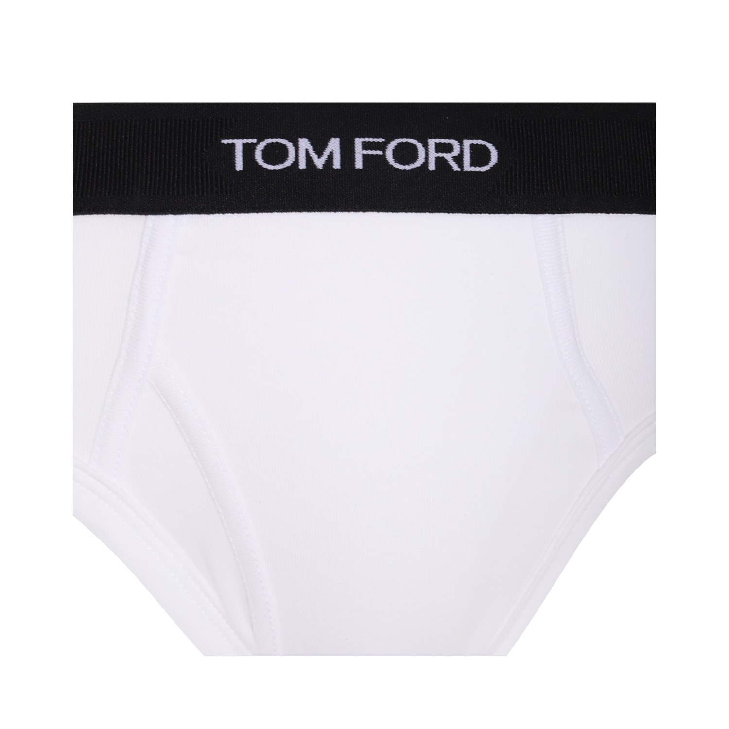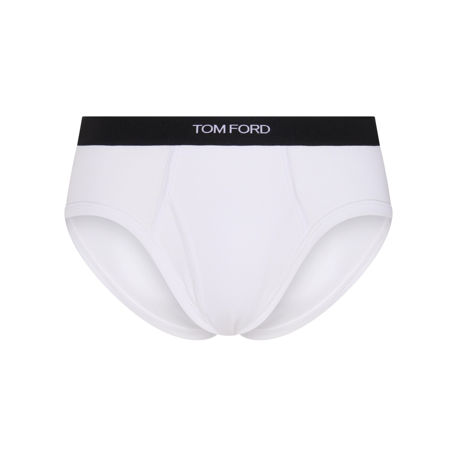 White cotton briefs from Tom Ford featuring elasticated waistband and logo print.