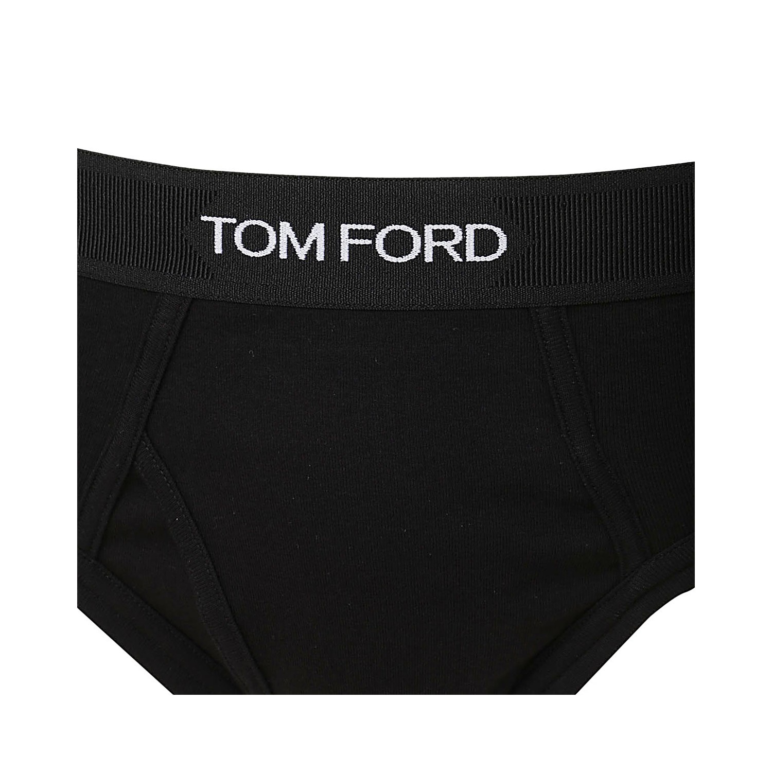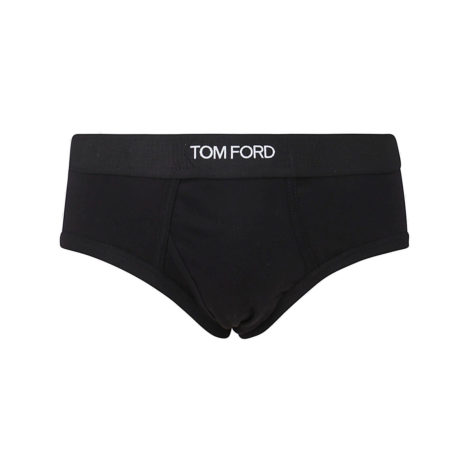 Black cotton briefs from Tom Ford featuring elasticated waistband and logo print.