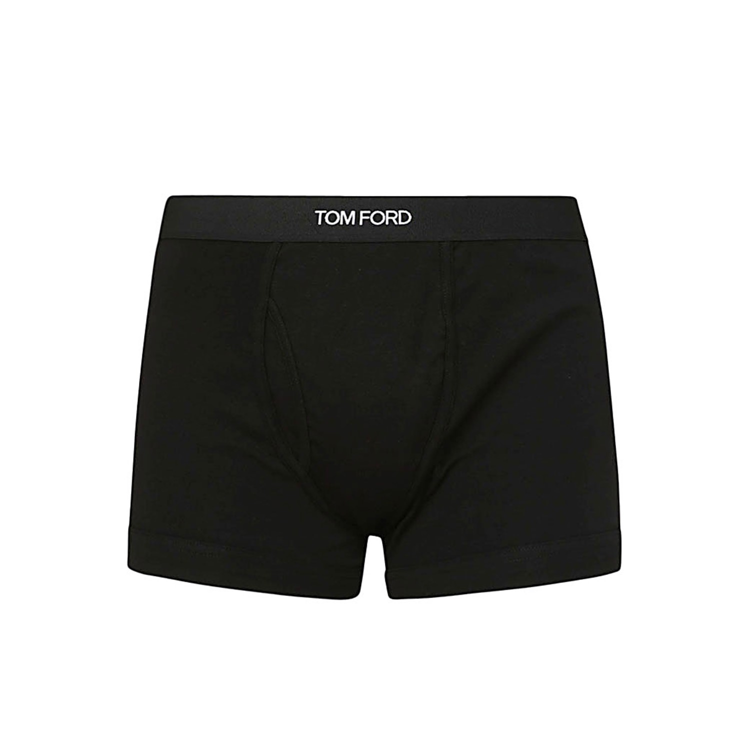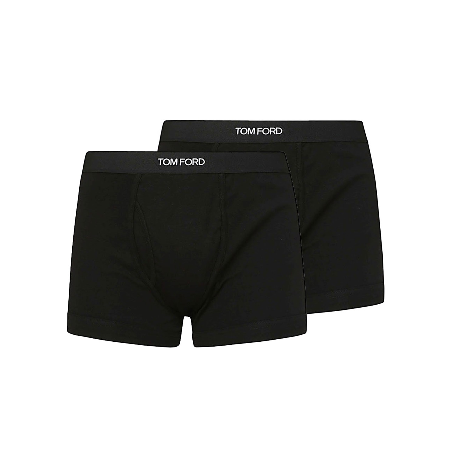 Black cotton two-pack briefs from Tom Ford featuring logo waistband, stretch-design and pull-on style.