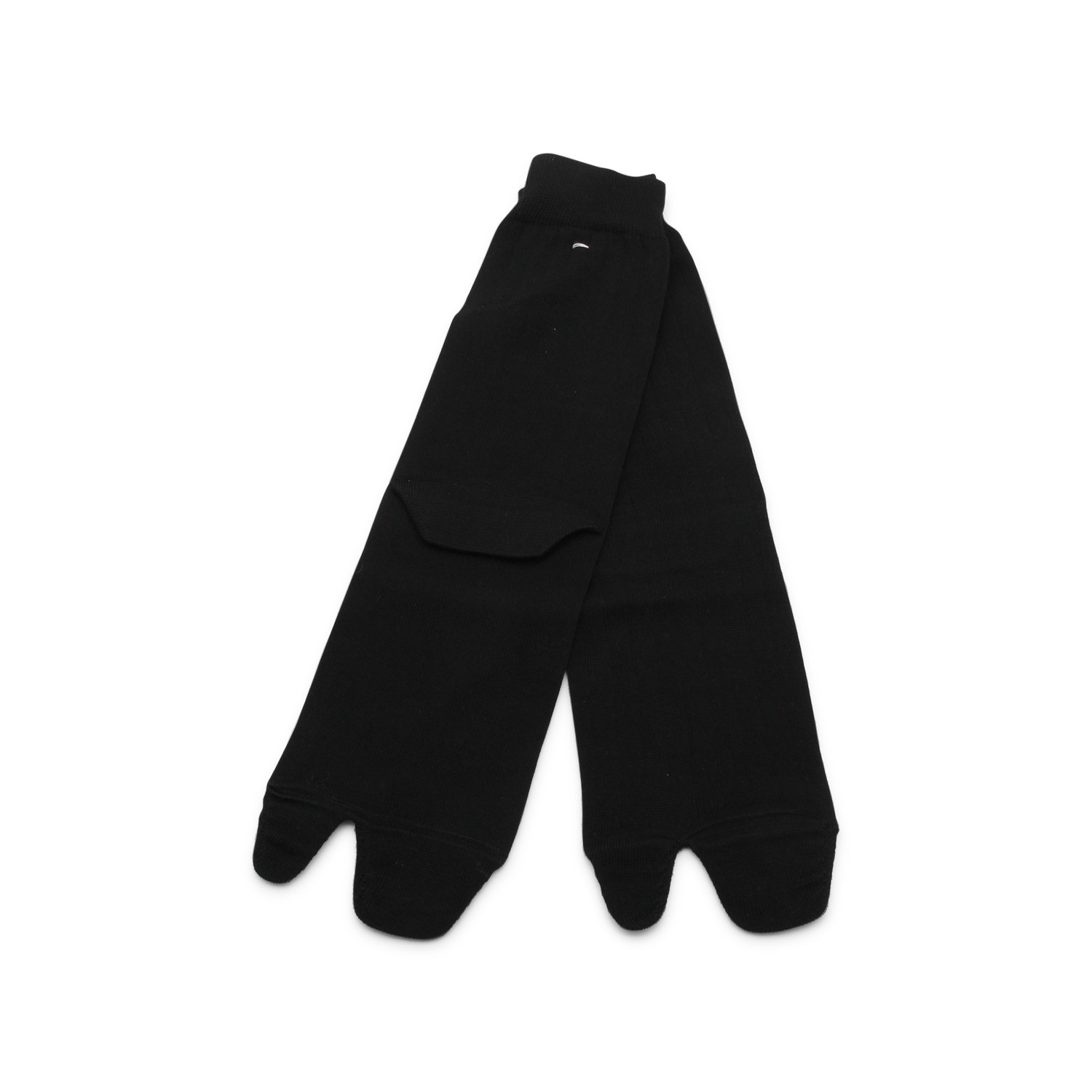 Black cotton blend Tabi socks from Maison Margiela featuring Tabi design and ankle height.