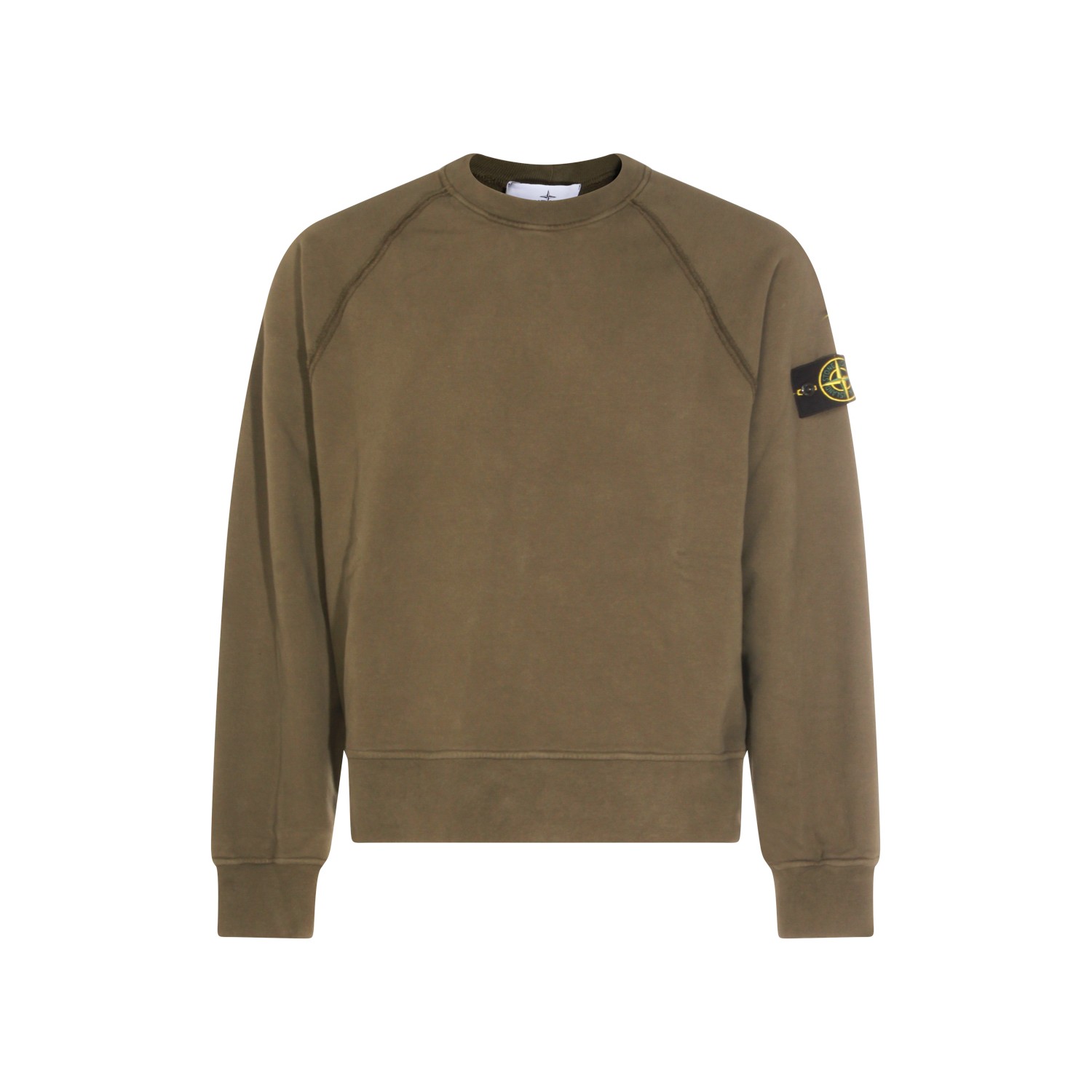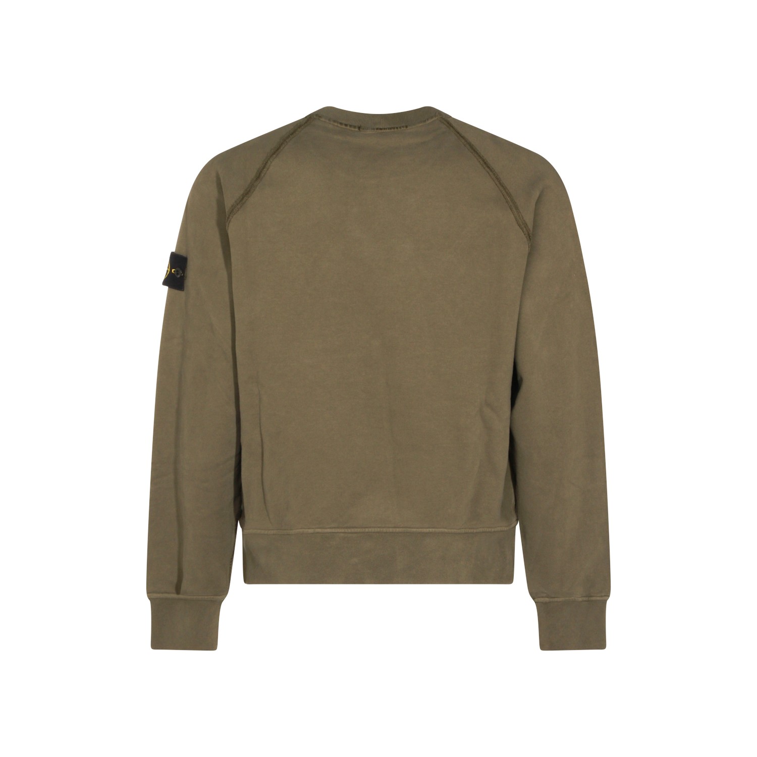 Military green cotton sweatshirt from Stone Island featuring crew neck, long sleeves, sleeve logo patch, stitchings and regular vestibility.