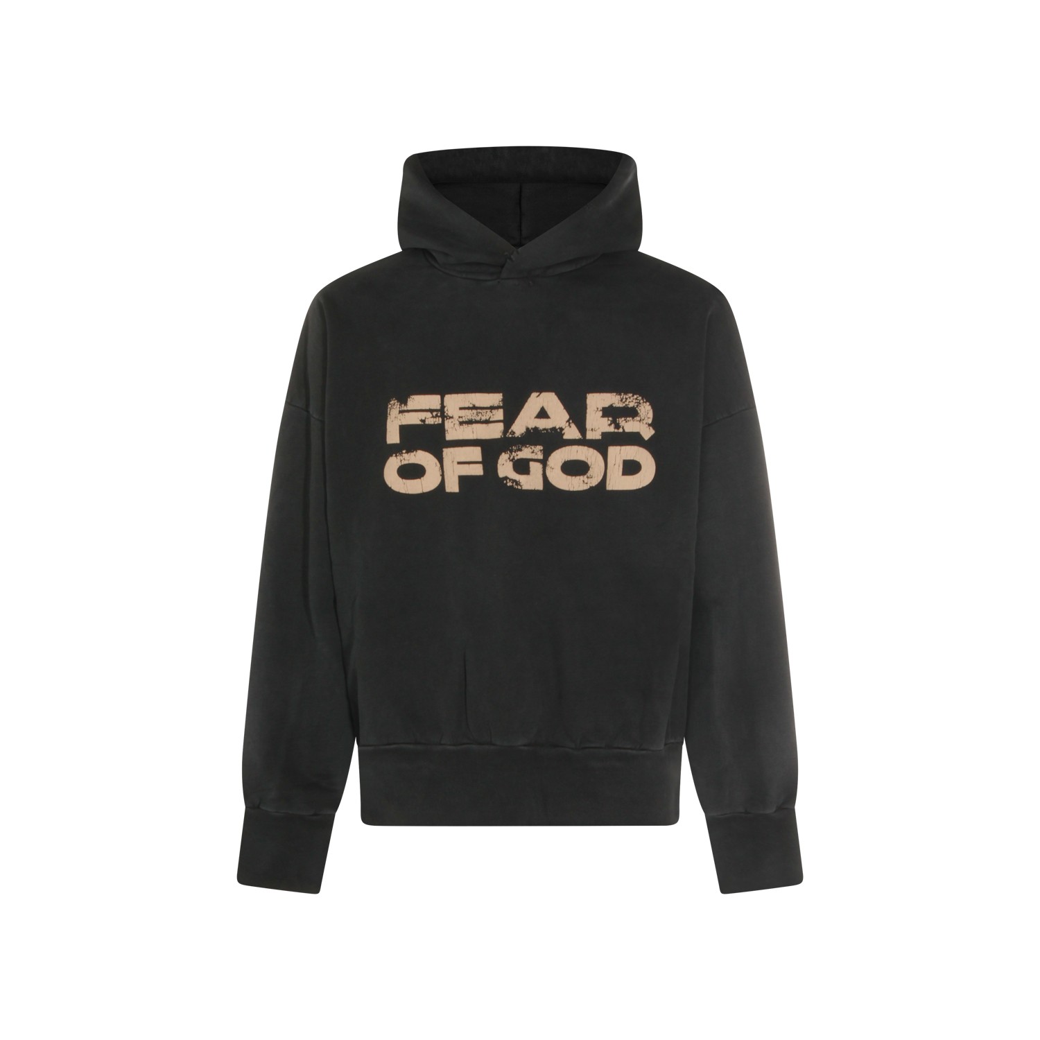 Black cotton sweatshirt from Fear Of God featuring hoog, long sleeves, frontal logo print, ribbed cuffs and hem and regular vestibility.