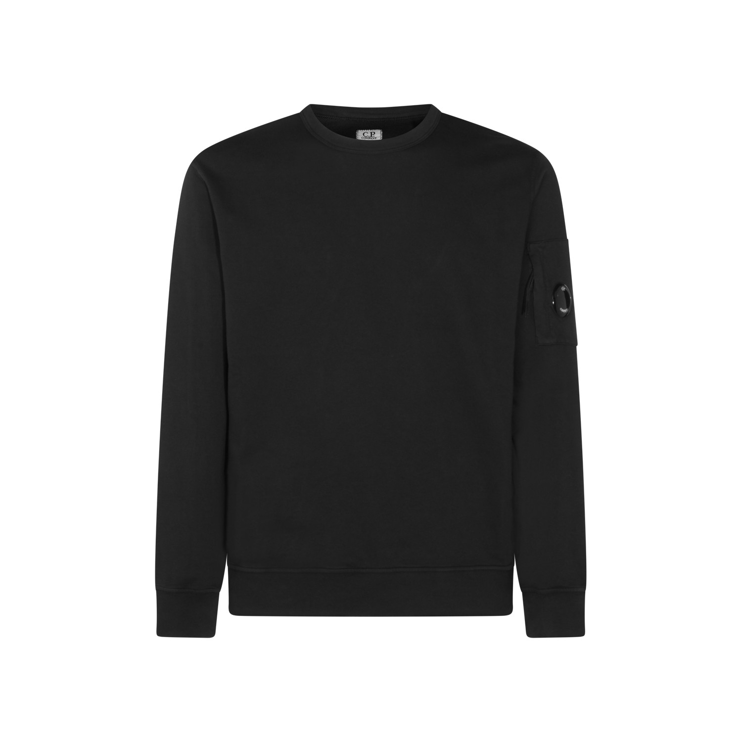 Black cotton sweatshirt from Cp Company featuring long sleeves, round collar, logo patch and ribbed cuffs and hem.