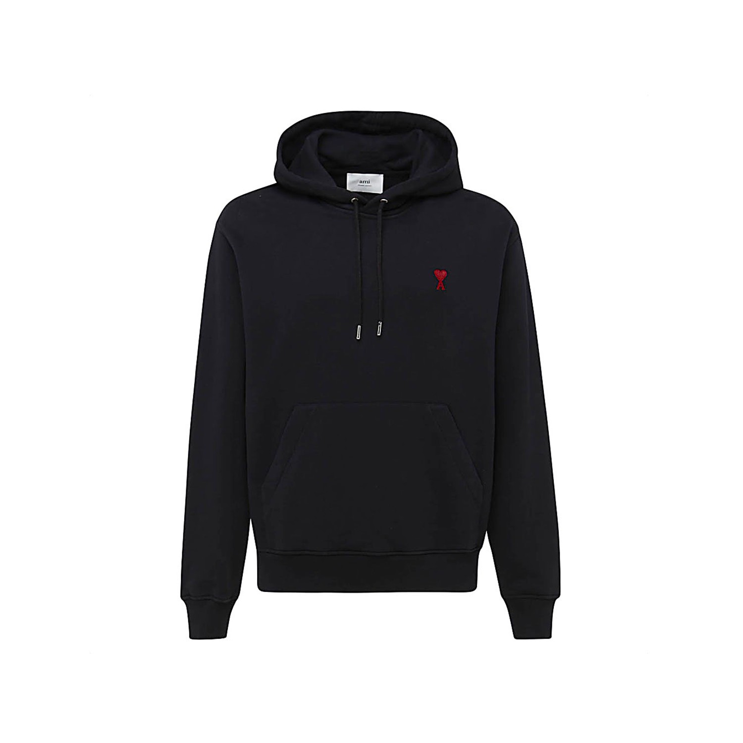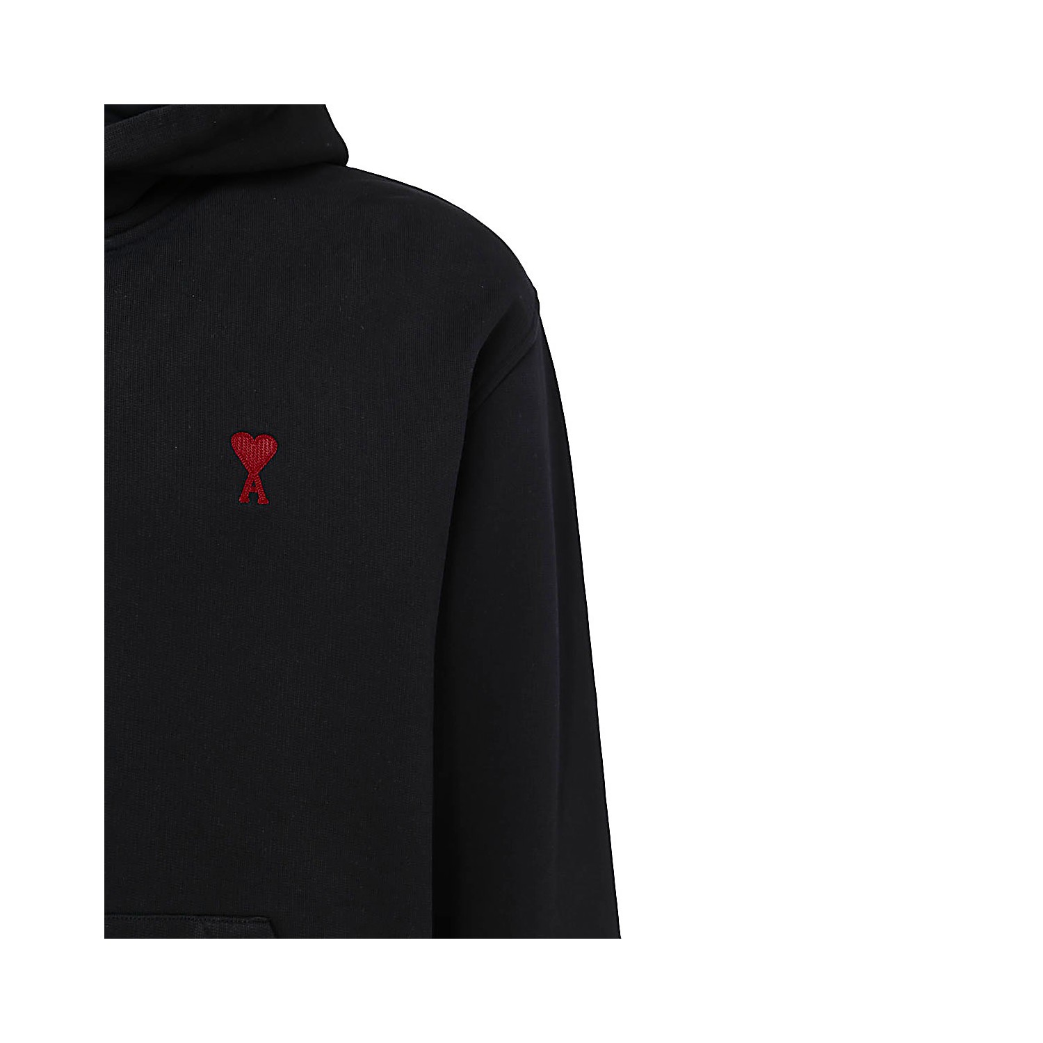 Black cotton sweatshirt from Ami Paris featuring long sleeves, kangaroo pocket, frontal logo at chest, hood with drawstrings and regular vestibility.
