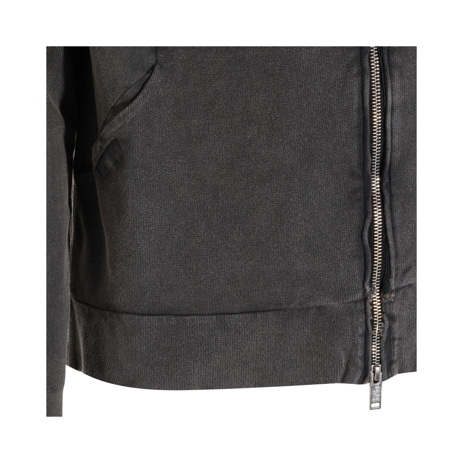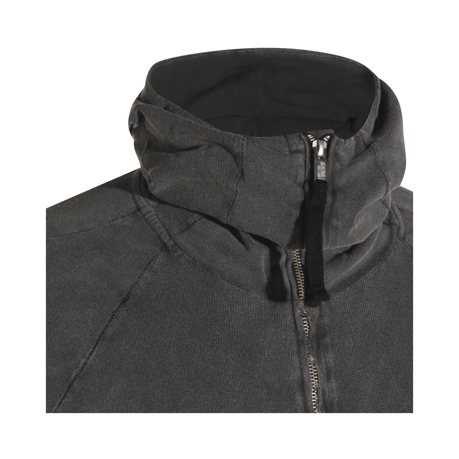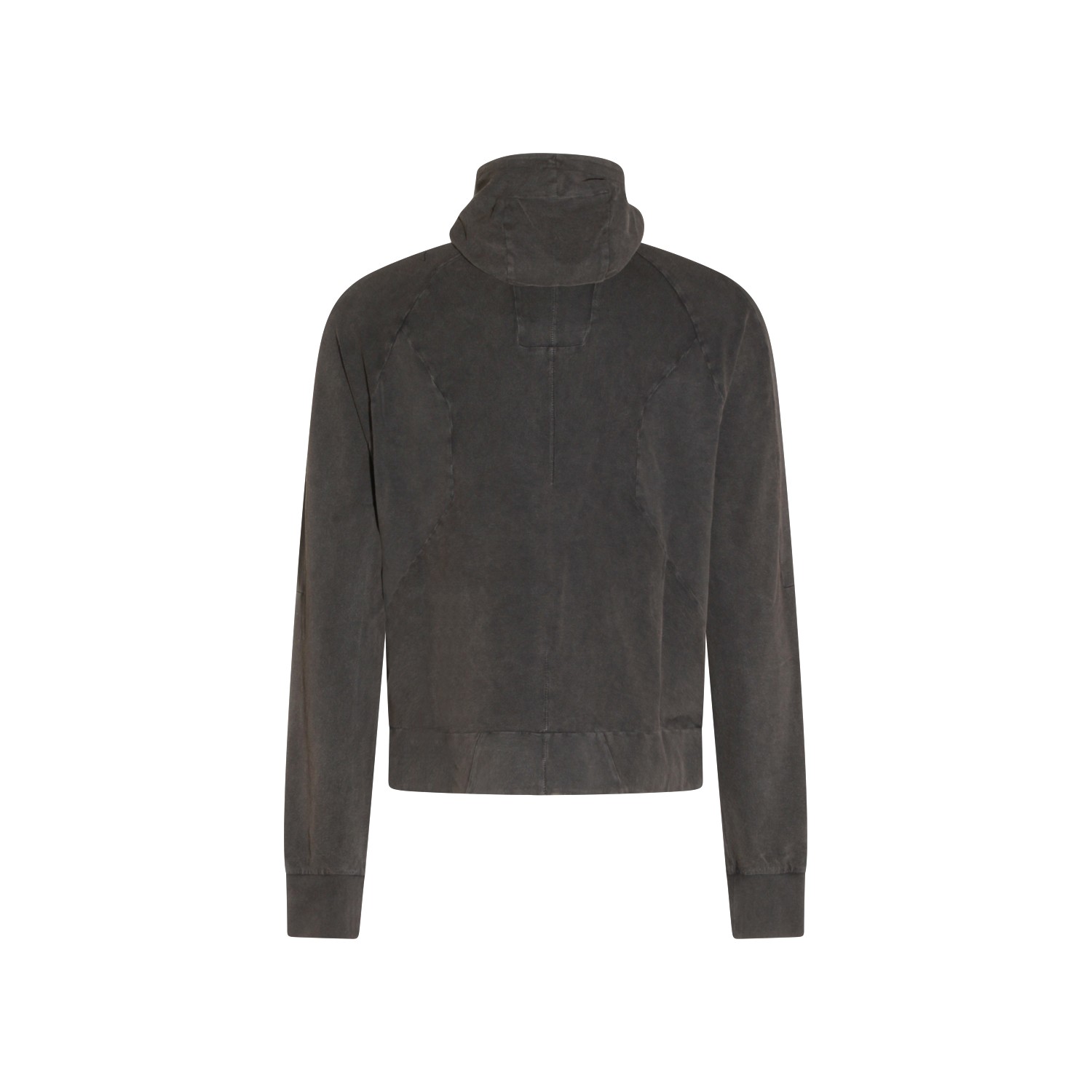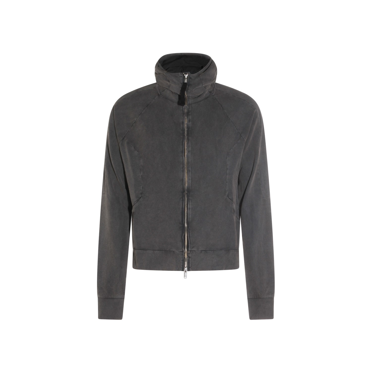 Dark grey cotton sweatshirt from Thom Krom featuring long sleeves, zip closure, high neck, hoodie and side pockets.