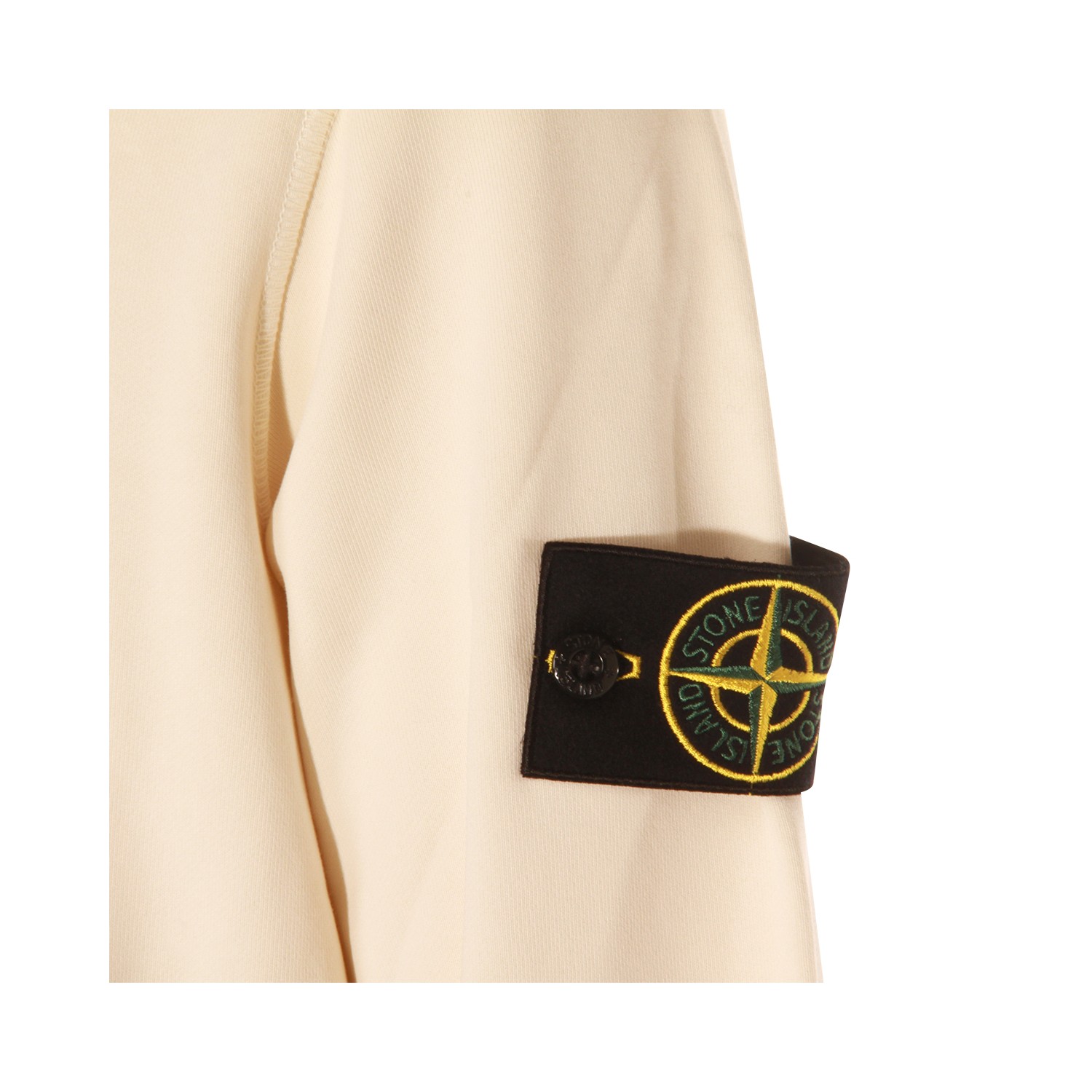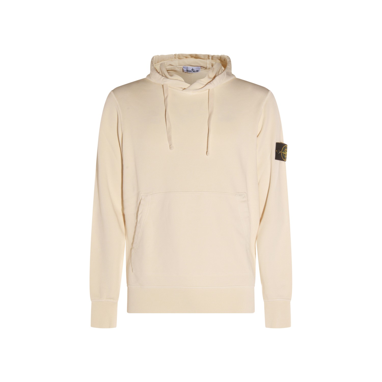 Ivory cotton sweatshirt from Stone Island featuring hood with drawstring, long sleeves, logo patch, kangaroo pocket, ribbed cuffs and hem and regular fit.