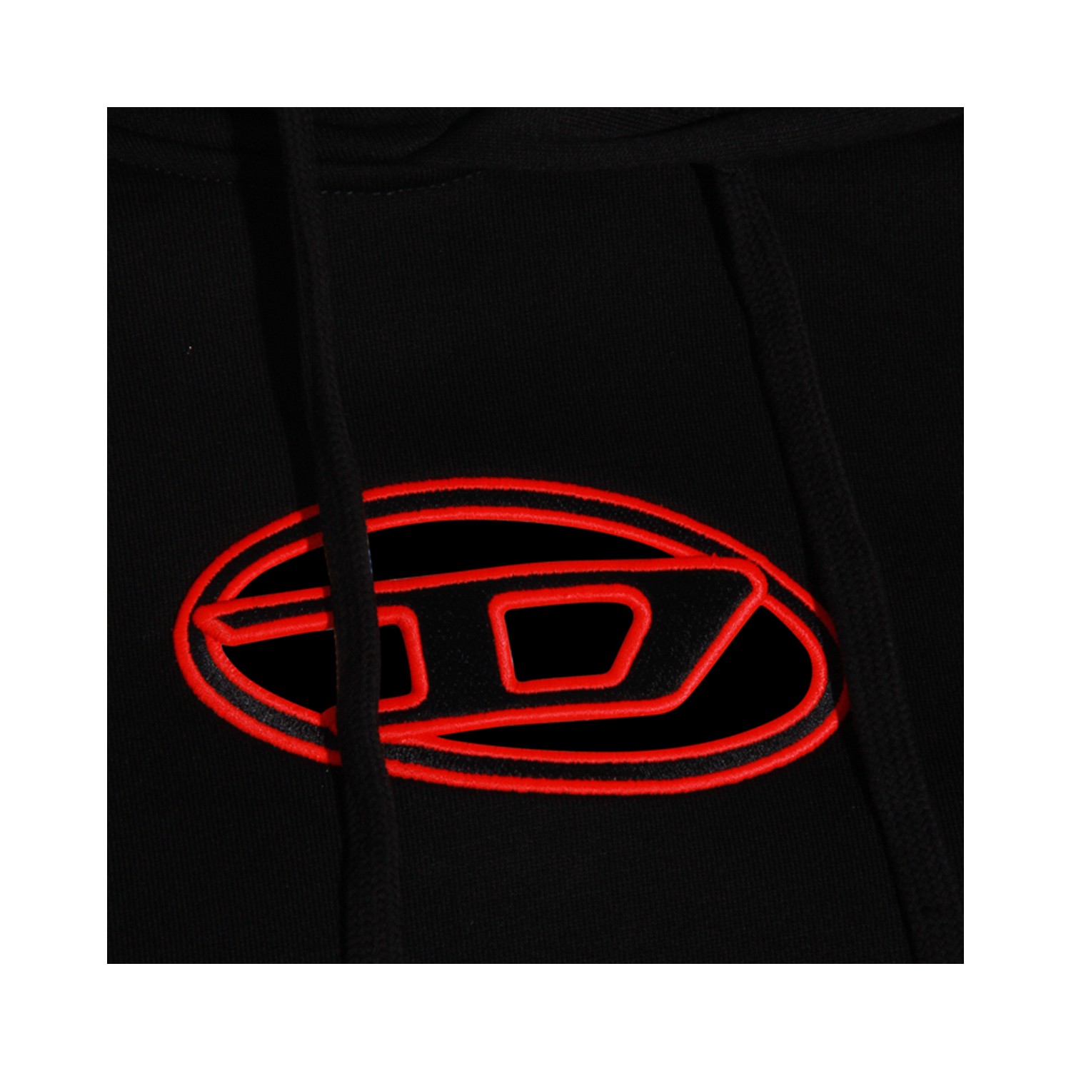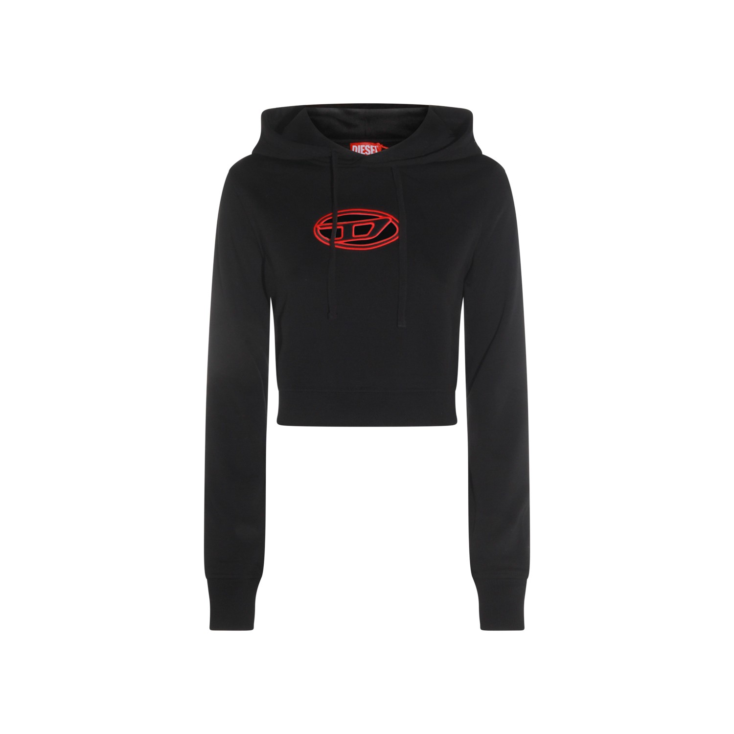 Black cotton F-Slimmy sweatshirt from Diesel featuring hood with drawstring, long sleeves, logo, ribbed cuffs and hem and cropped.