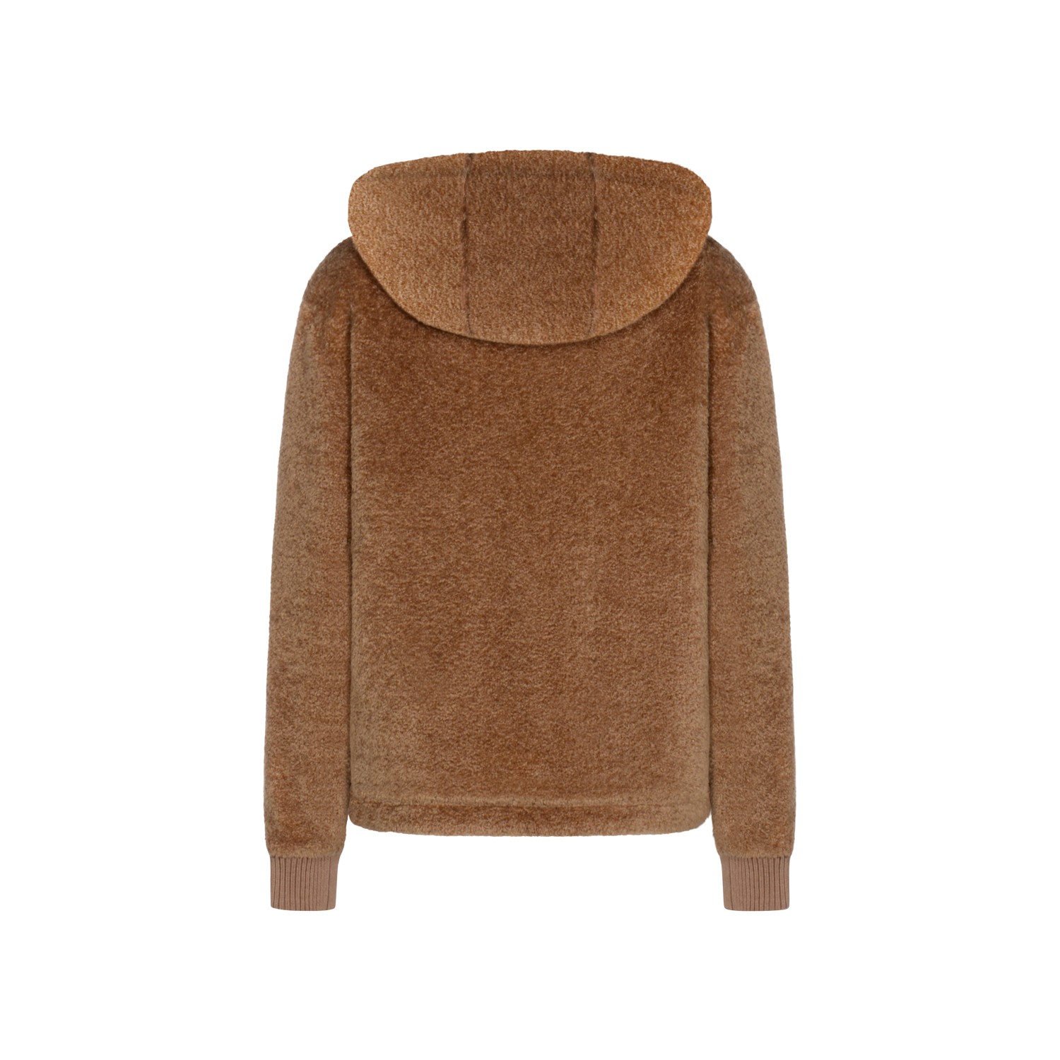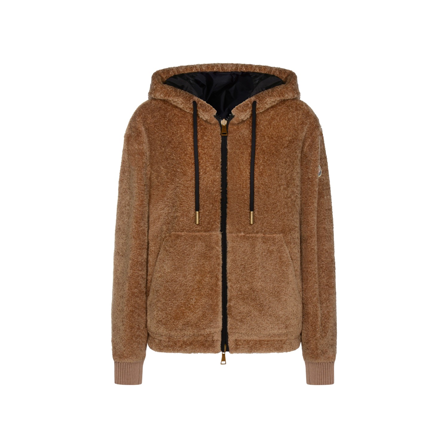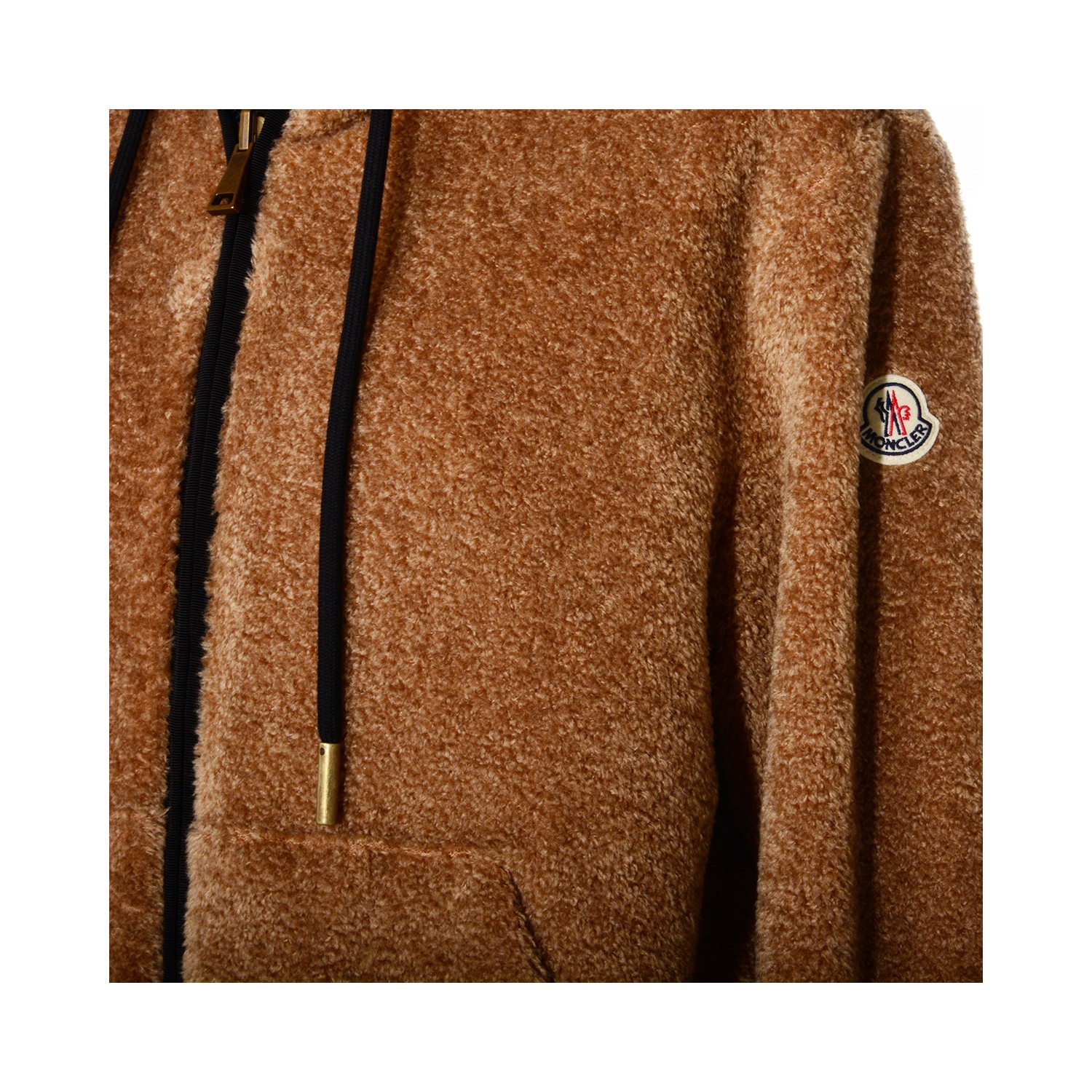 Brown cotton sweatshirt from Moncler featuring hood with drawstring, long sleeves, zip fastening, pockets, ribbed cuffs and regular vestibility.