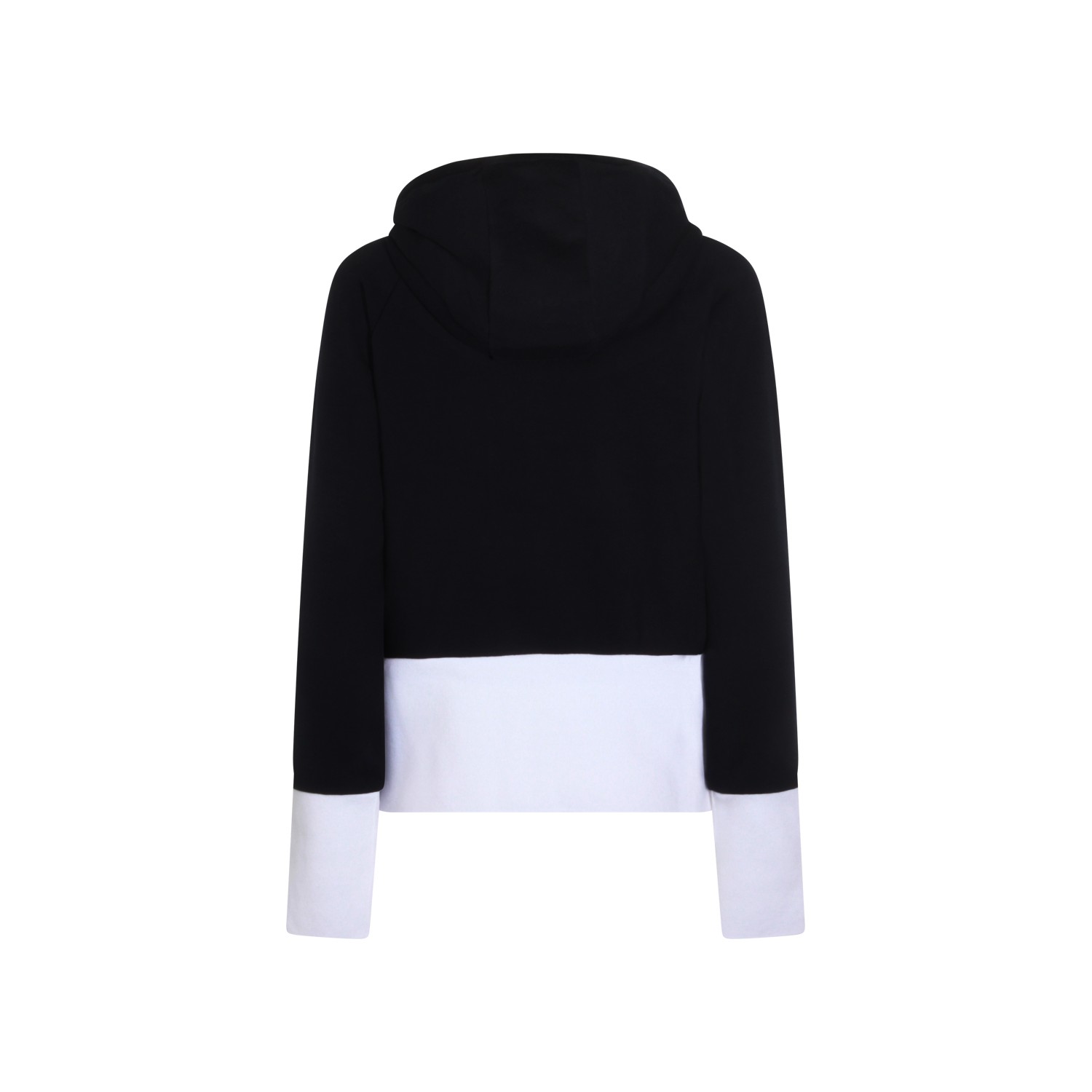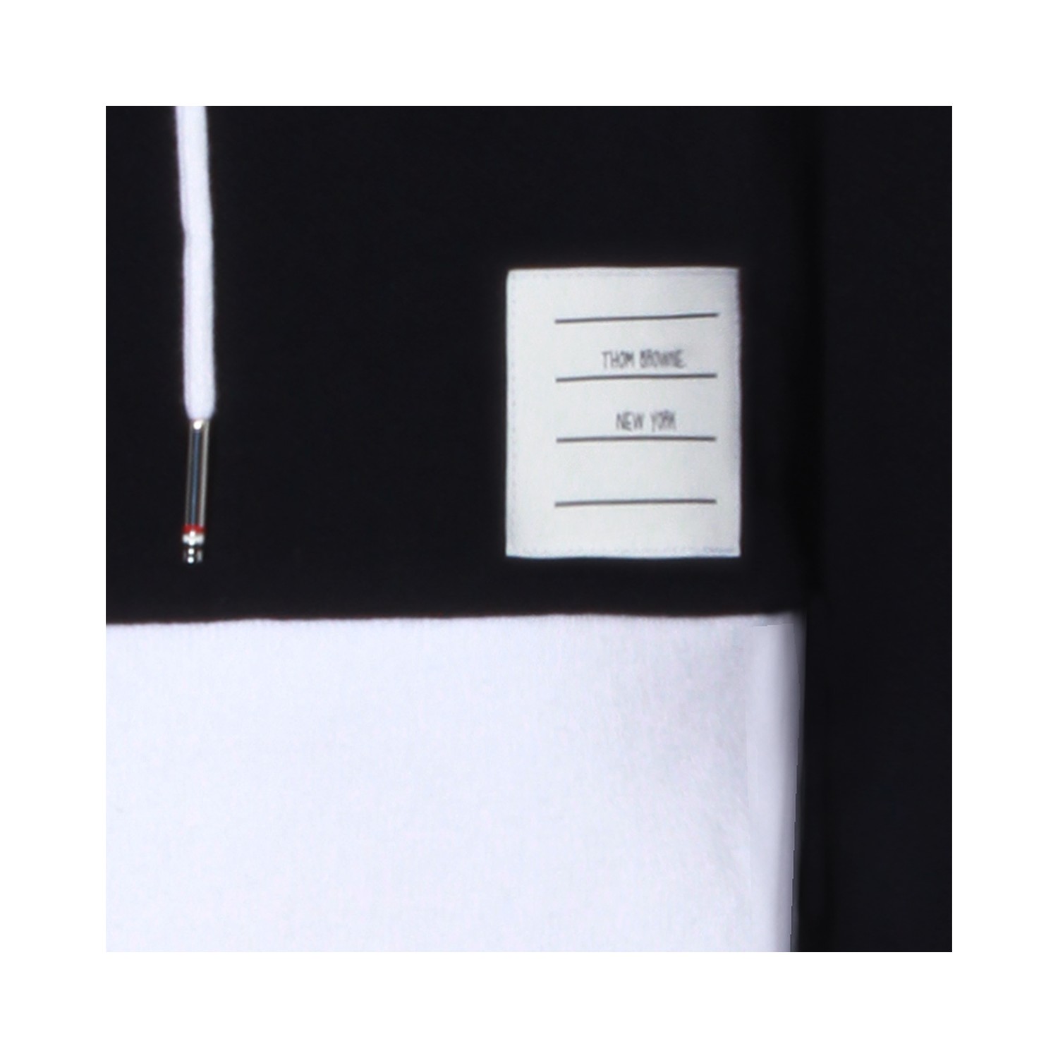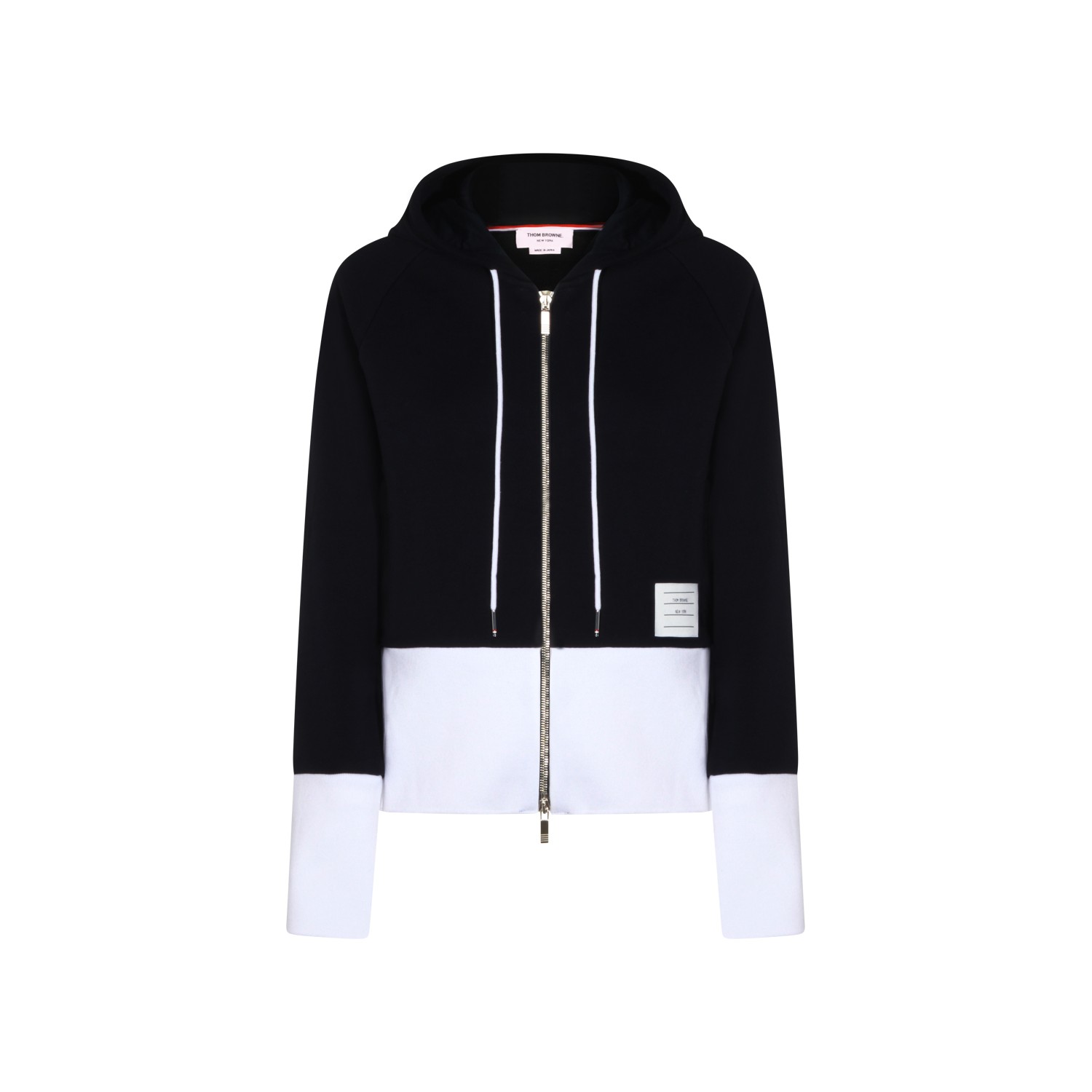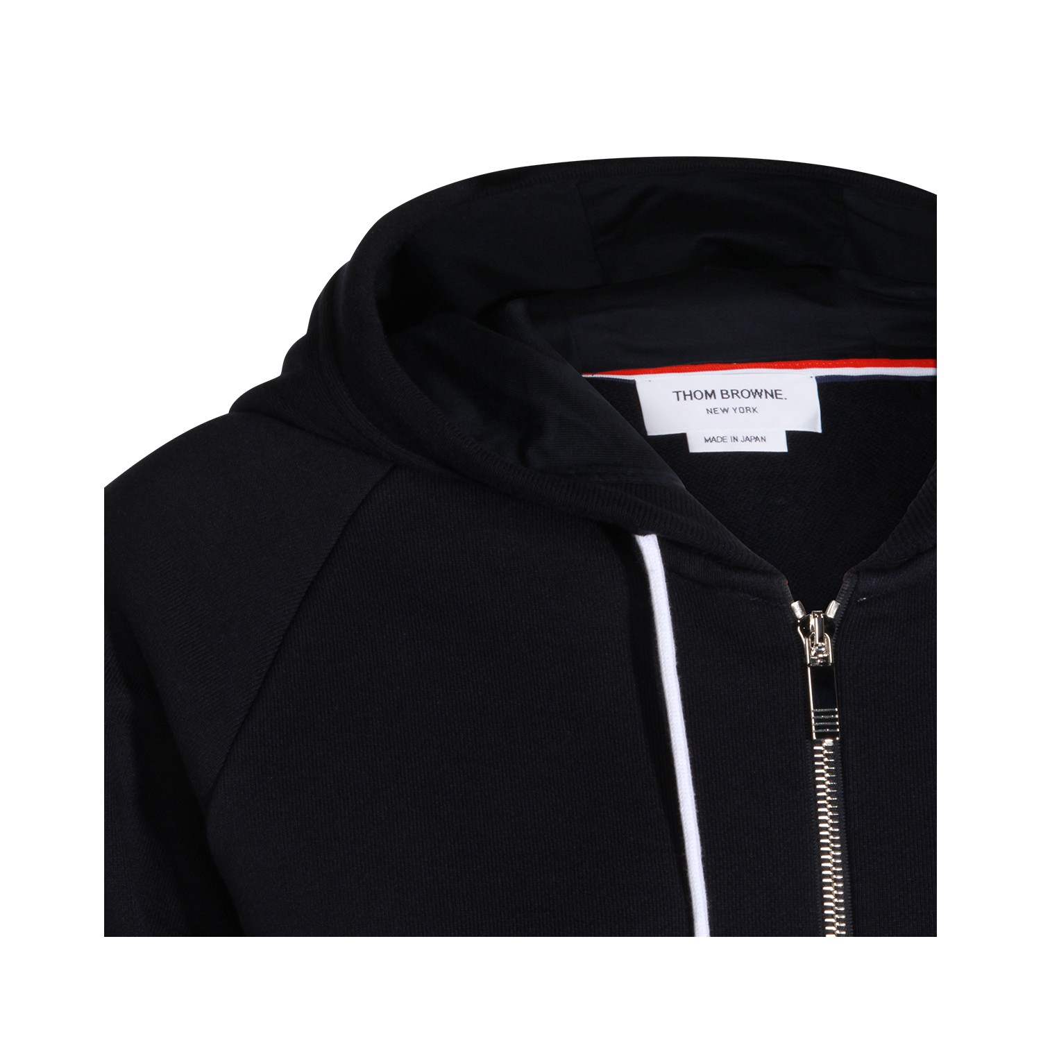 Navy cotton sweatshirt from Thom Browne featuring hood, zip fastening, long sleeves, white details and regular vestibility.