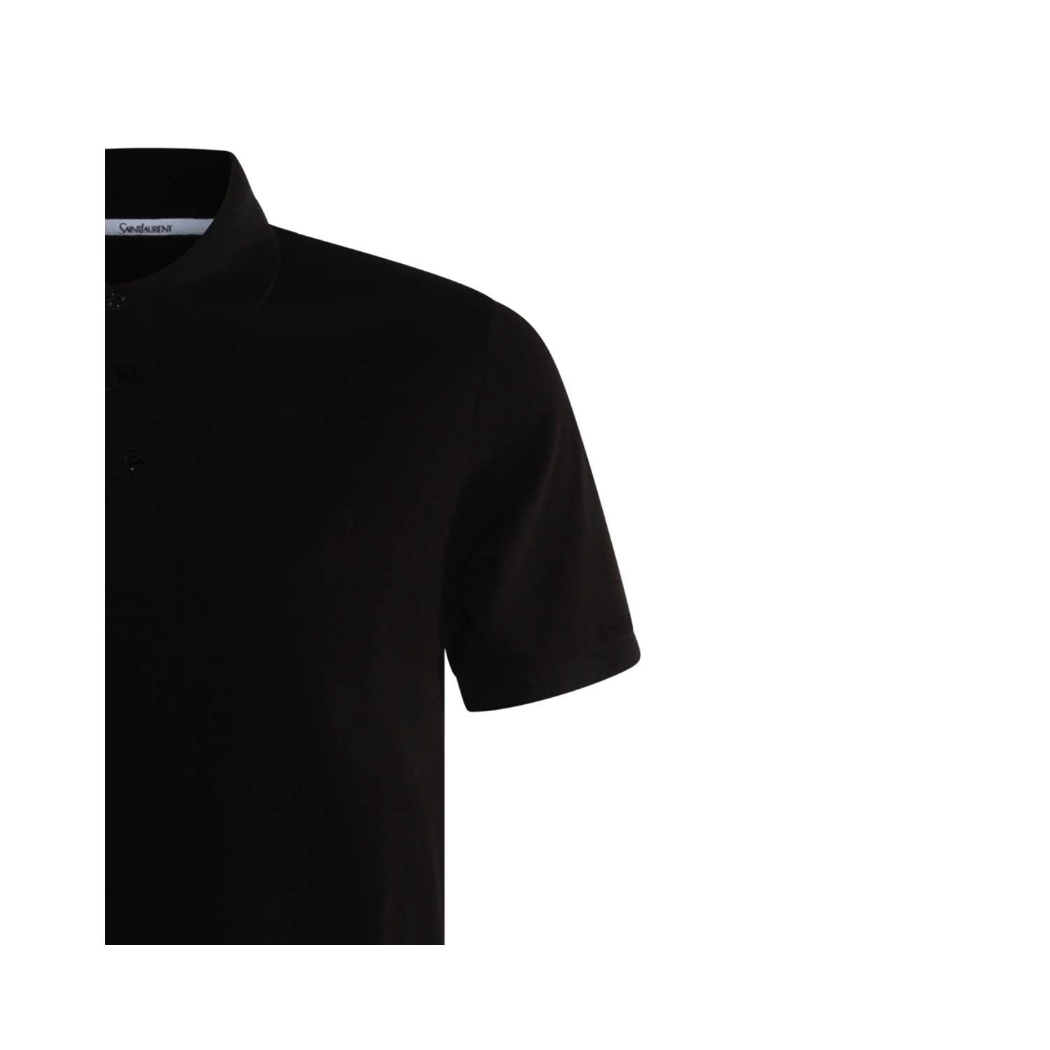 Black cotton polo shirt from Saint Laurent featuring polo shirt collar, short sleeves and regular vestibility.