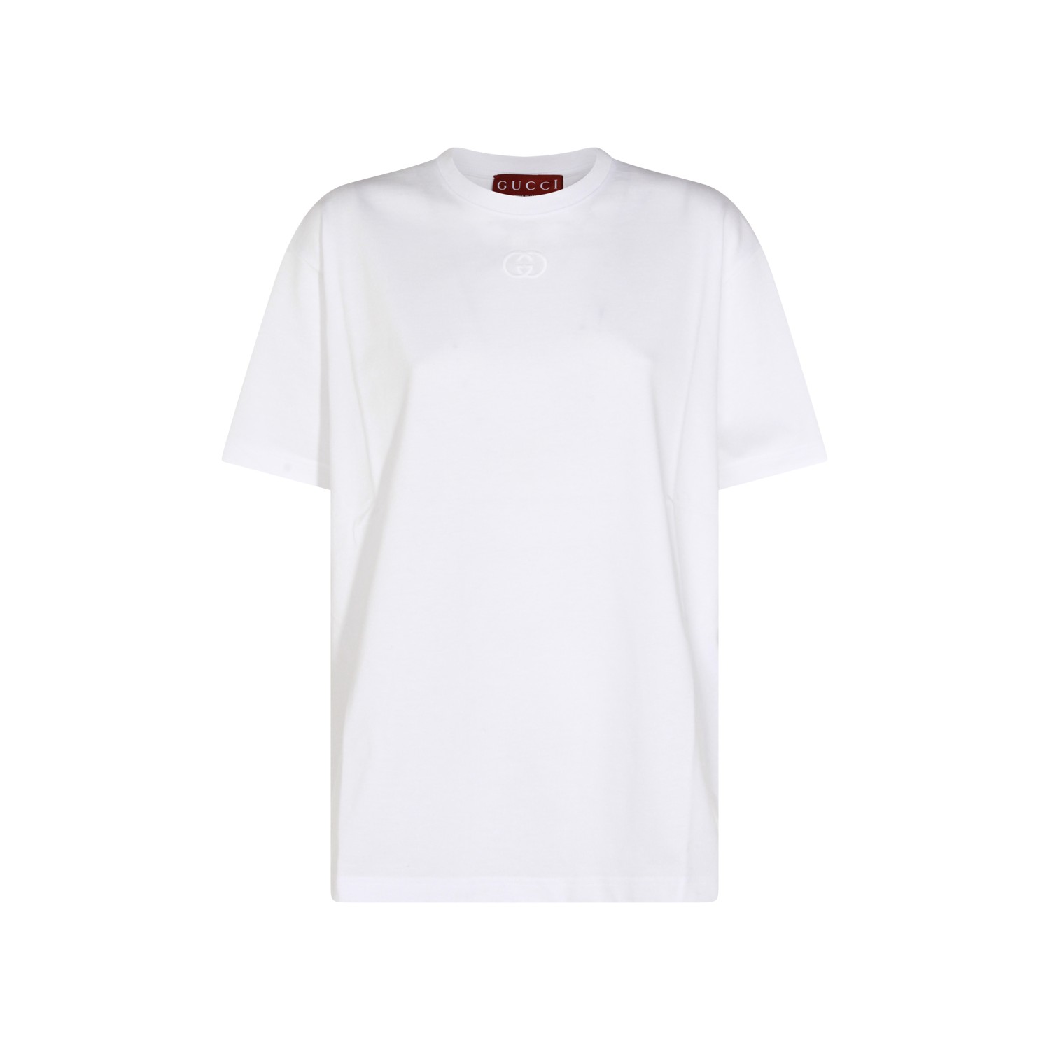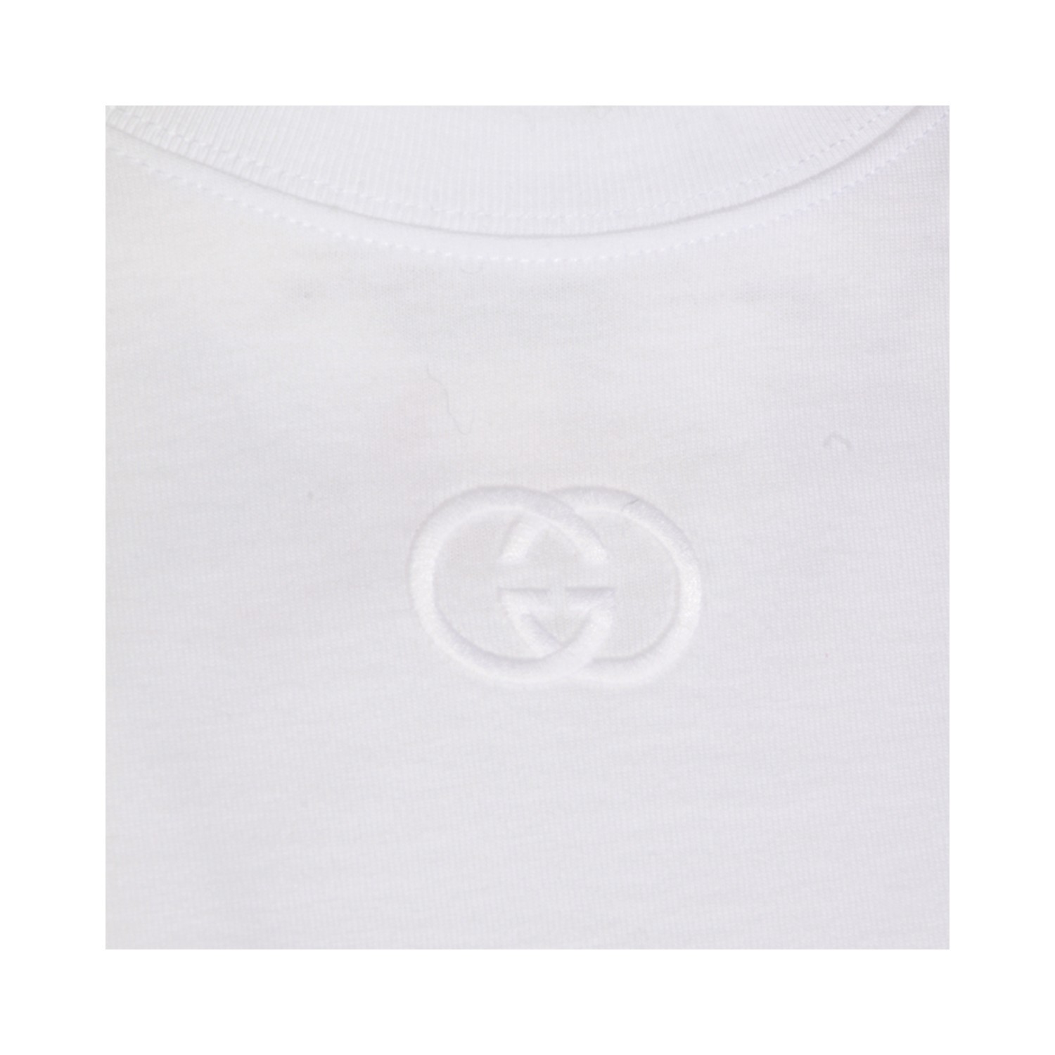 White cotton t-shirt from Gucci featuring crew neckline, short sleeves and regular vestibility.