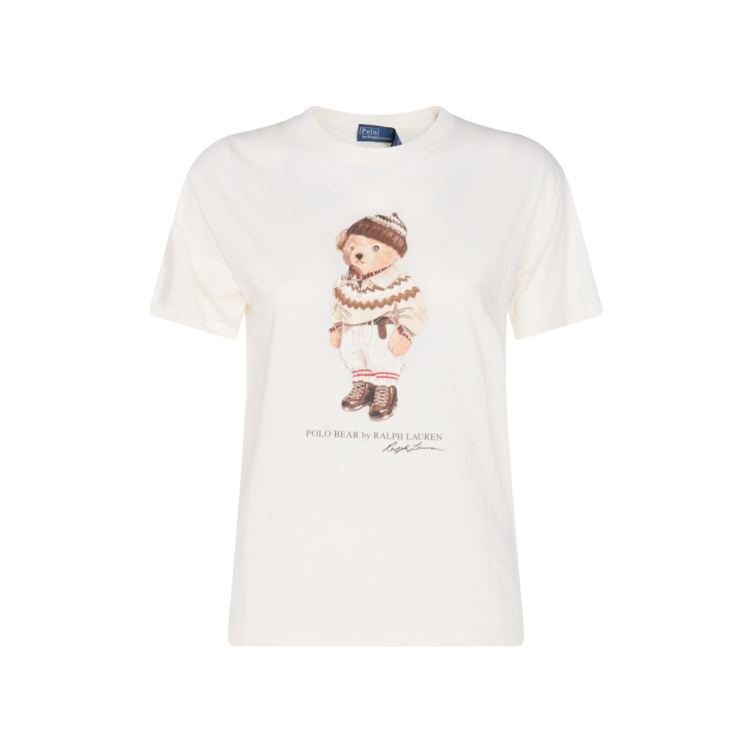 White cotton t-shirt from Polo Ralph Lauren featuring round collar, short sleeves, frontal print and regular vestibility.