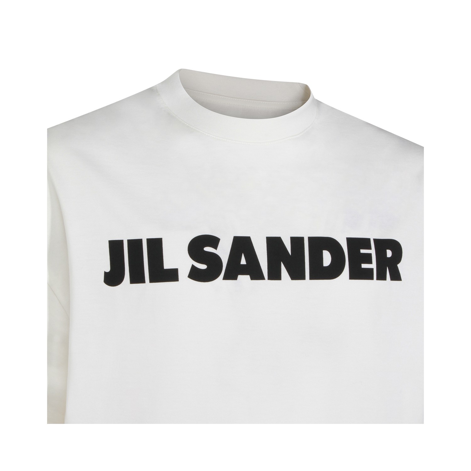 White cotton t-shirt from Jil Sander featuring crew neck, short sleeves, frontal logo and regular vestibility.