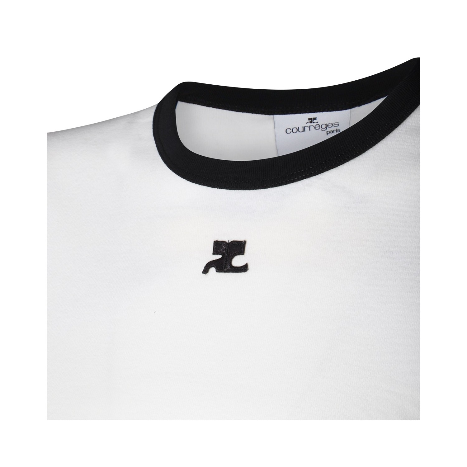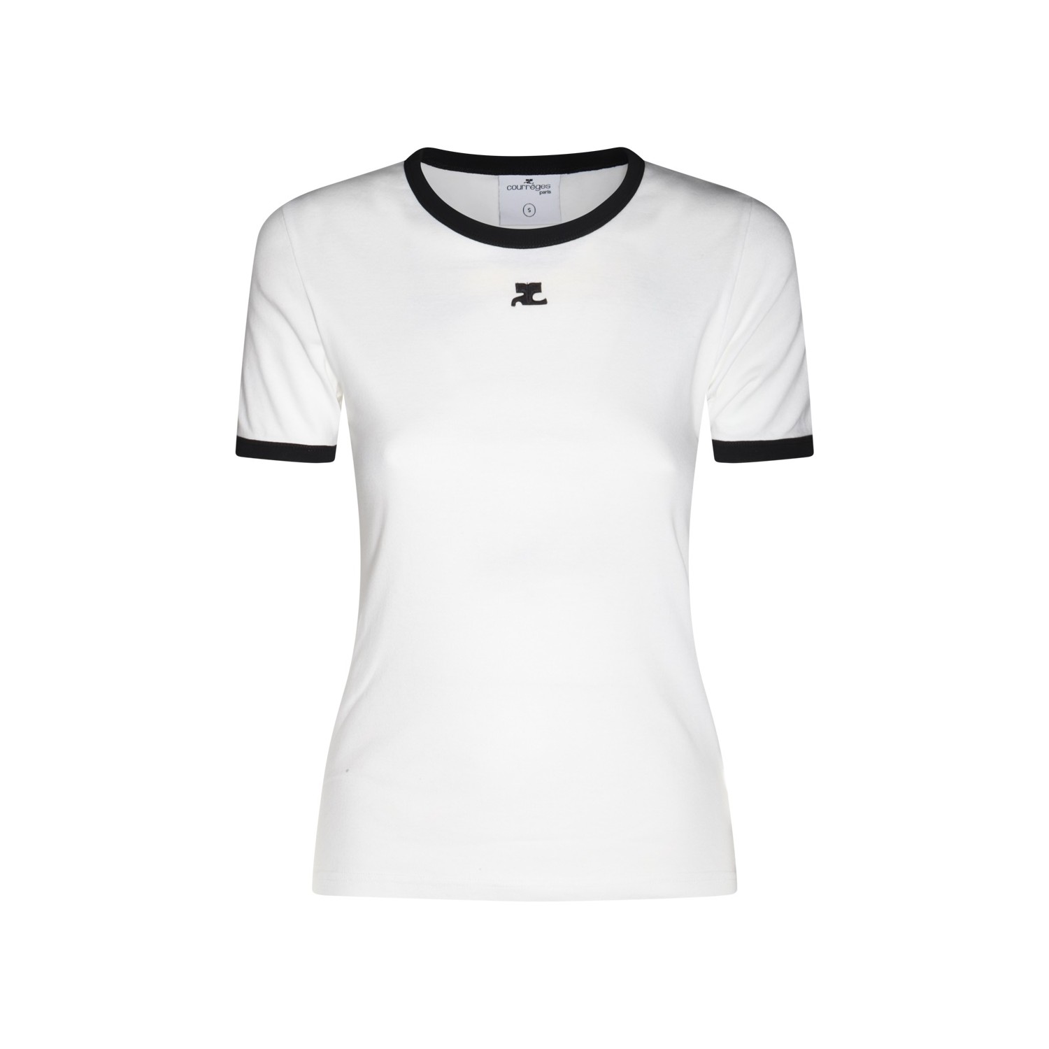 White cotton t-shirt from Courreges featuring short sleeves, round collar, frontal logo and regular vestibility.