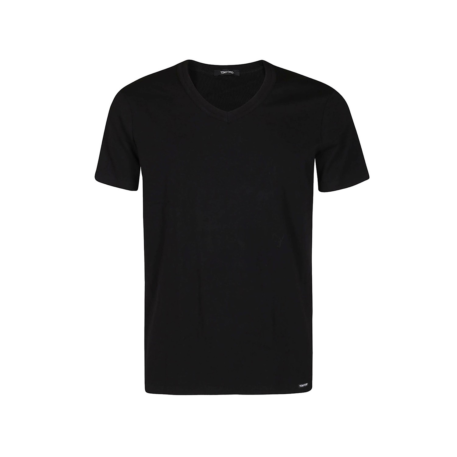 Black cotton t-shirt from Tom Ford Underwear featuring v neckline, short sleeves and regular vestibility.