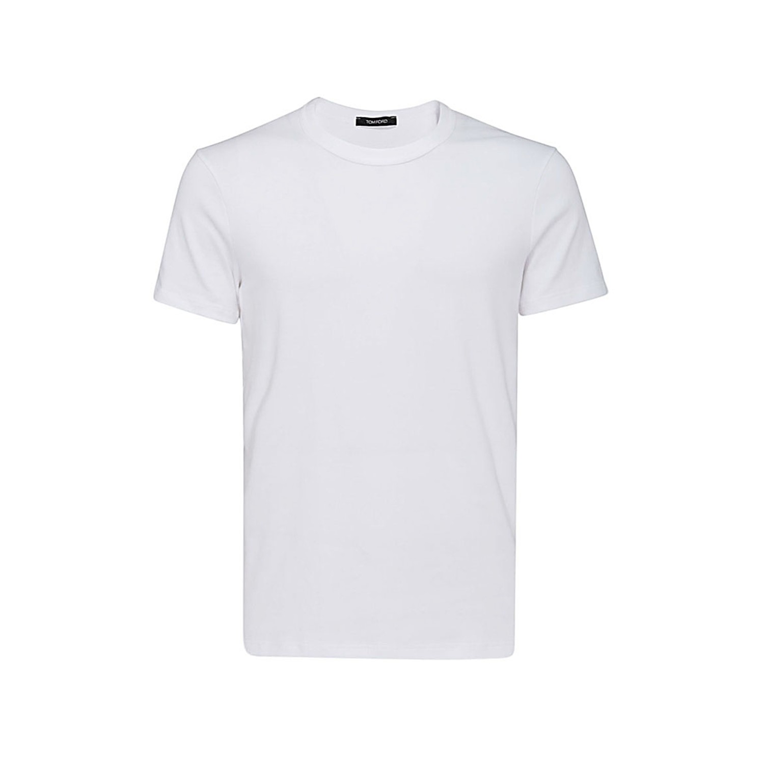 White cotton blend T-shirt from Tom Ford featuring crew neck, short sleeves and straight hem.