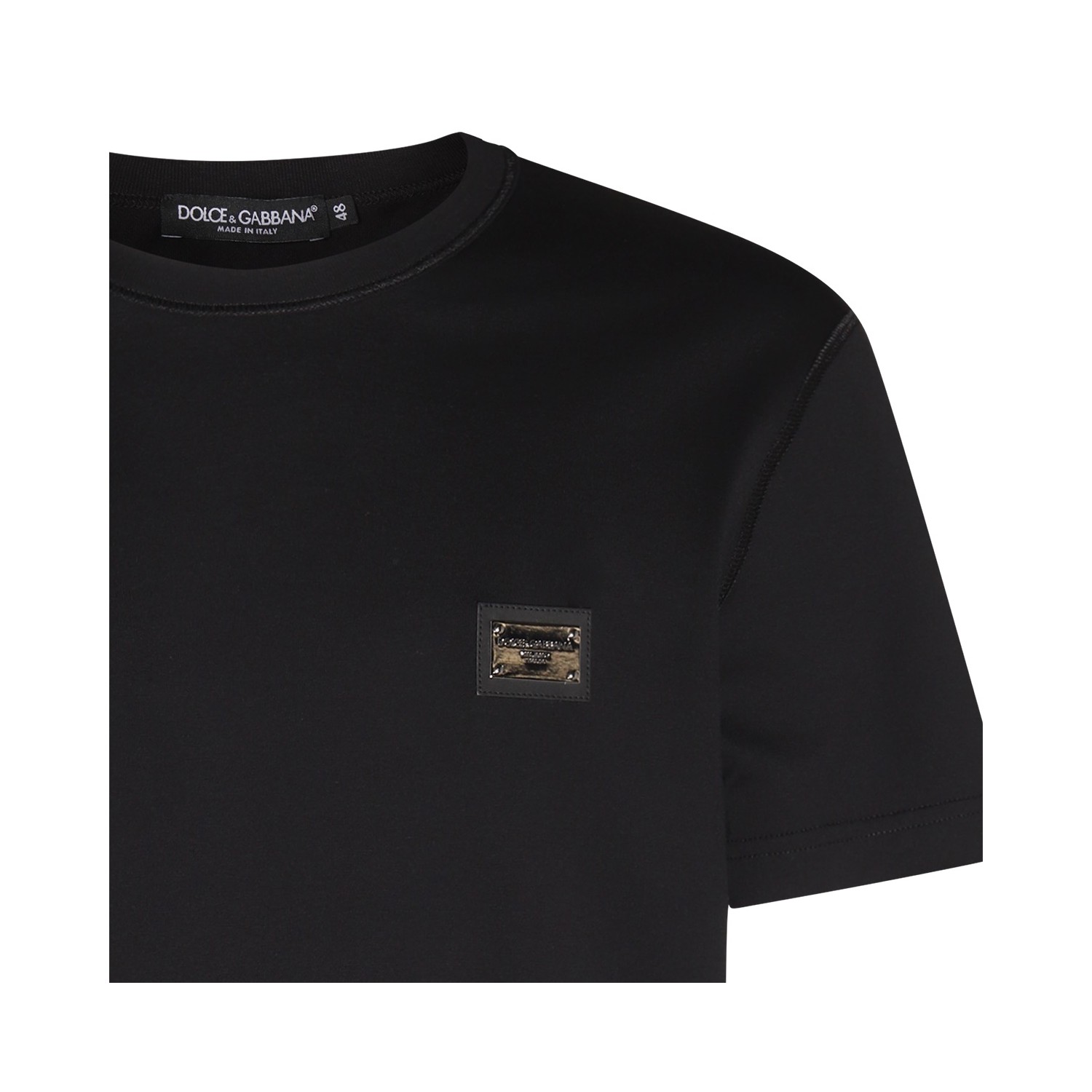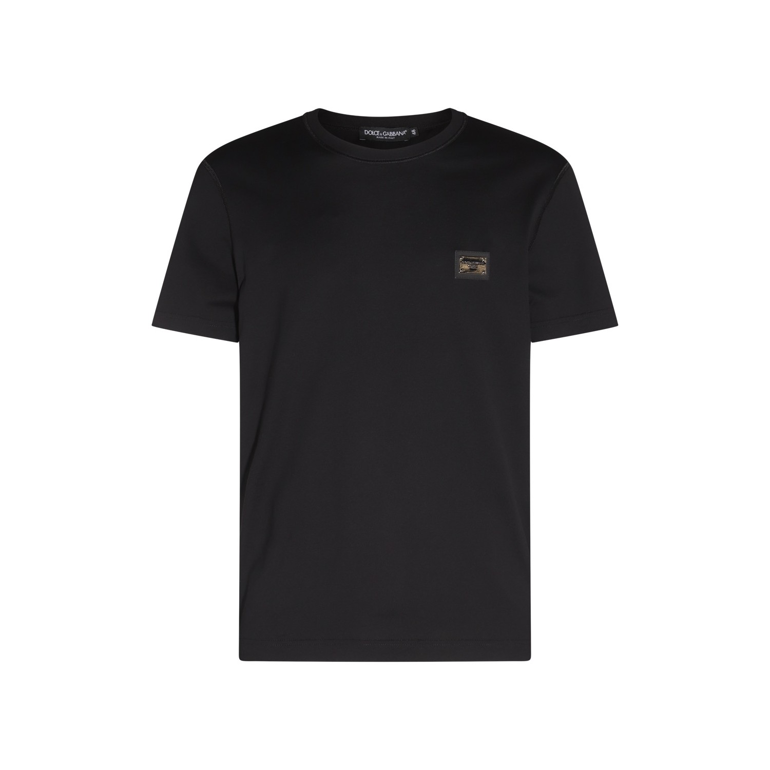 Black cotton t-shirt from Dolce&Gabbana featuring short sleeves, round collar, logo patch and regular vestibility.