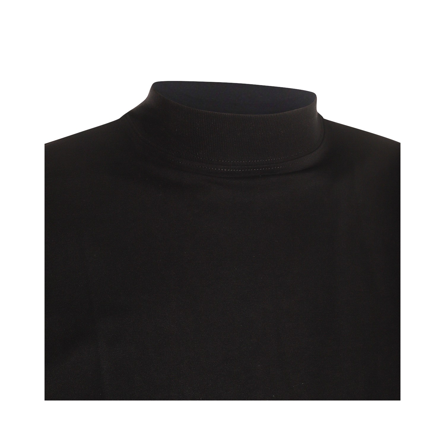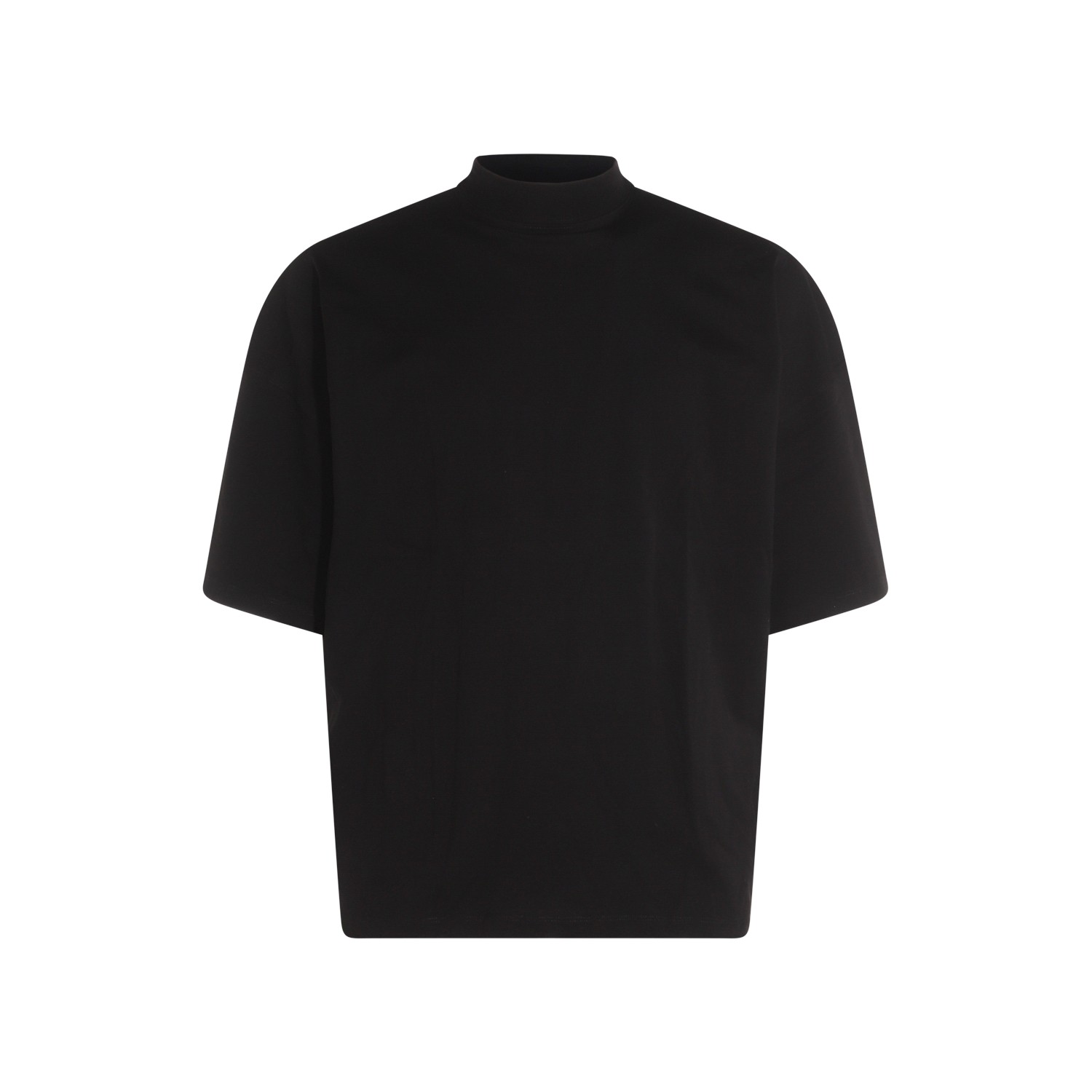 Black cotton T-shirt from Jil Sander featuring mock collar, short sleeves and soft vestibility.
