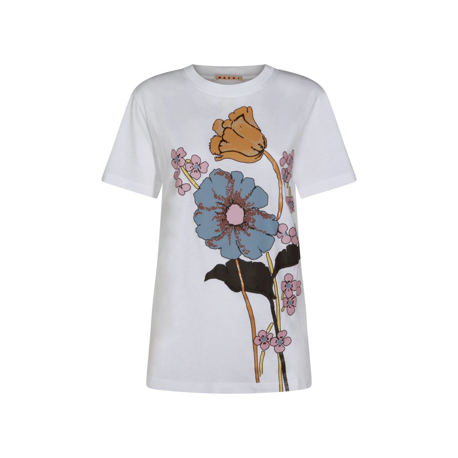 Lily white cotton t-shirt from Marni featuring crew neck, short sleeves, frontal stamp and regular vestibility.