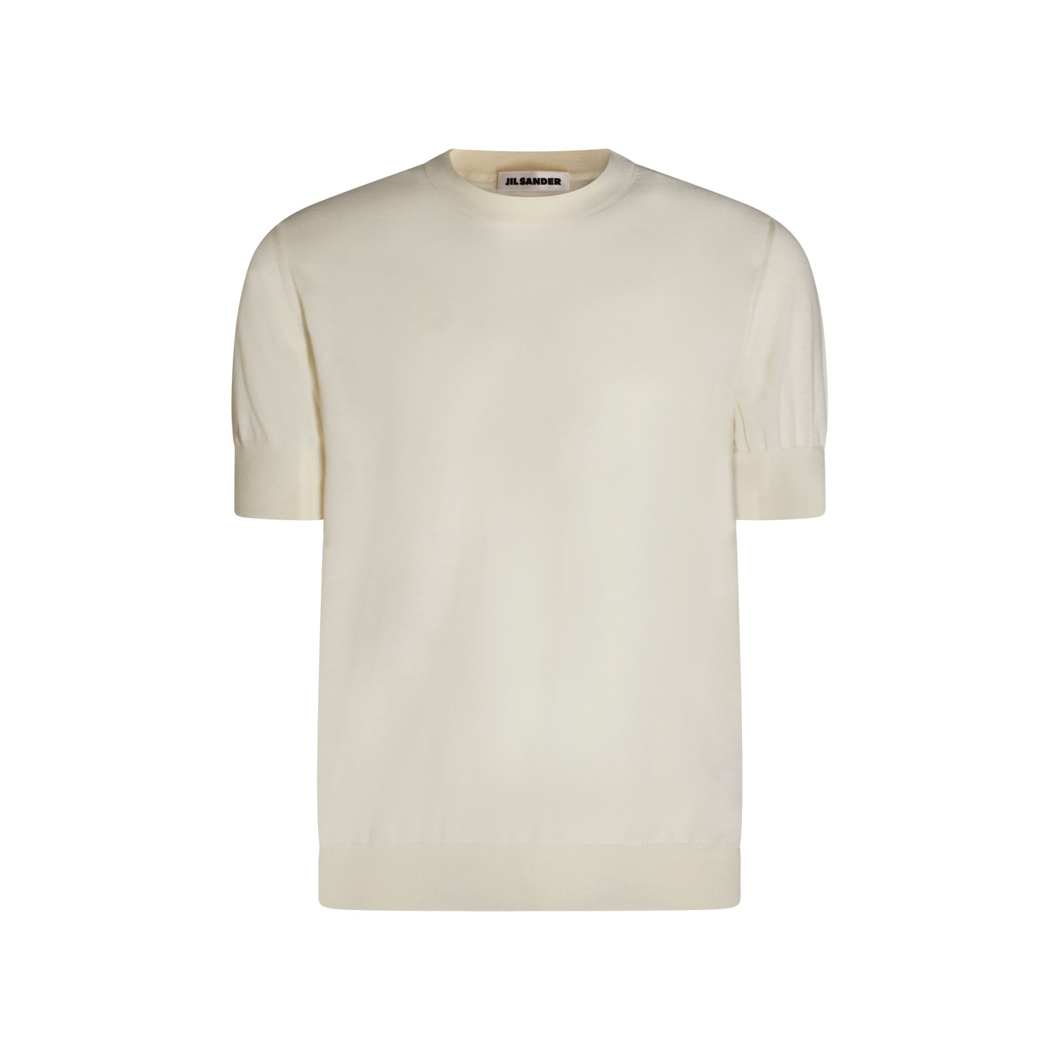 White wool t-shirt from Jil Sander featuring crew neck, short sleeves and regular vestibility.