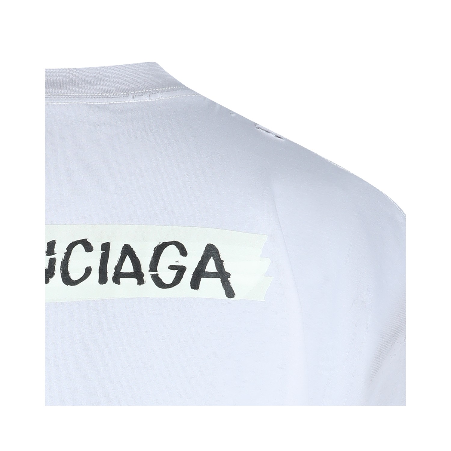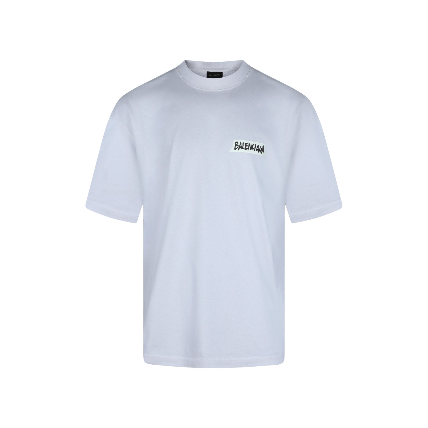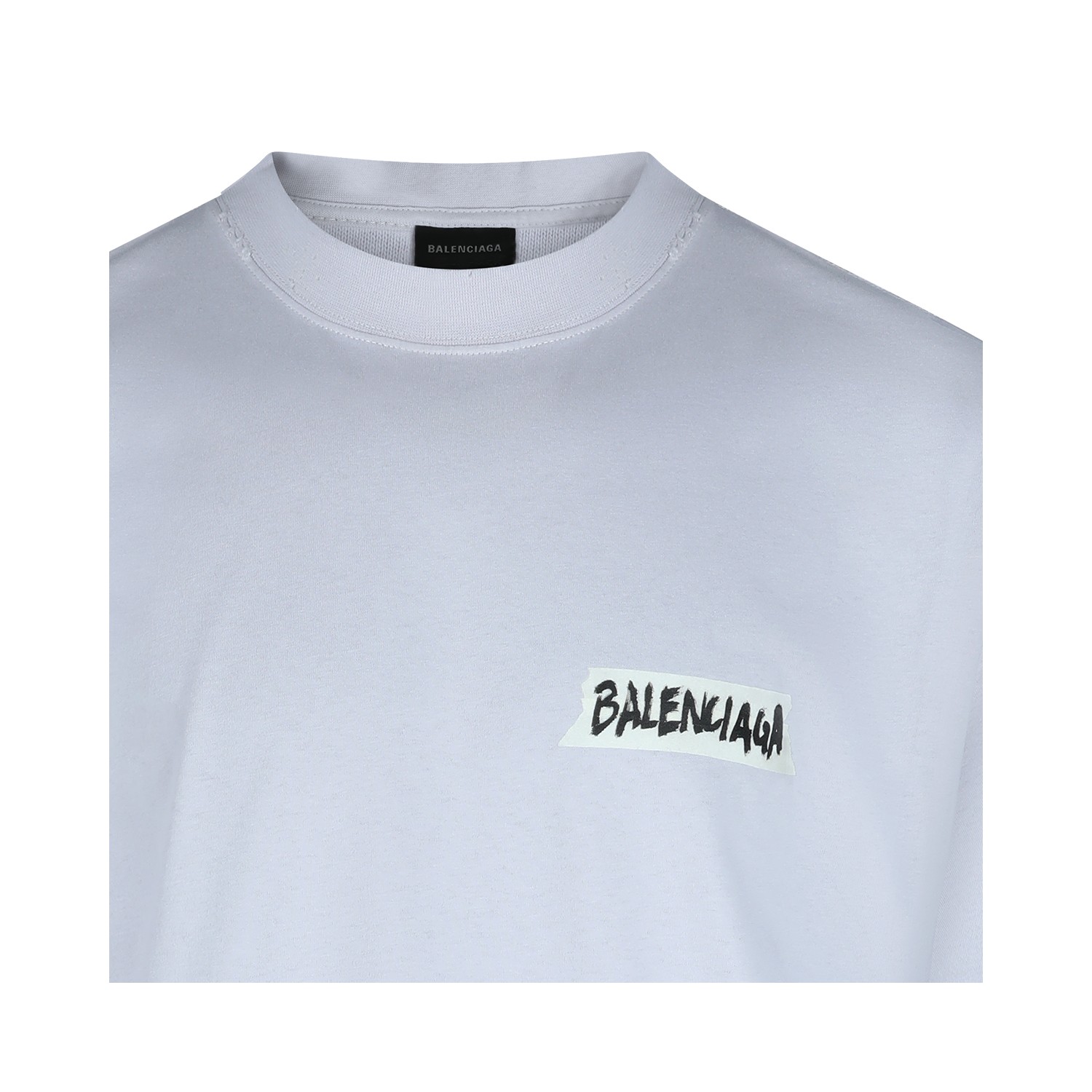 White cotton t-shirt from Balenciaga featuring crew neck, short sleeves, frontal stamp and regular vestibility.