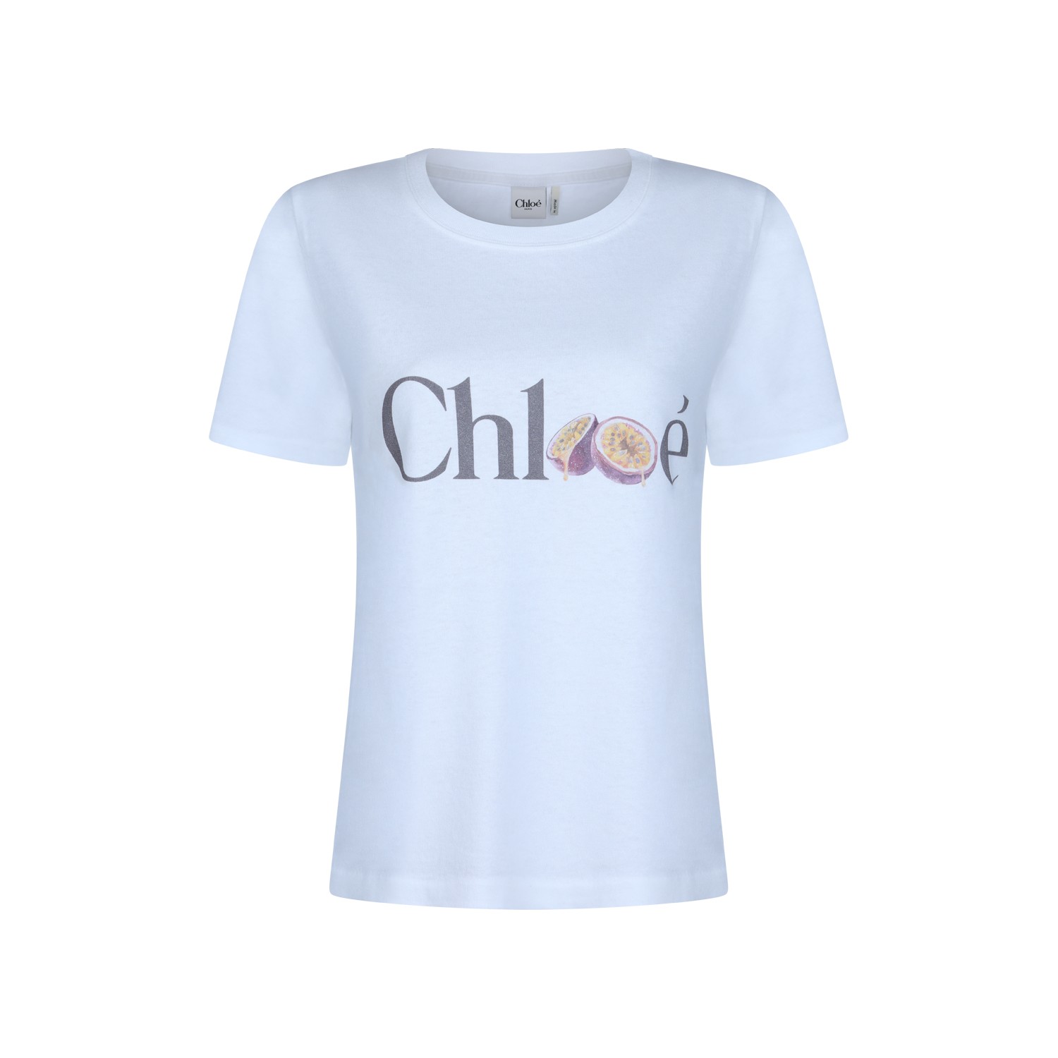 White cotton t-shirt from Chlofeaturing crew neck, short sleeves, frontal logo stamp and regular vestibility.